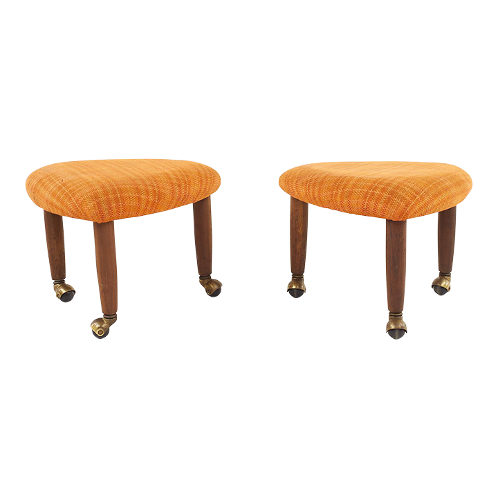 Adrian Pearsall for Craft Associates Mid Century Walnut Ottoman on Casters - A Pair