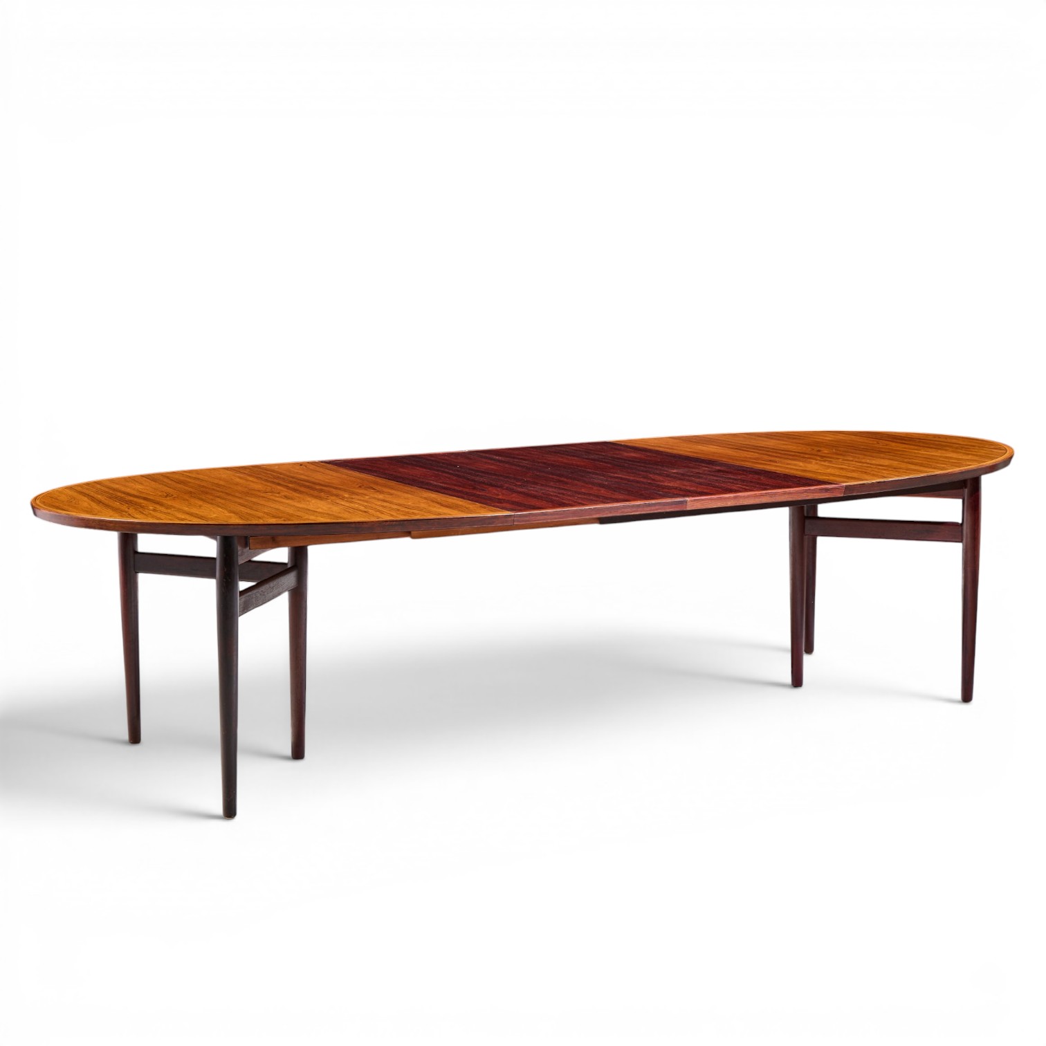 Arne Vodder for Sibast Mid Century Danish Rosewood Expanding Oval Dining Table with 2 Leaves