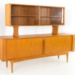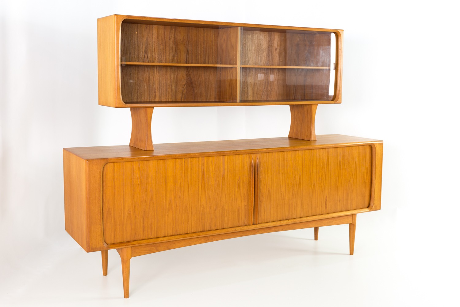 Bernhard Pedersen Mid Century Teak Tambour Door Sideboard Credenza with Hutch