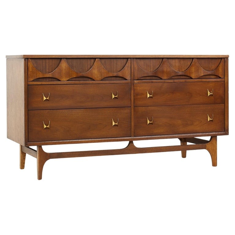 Broyhill Brasilia Mid Century Walnut 6-drawer Lowboy Dresser