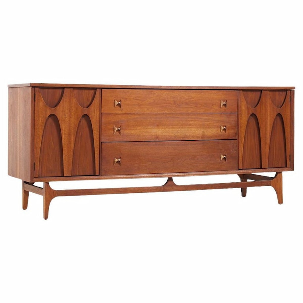 Broyhill Brasilia Mid Century Walnut 72 Inch 9 Drawer Lowboy Dresser