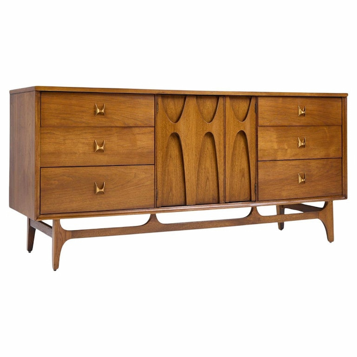 Broyhill Brasilia Mid Century Walnut and Brass Lowboy Dresser