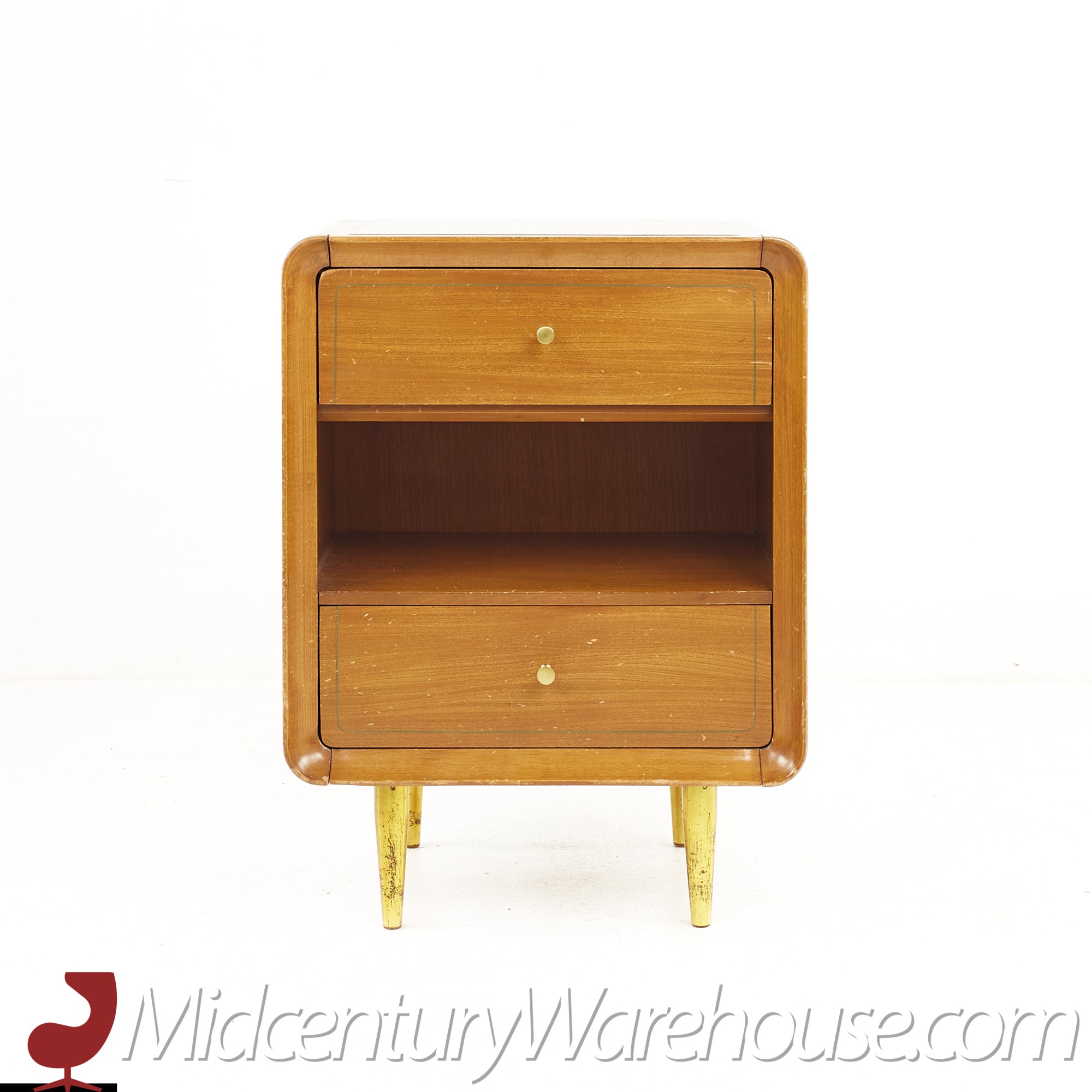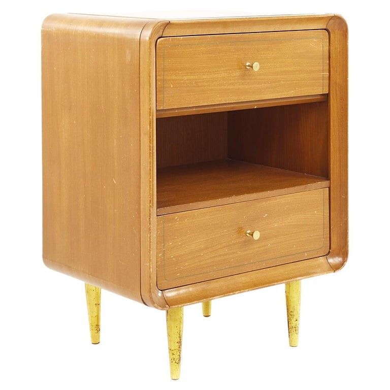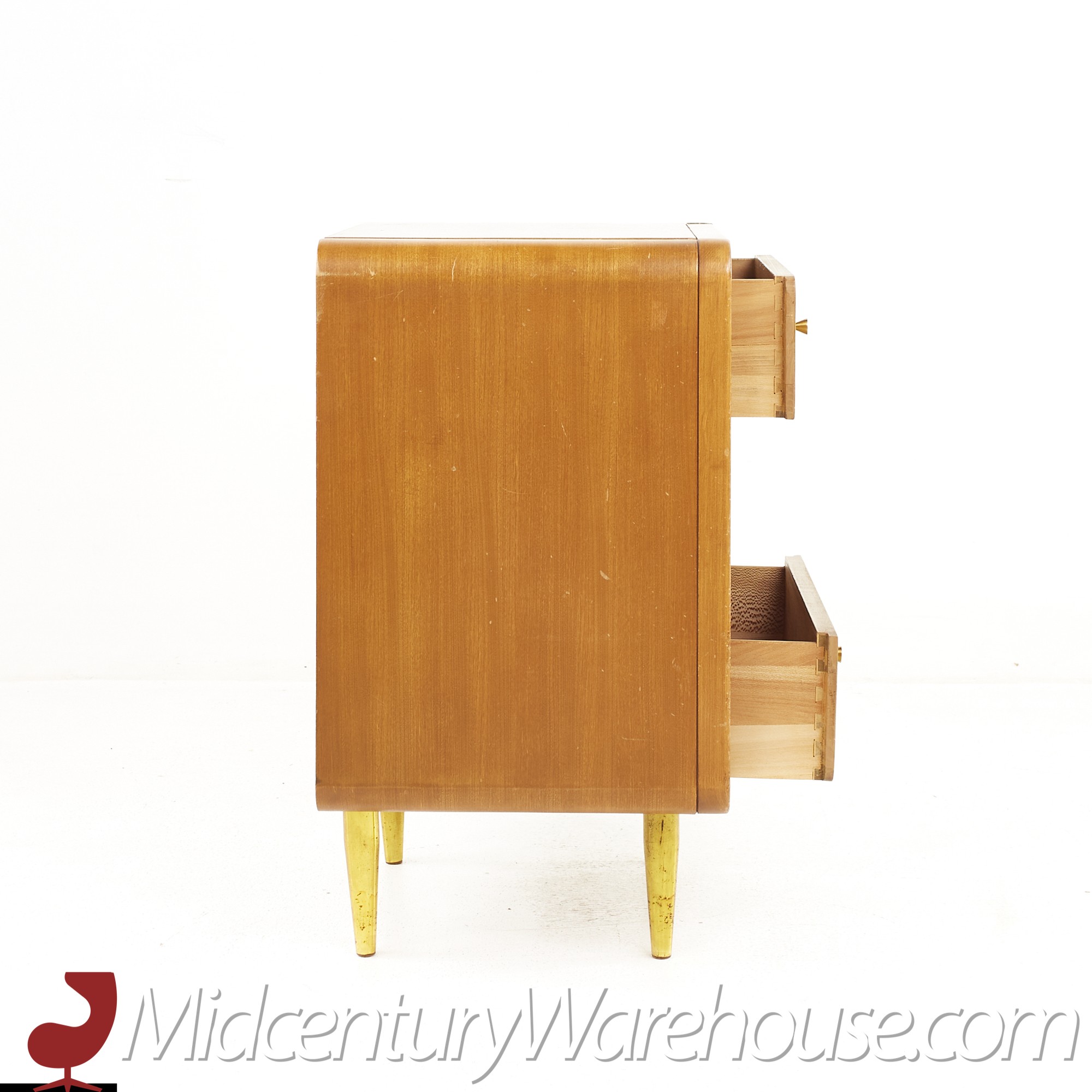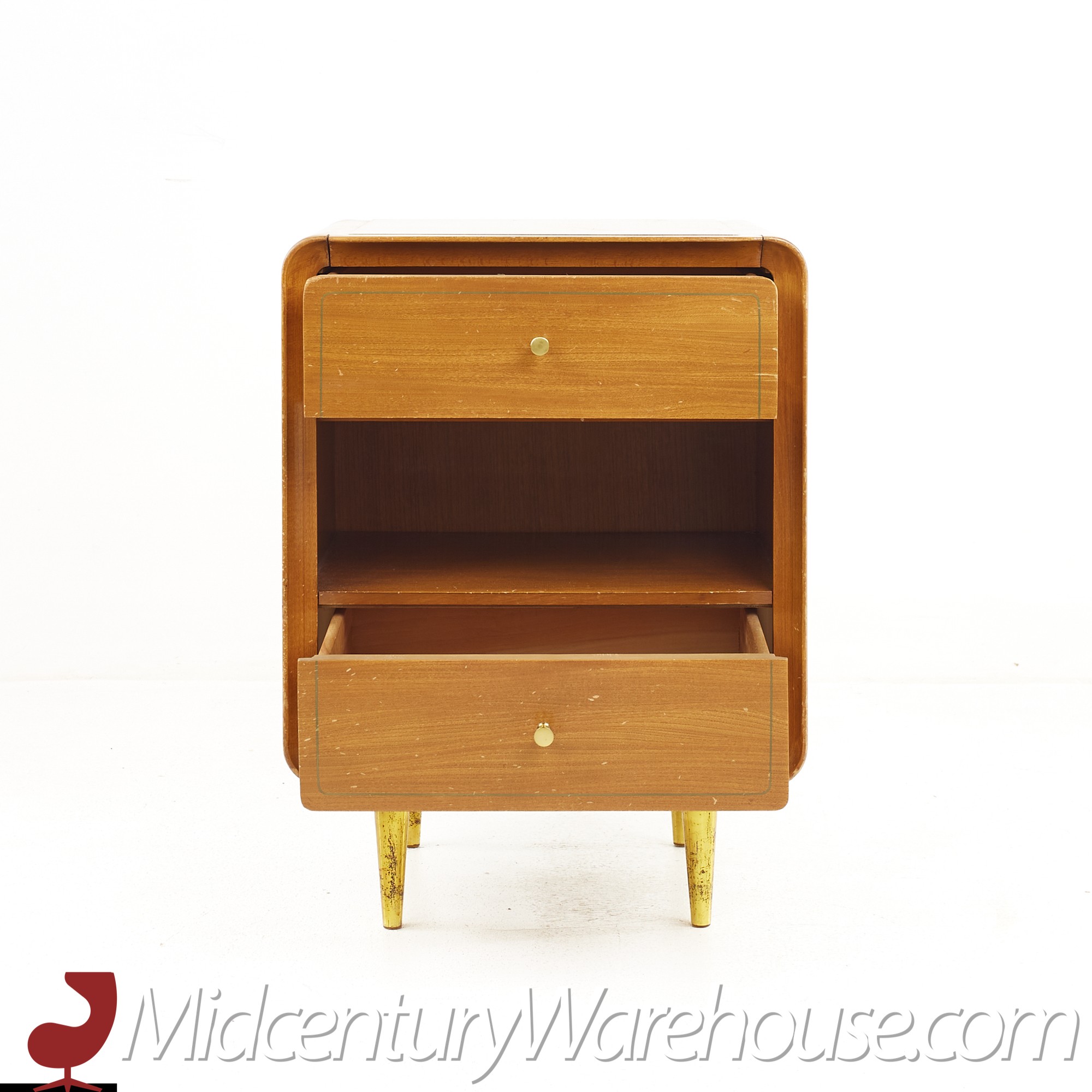 Paul Mccobb Style Mid Century Walnut and Brass 2 Drawer Nightstand