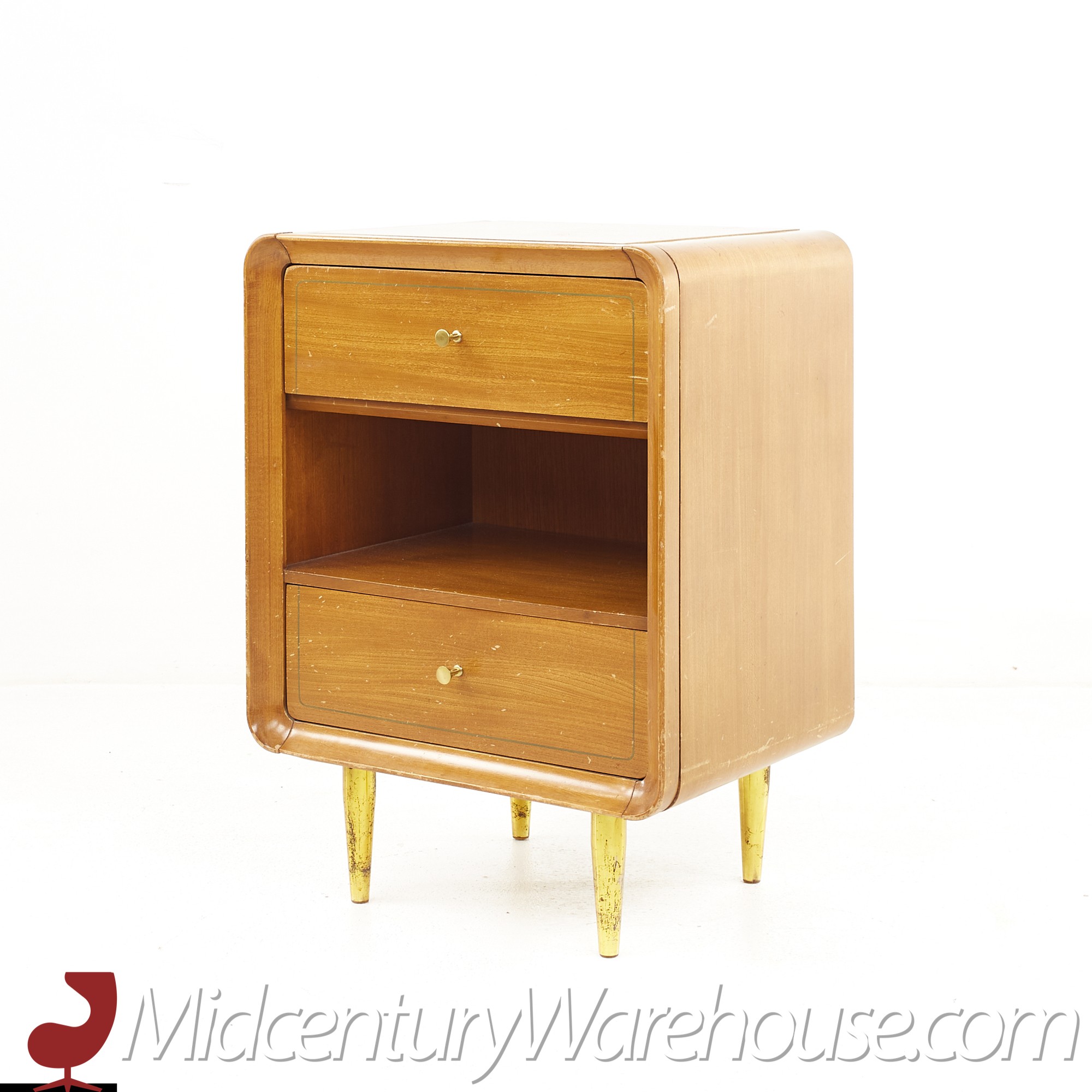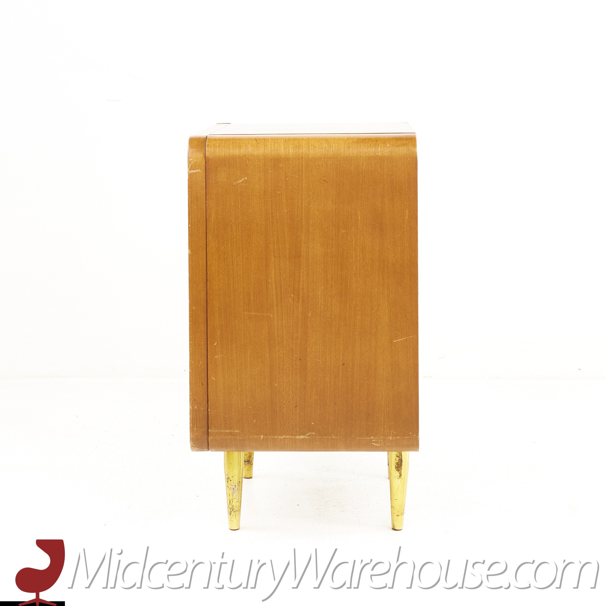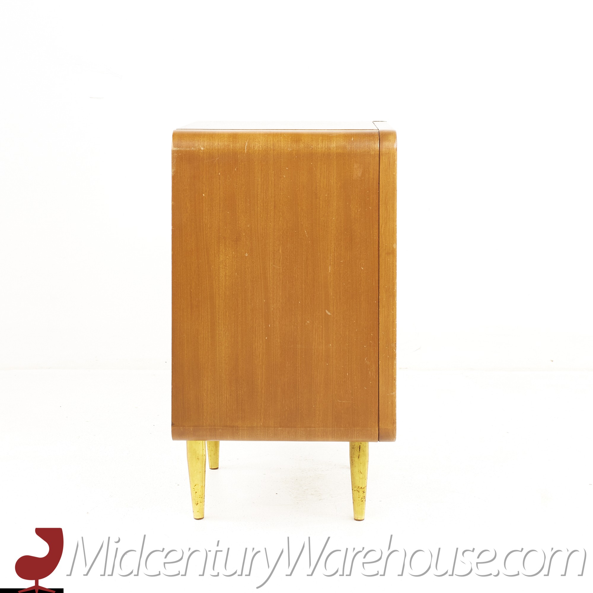 Paul Mccobb Style Mid Century Walnut and Brass 2 Drawer Nightstand