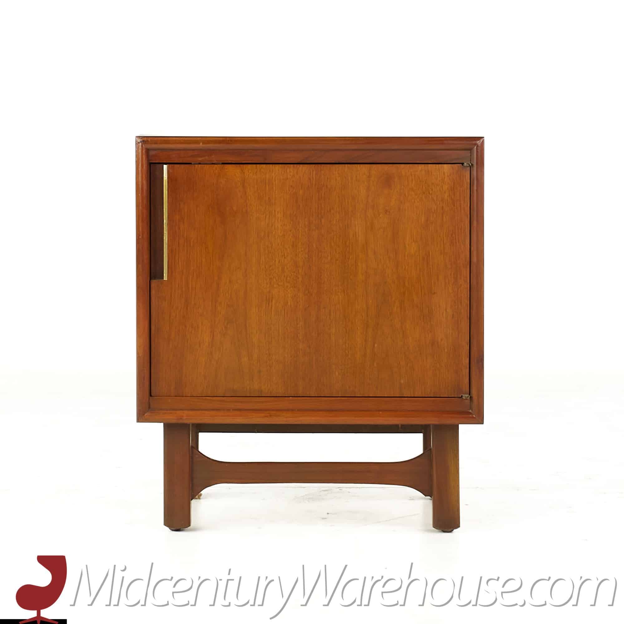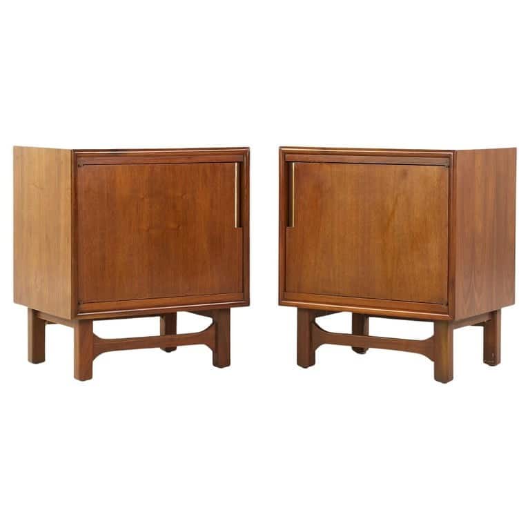 Cavalier Mid Century Walnut and Brass Nightstands - Pair