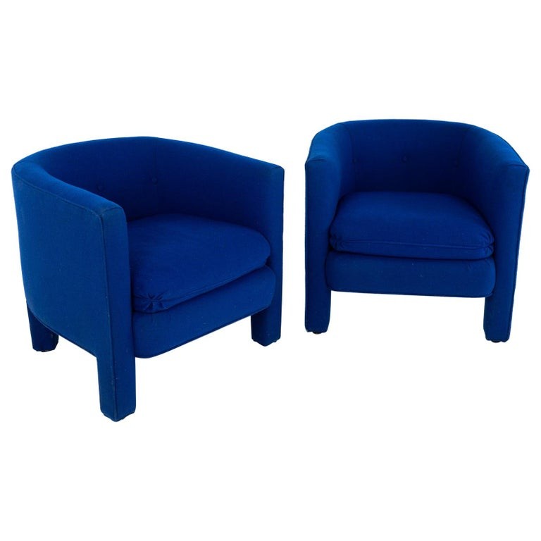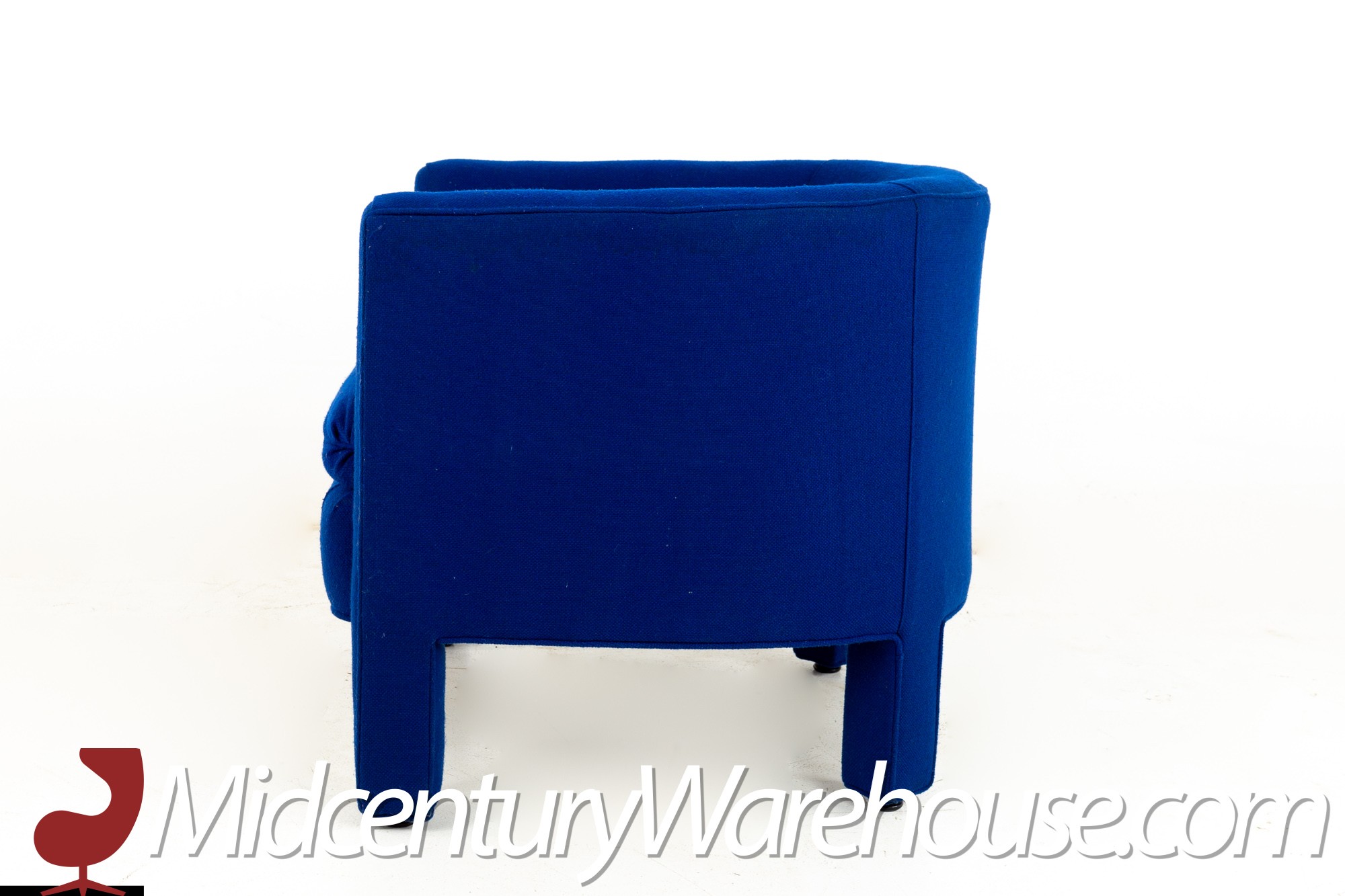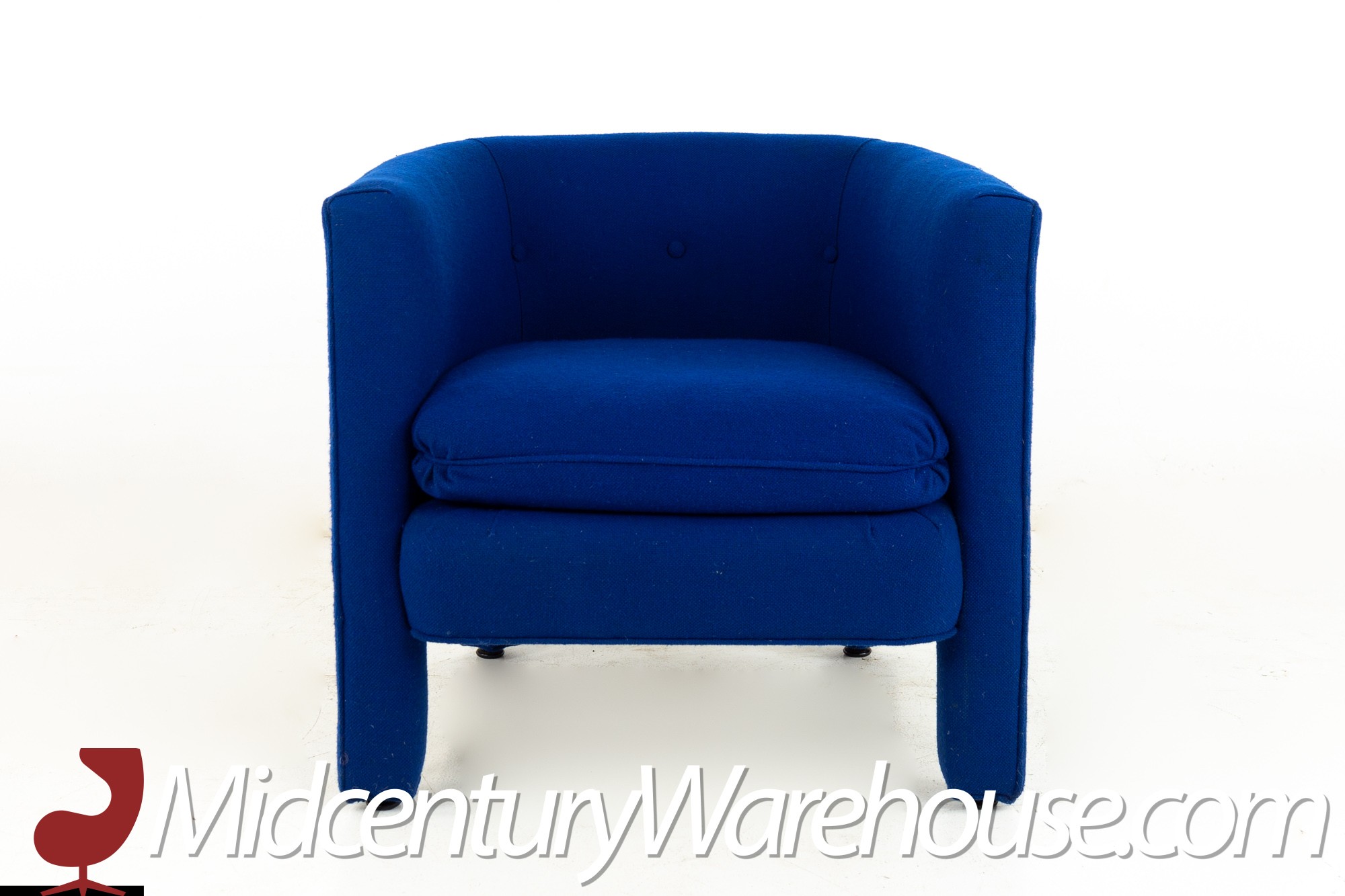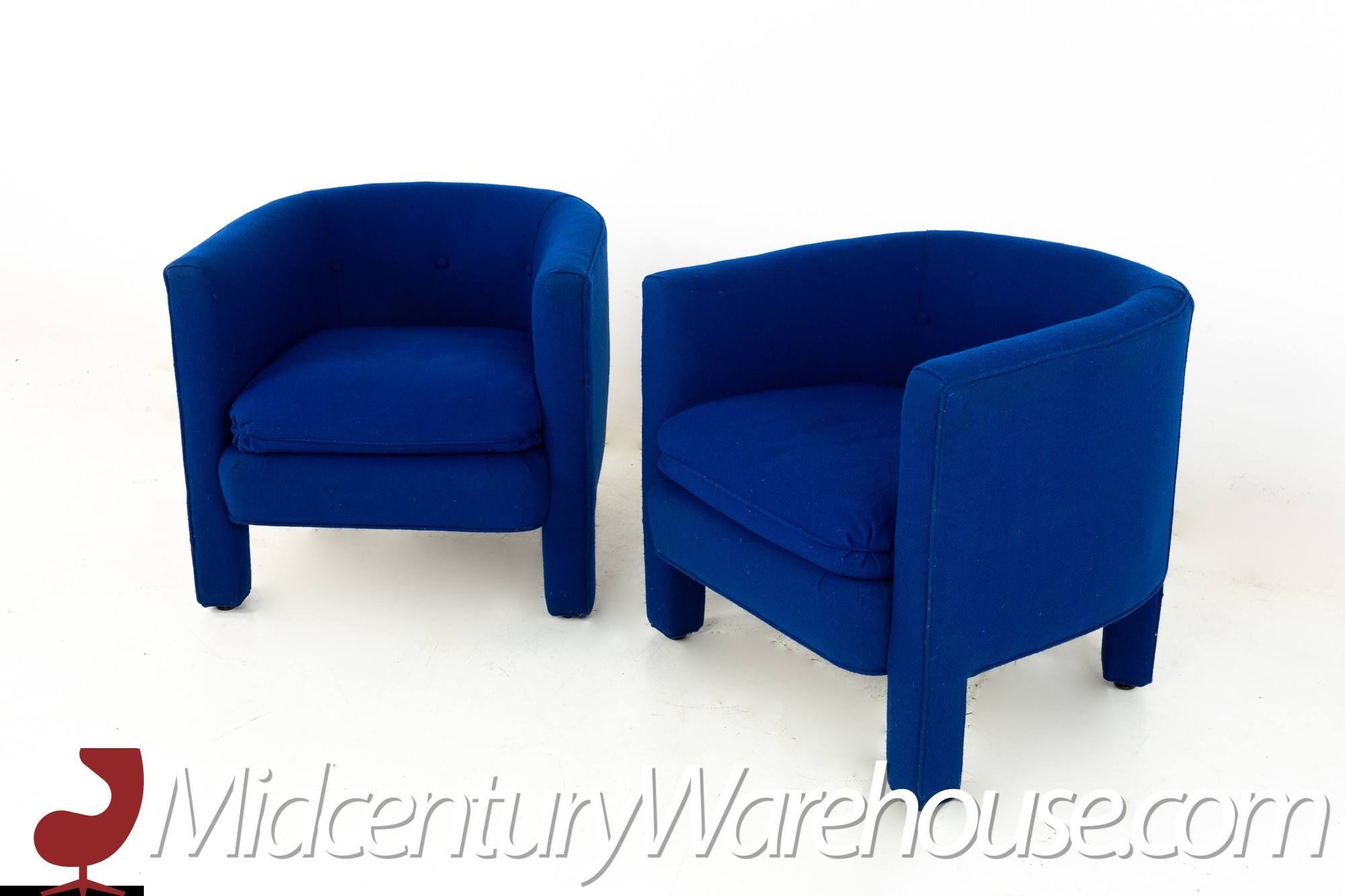 Drexel Heritage Mid Century Upholstered Blue Club Lounge Chairs - Pair