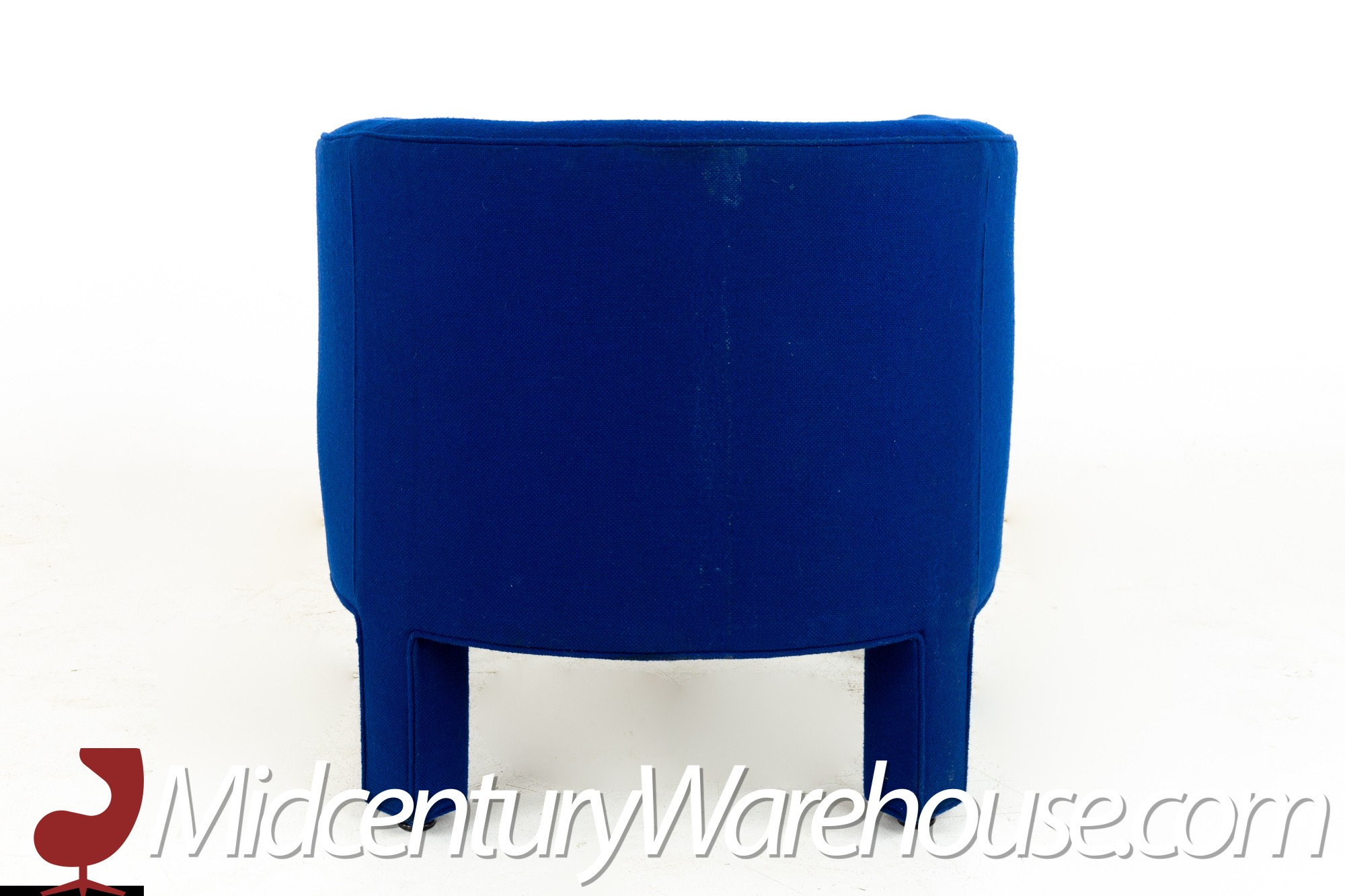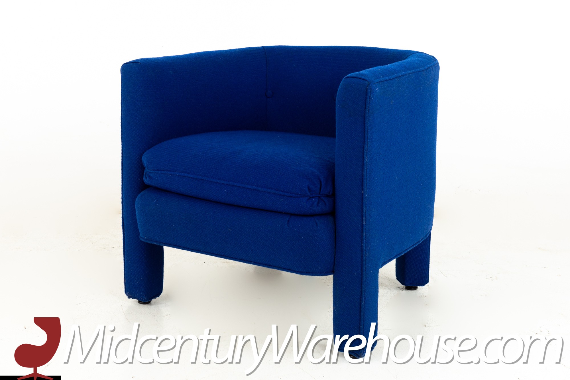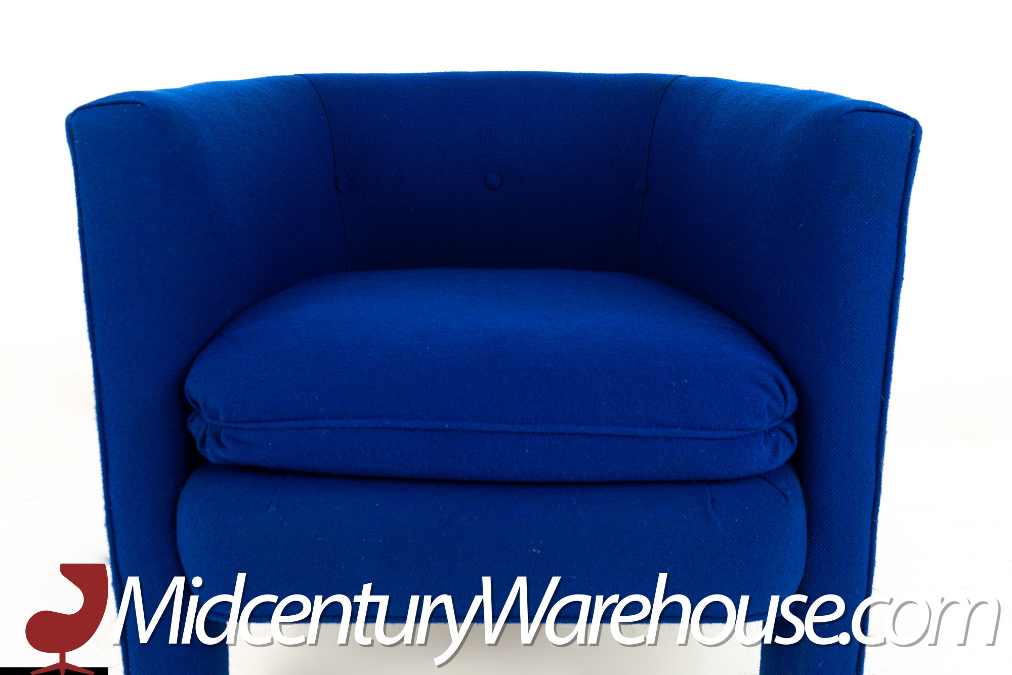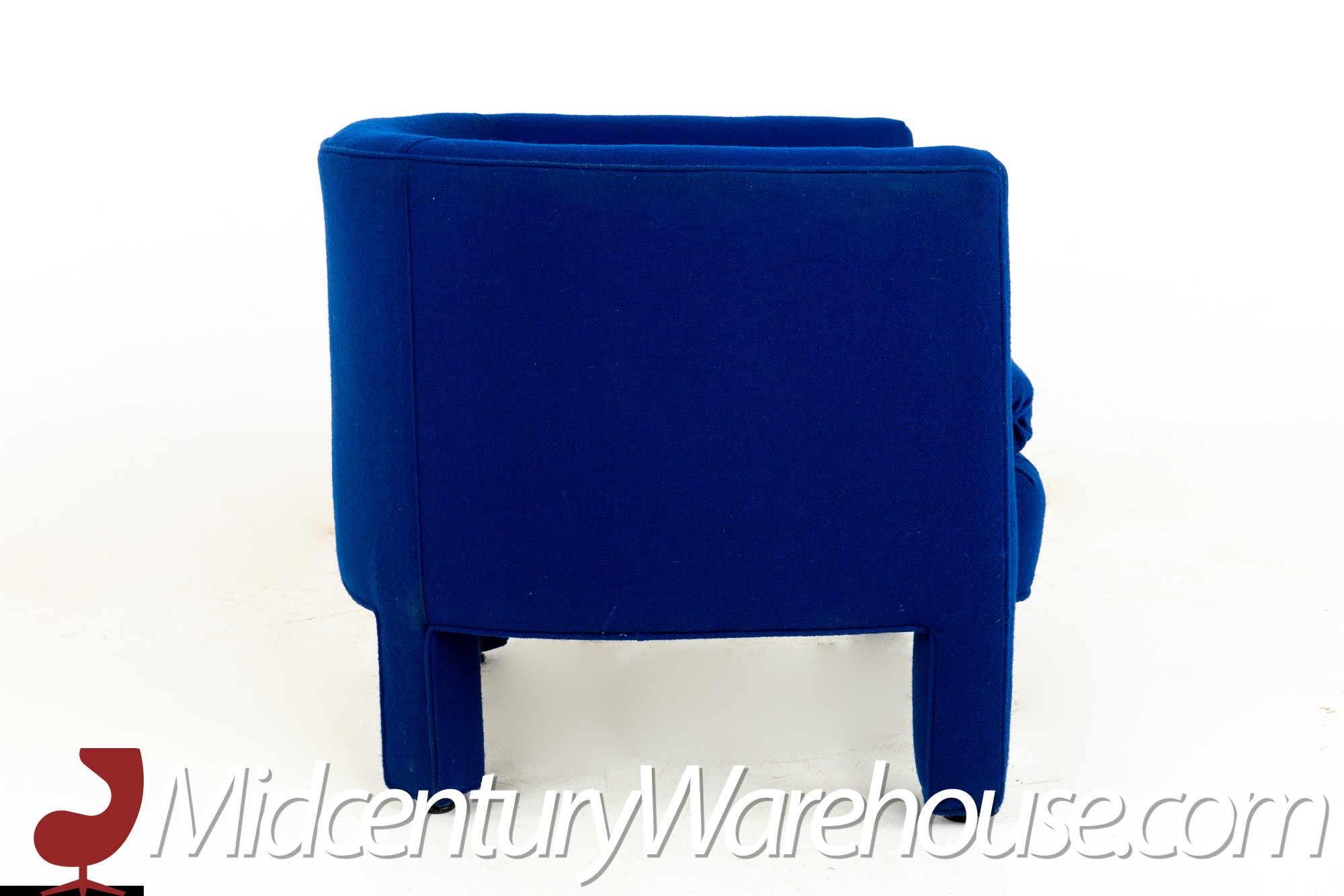 Drexel Heritage Mid Century Upholstered Blue Club Lounge Chairs - Pair