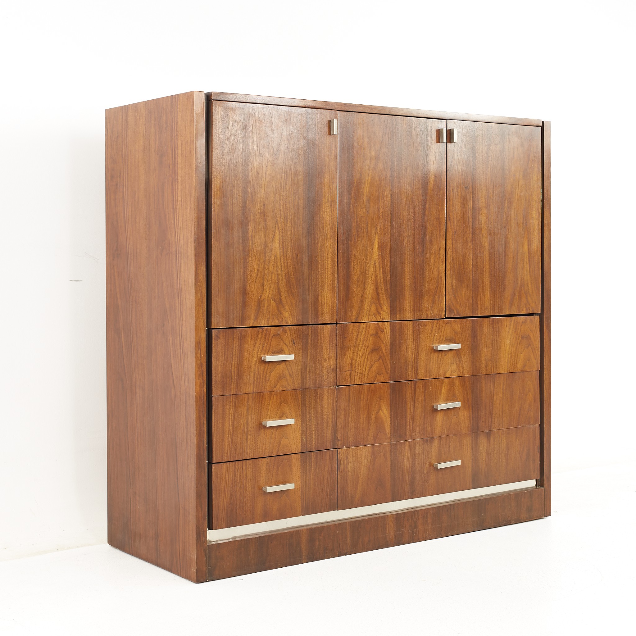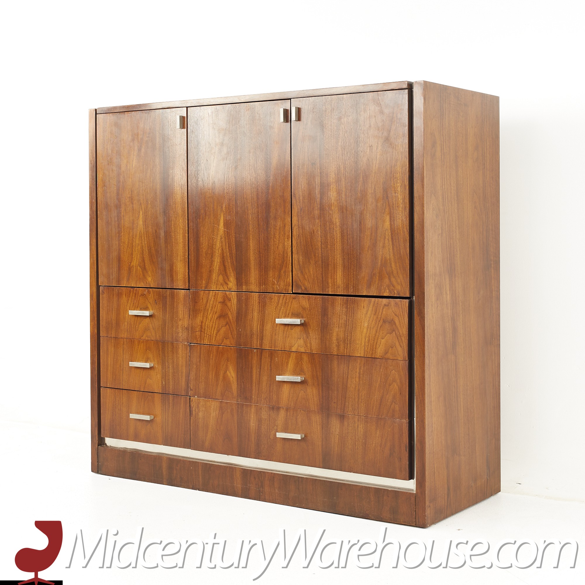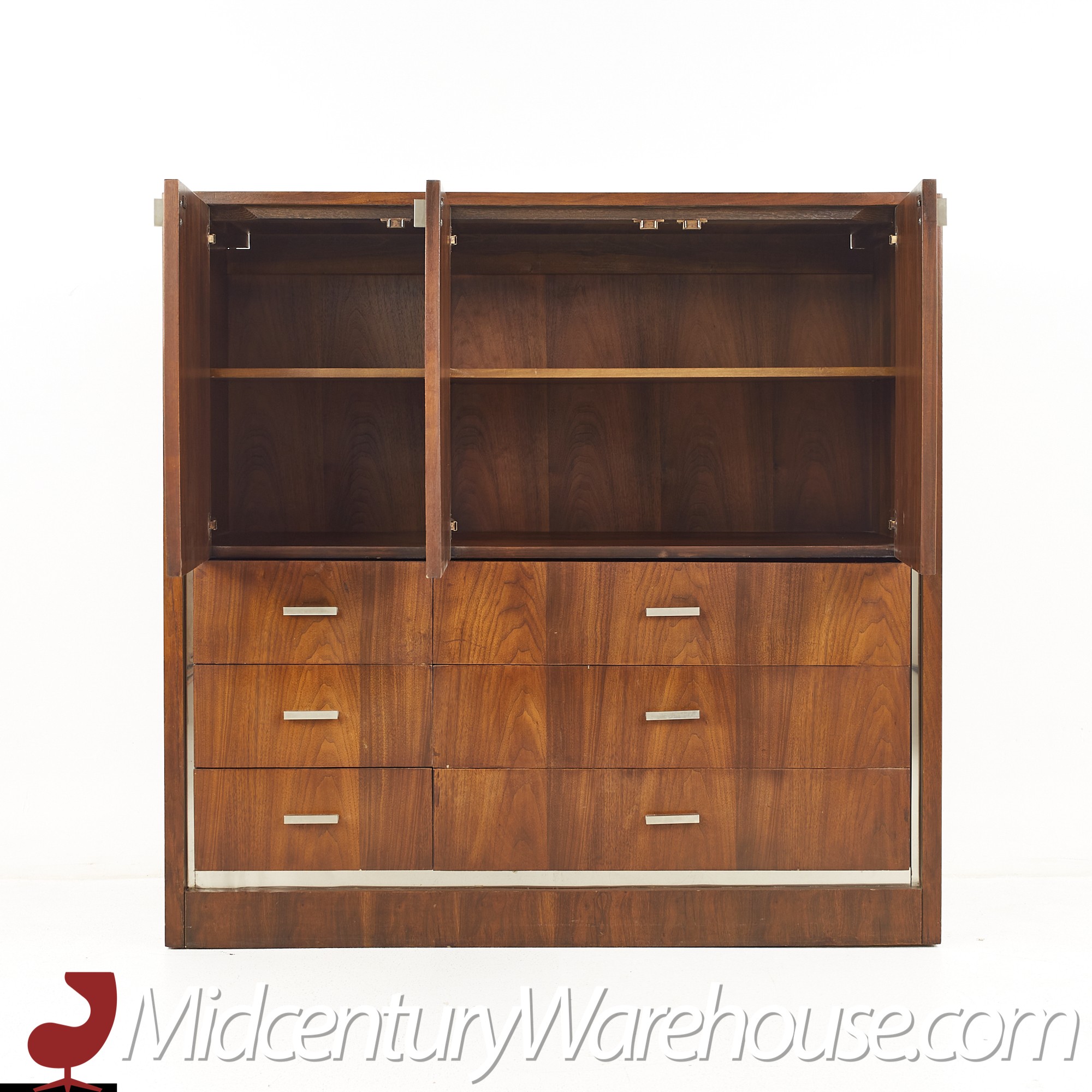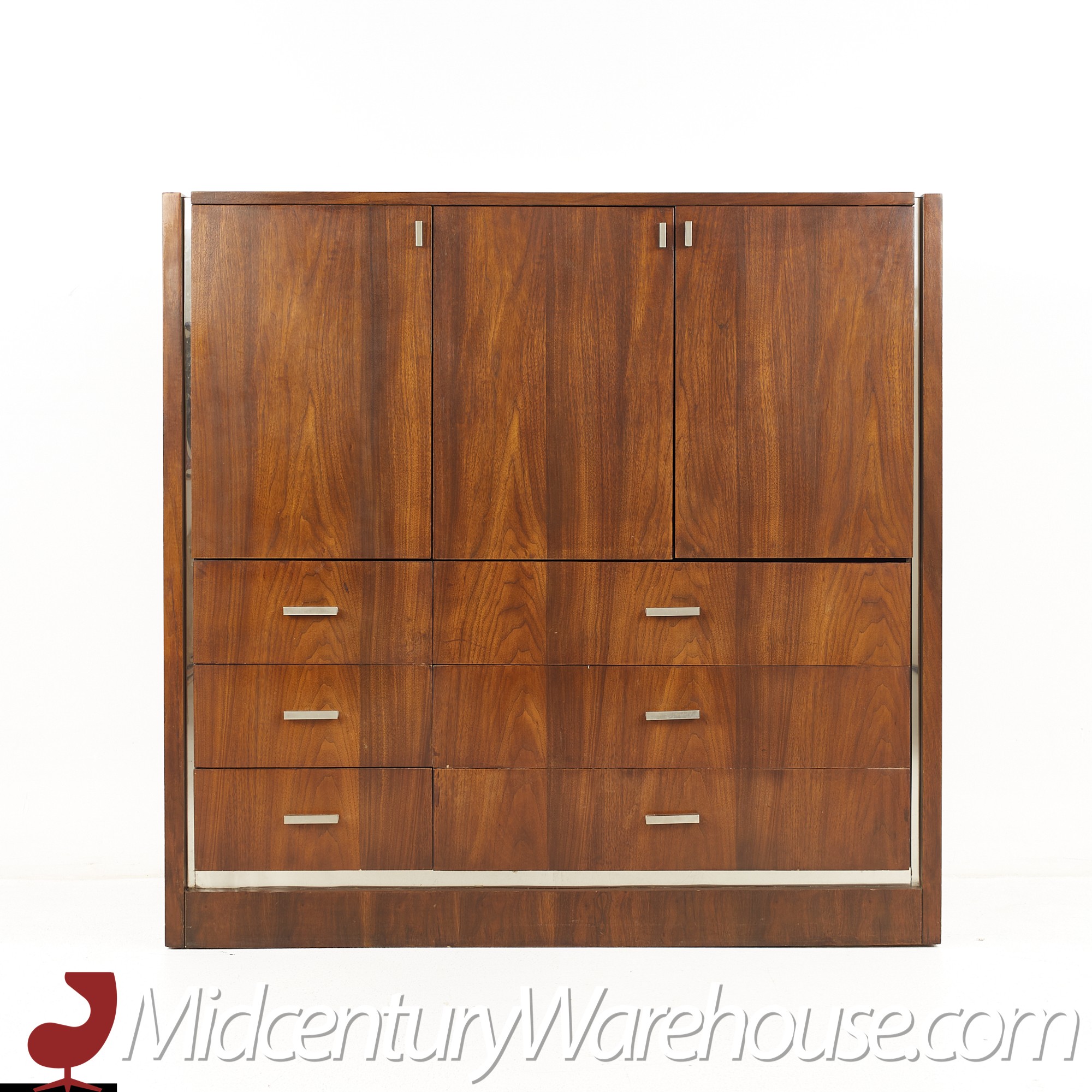 Founders Mid Century Walnut and Chrome Gentlemans Chest Highboy Dresser