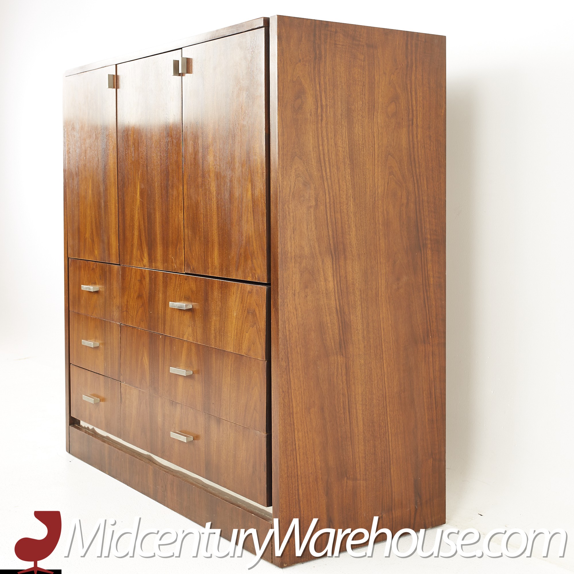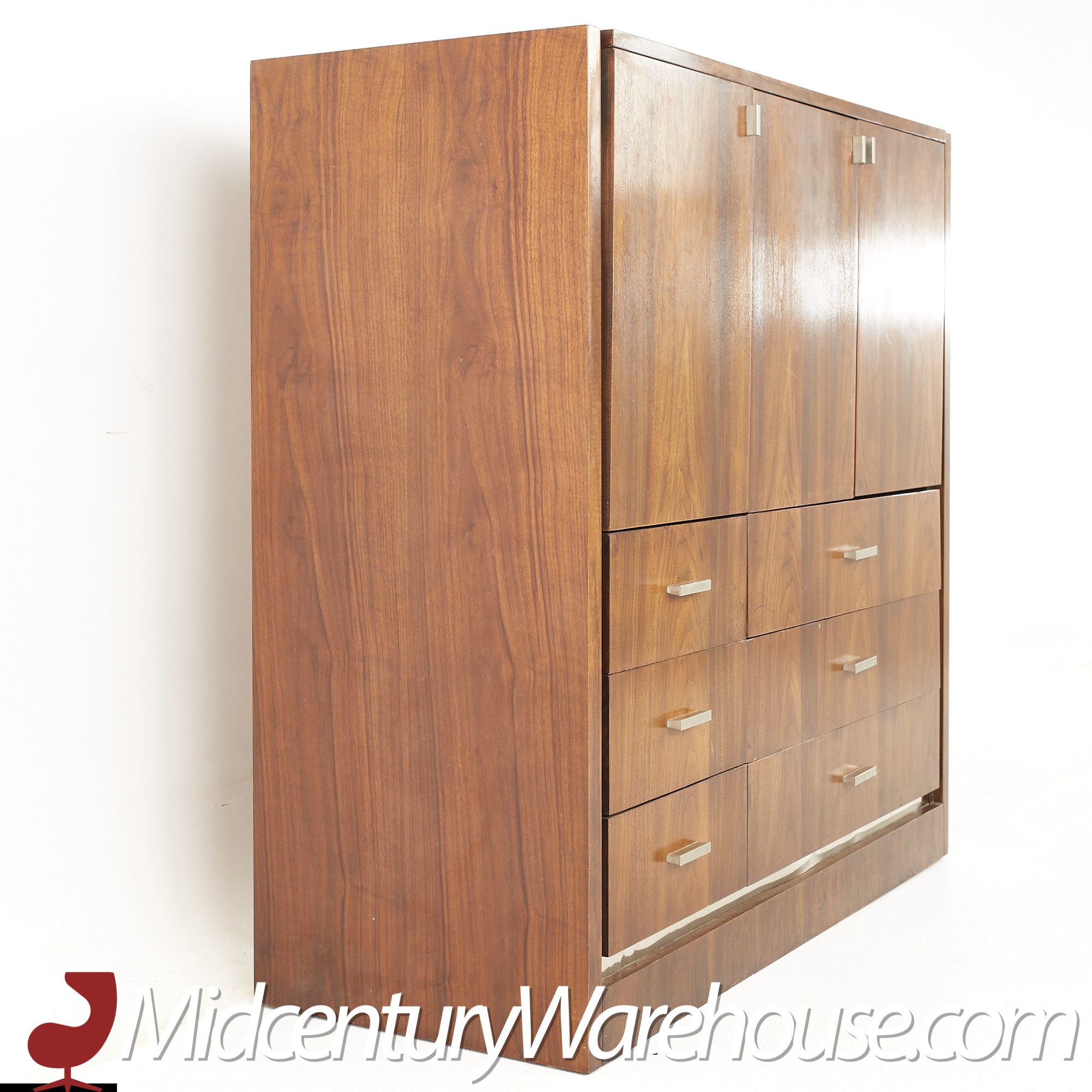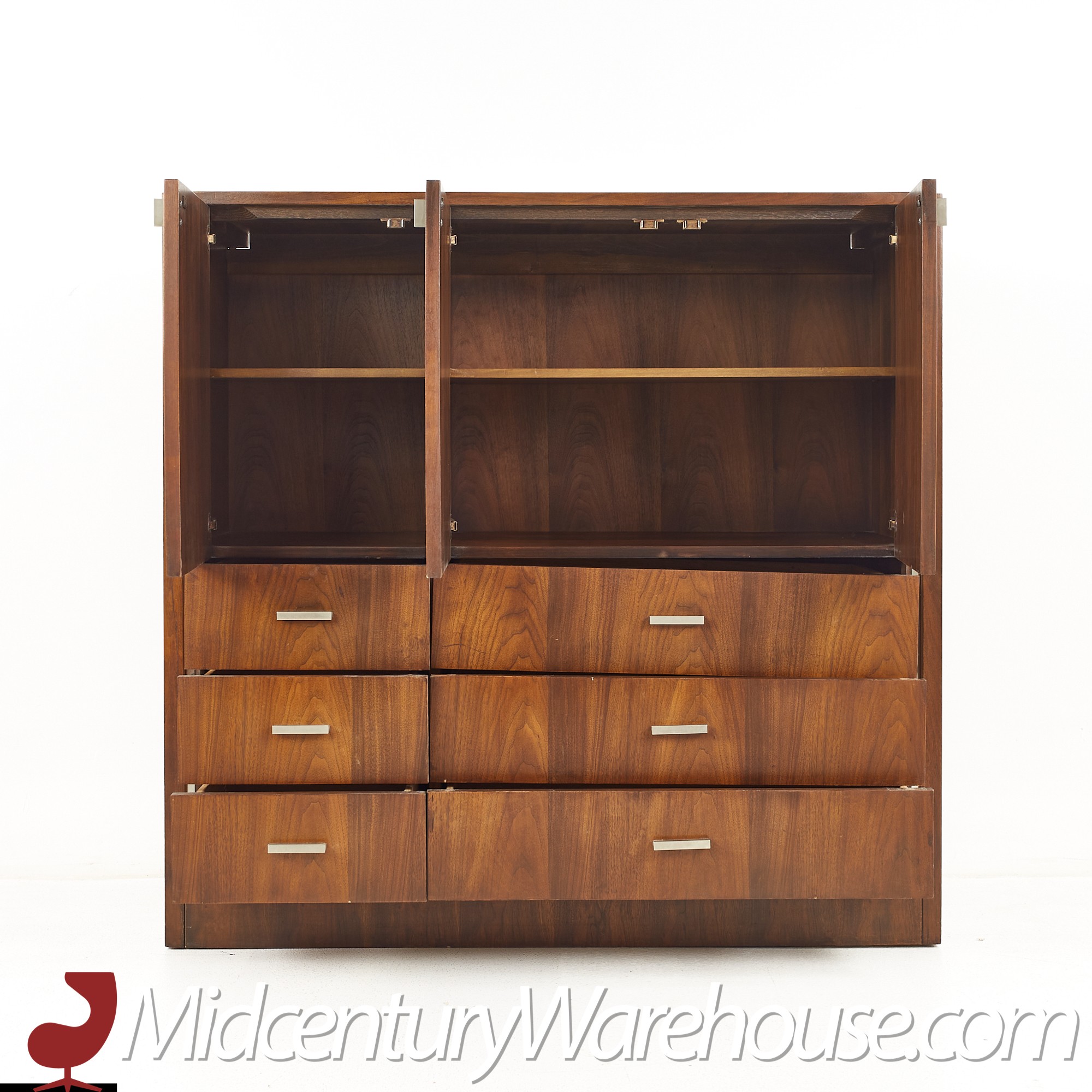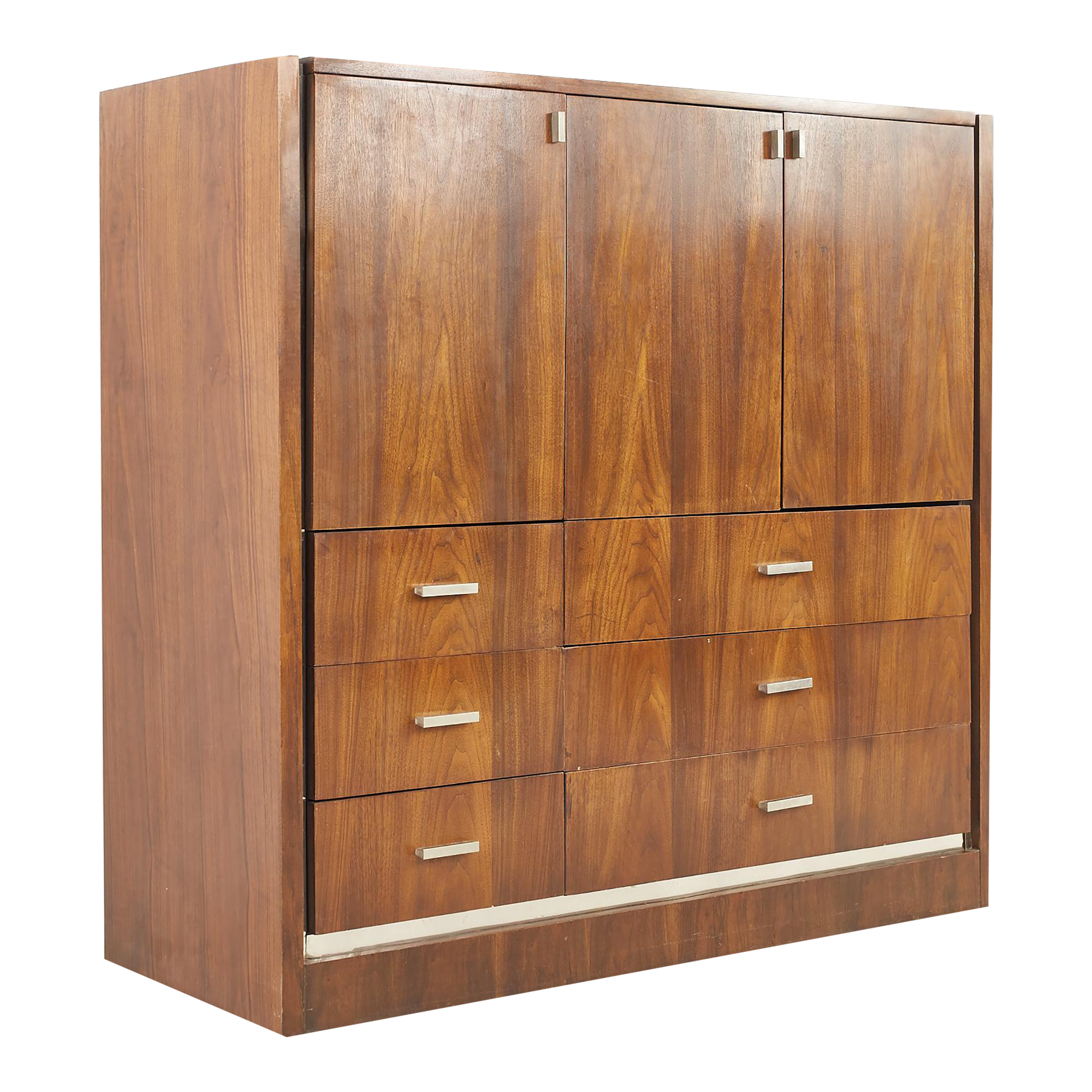 Founders Mid Century Walnut and Chrome Gentlemans Chest Highboy Dresser