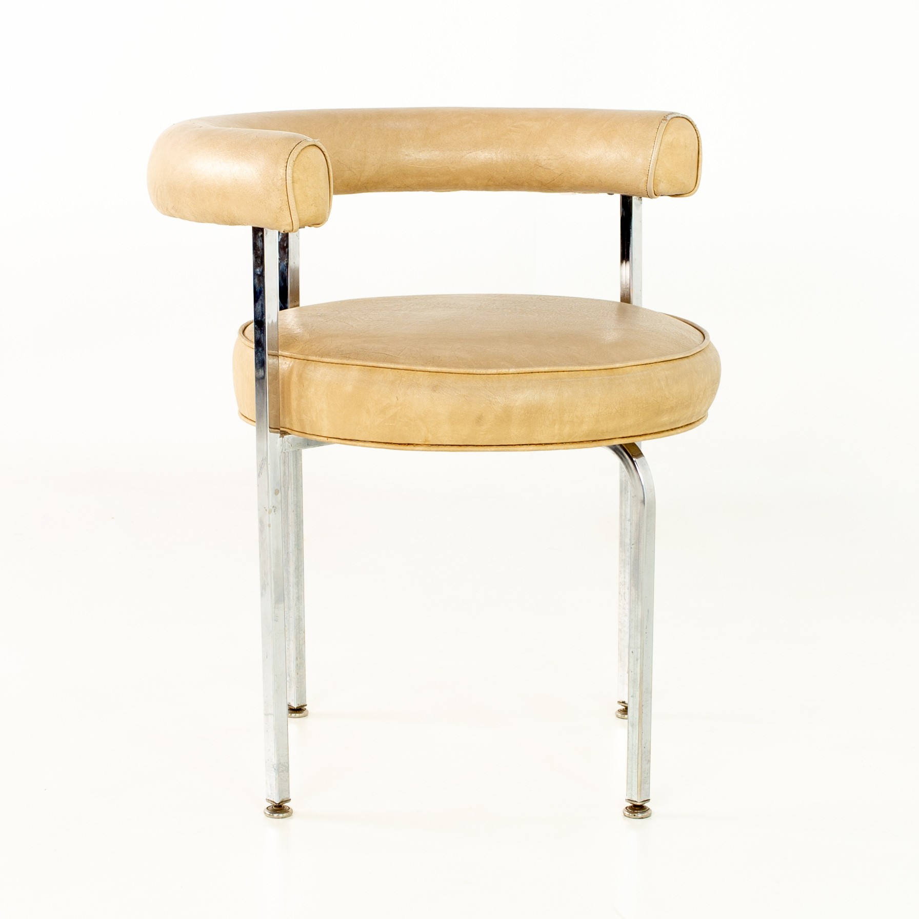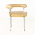 French Style Chrome and Vinyl Mid Century Barrel Dining Chair