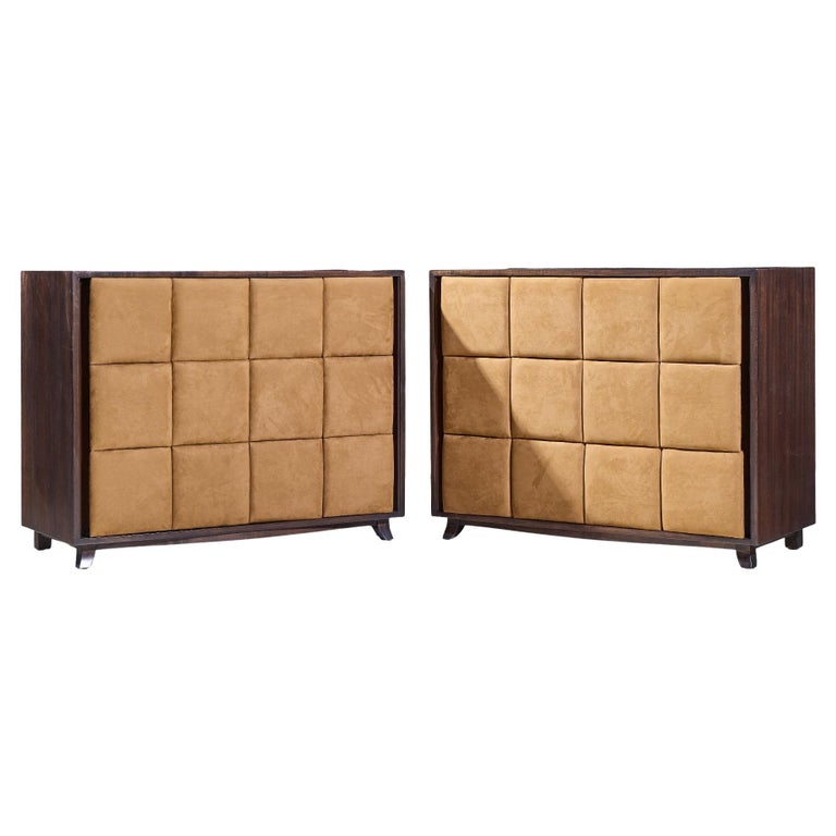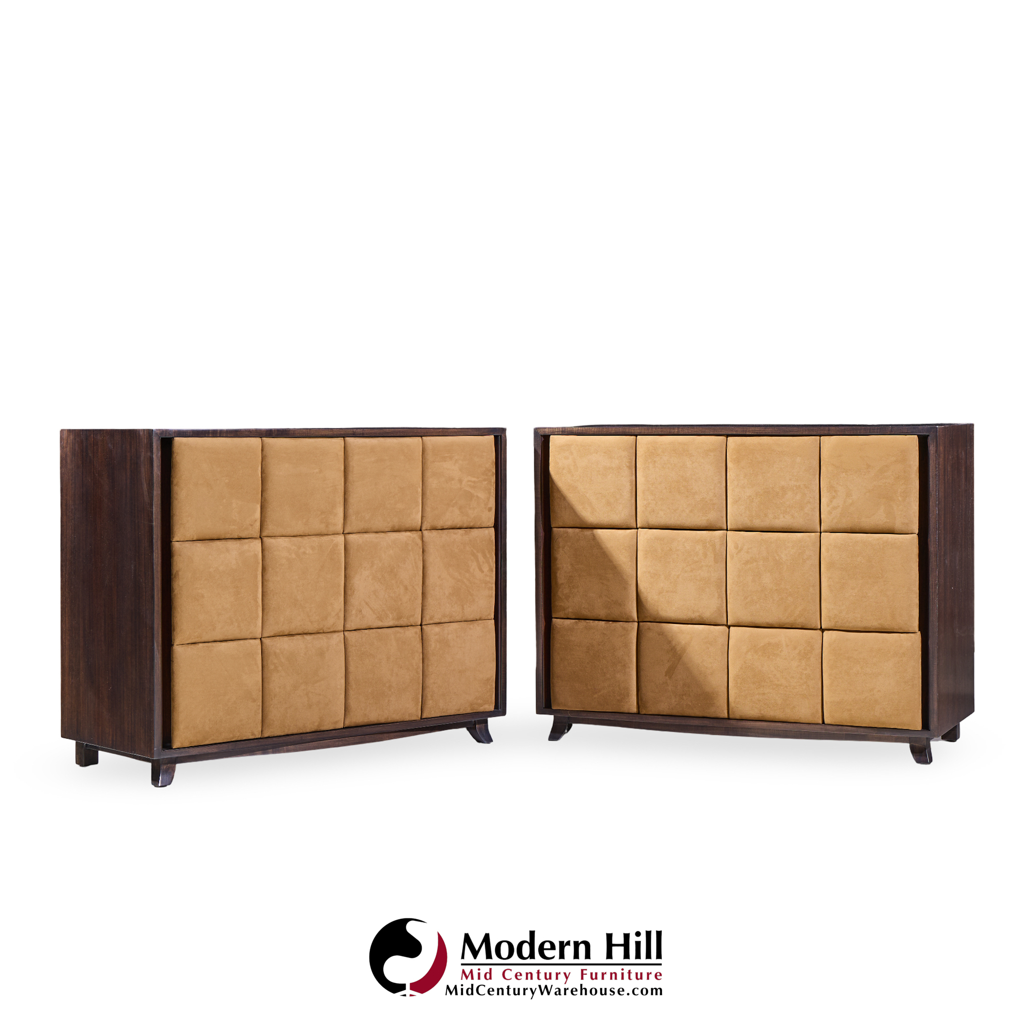 Gilbert Rohde for Herman Miller Model 4140 Mid Century Upholstered Chest Dresser - Pair