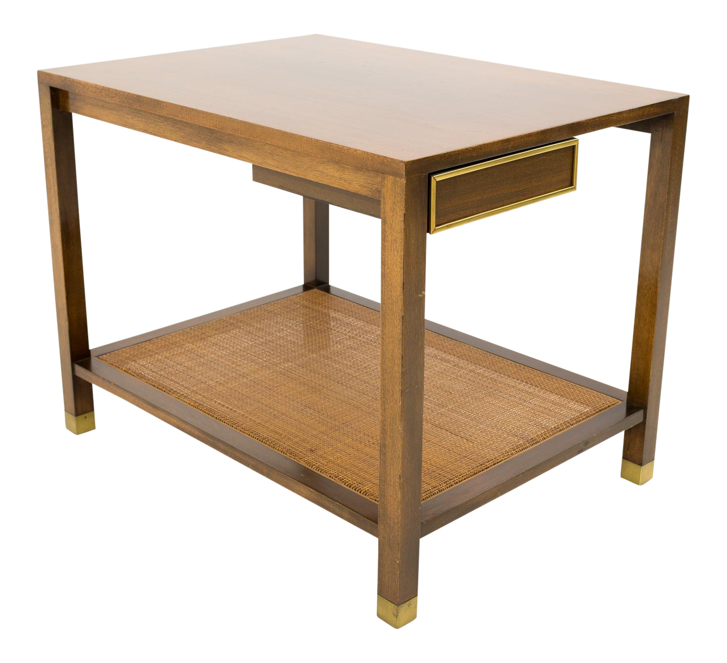 Harvey Probber for Dunbar Mid Century Brass and Caned End Side Table