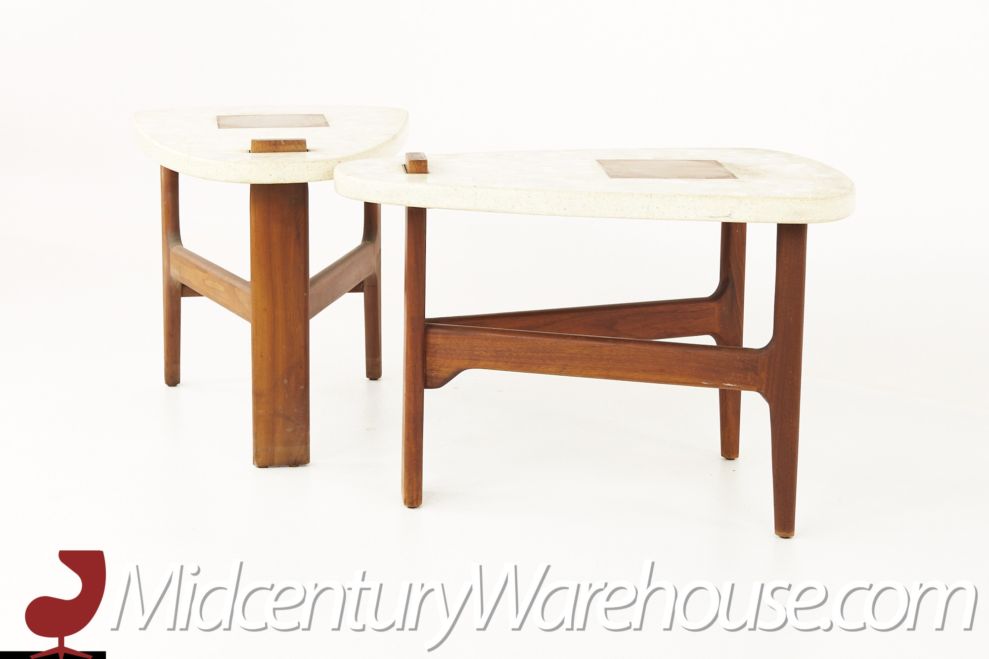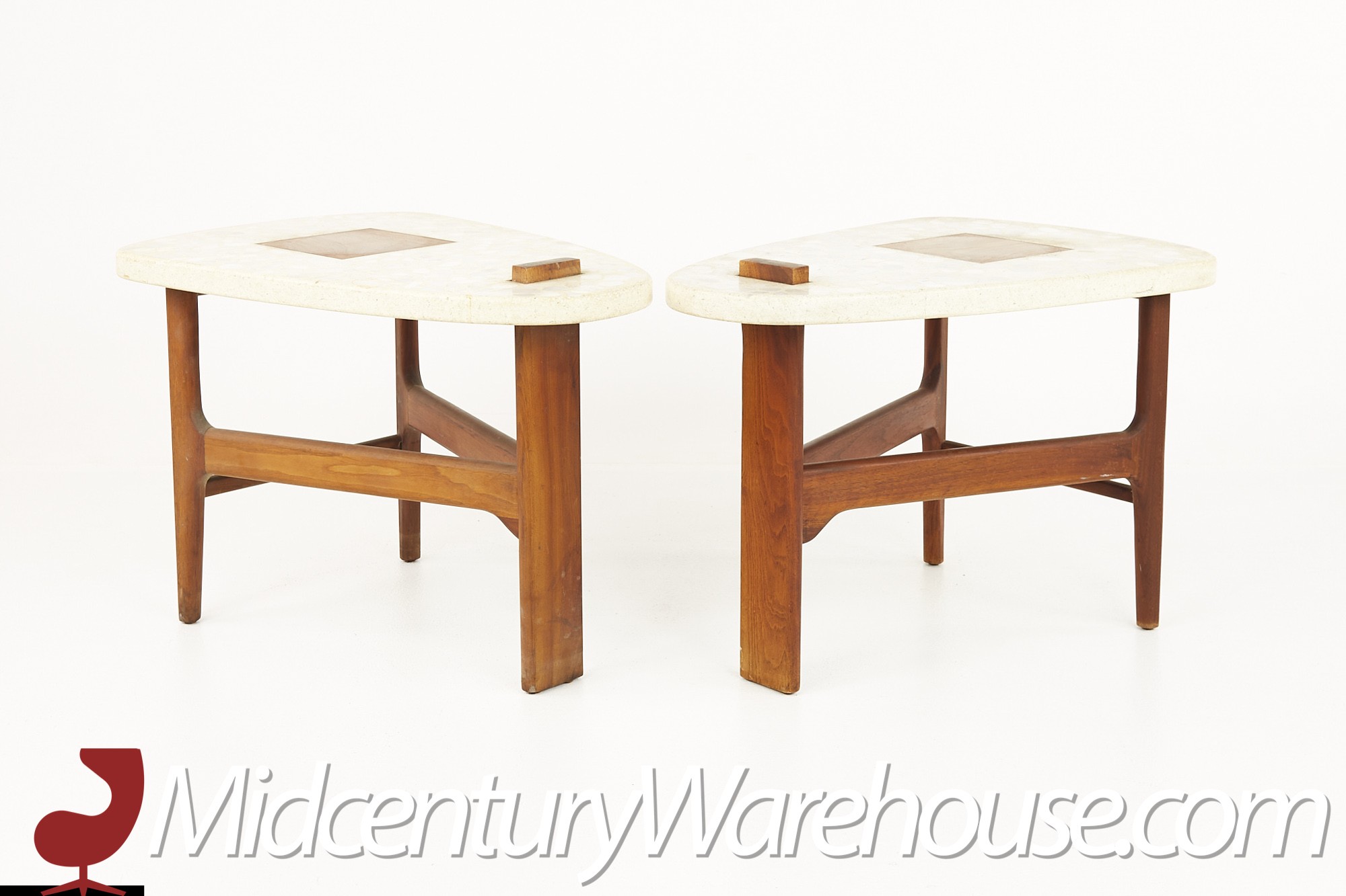 Harvey Probber Style Mid Century Walnut Side End Tables - Pair