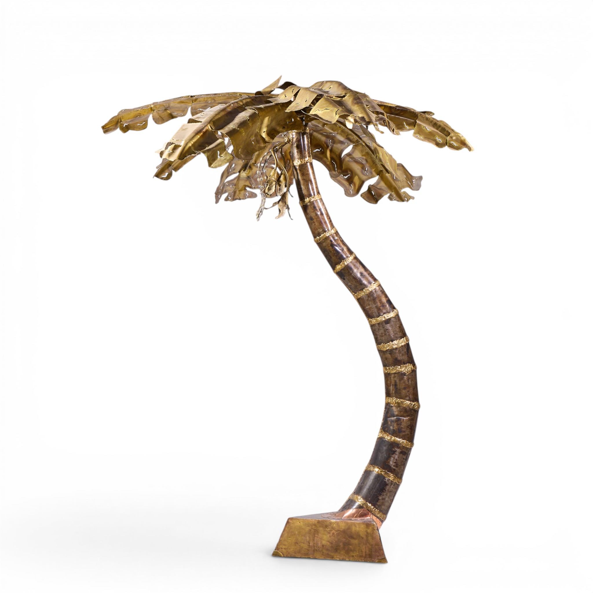 Henri Fernandez Brutalist Grande Palma Brass Palm Tree Sculpture Lamp