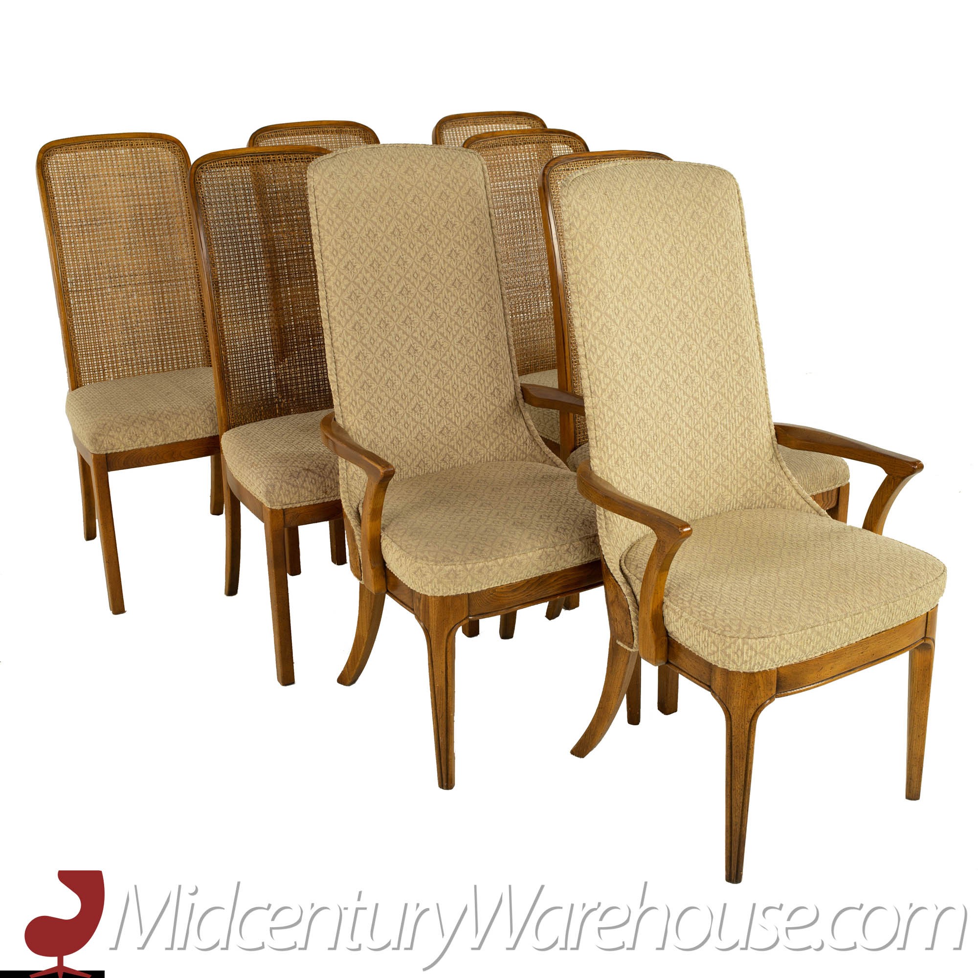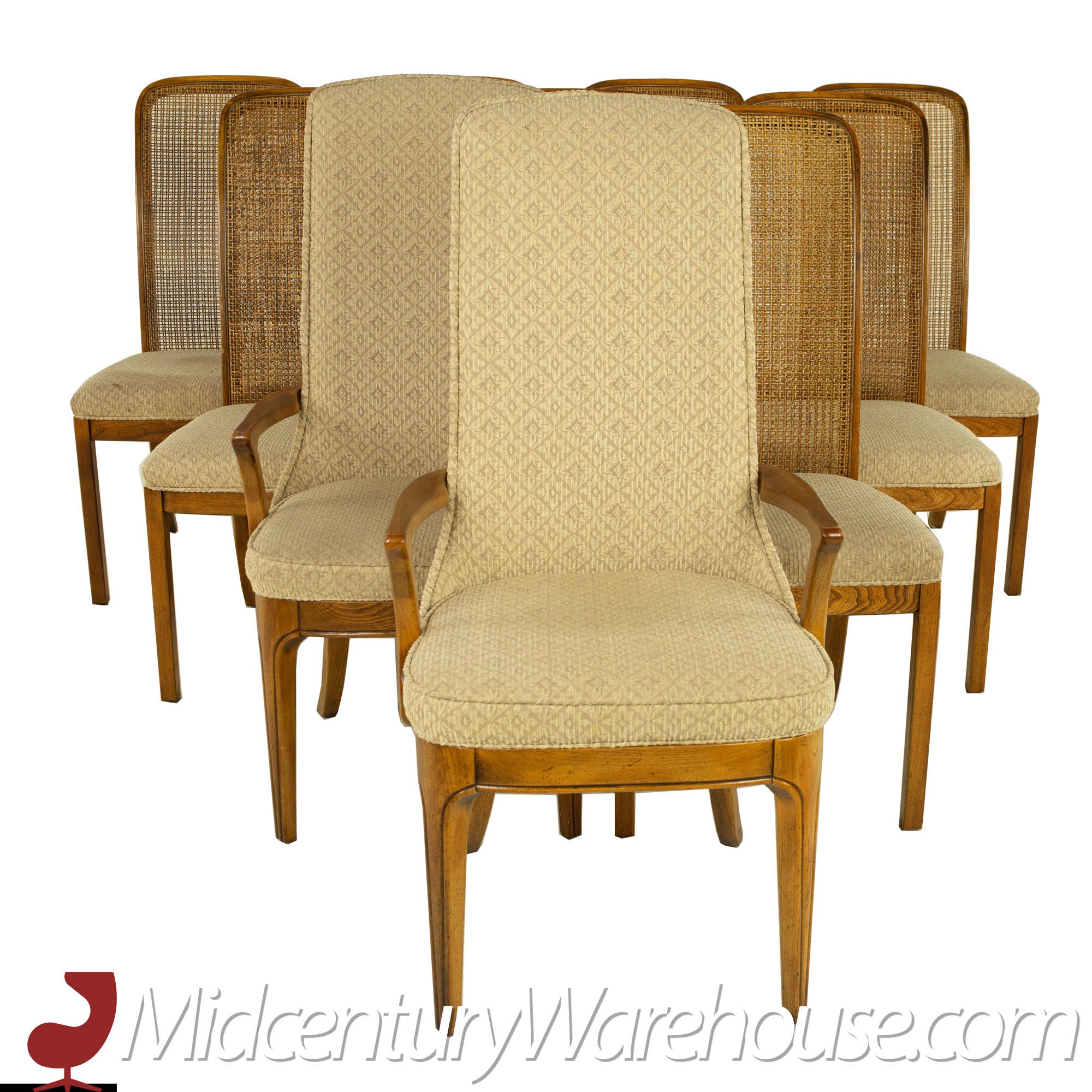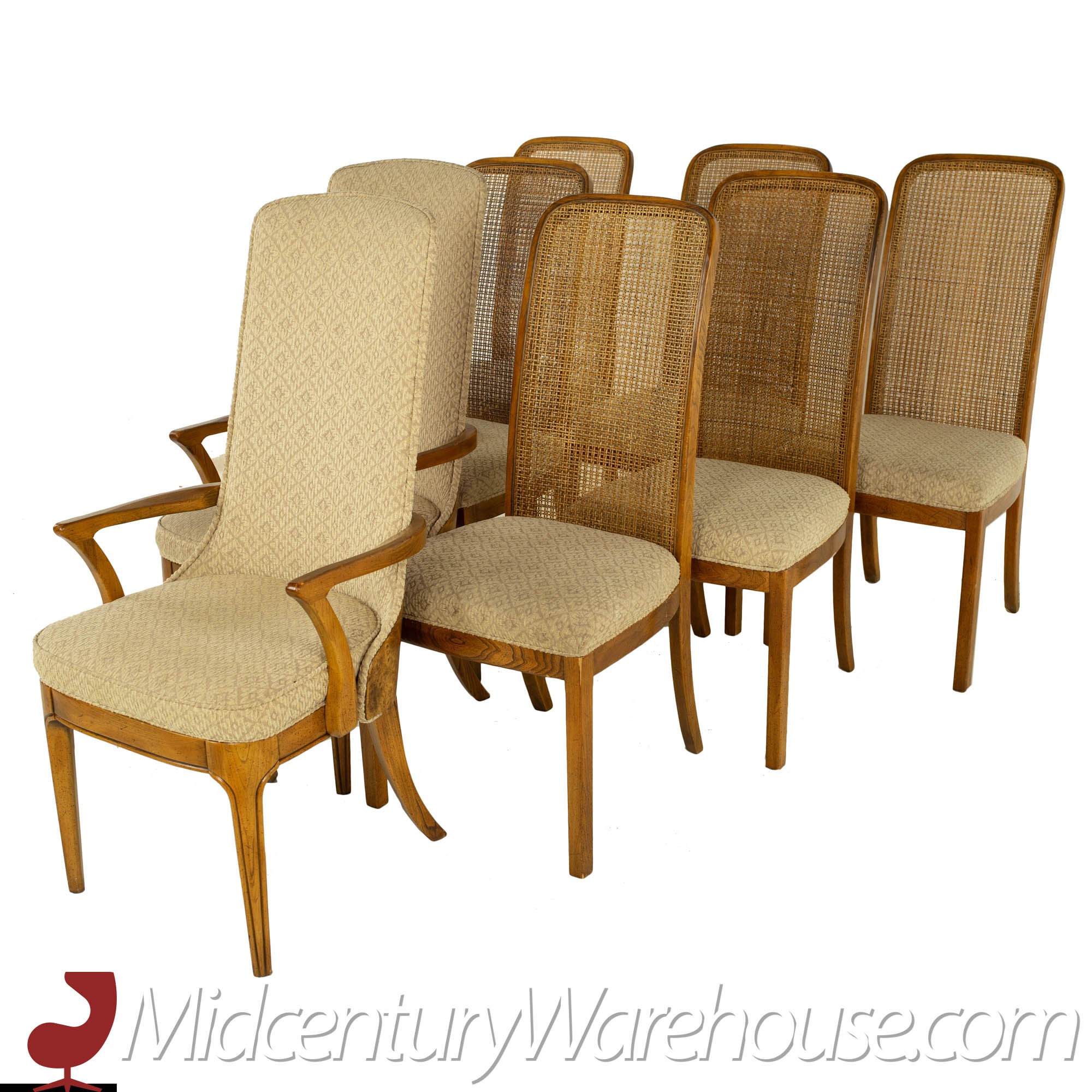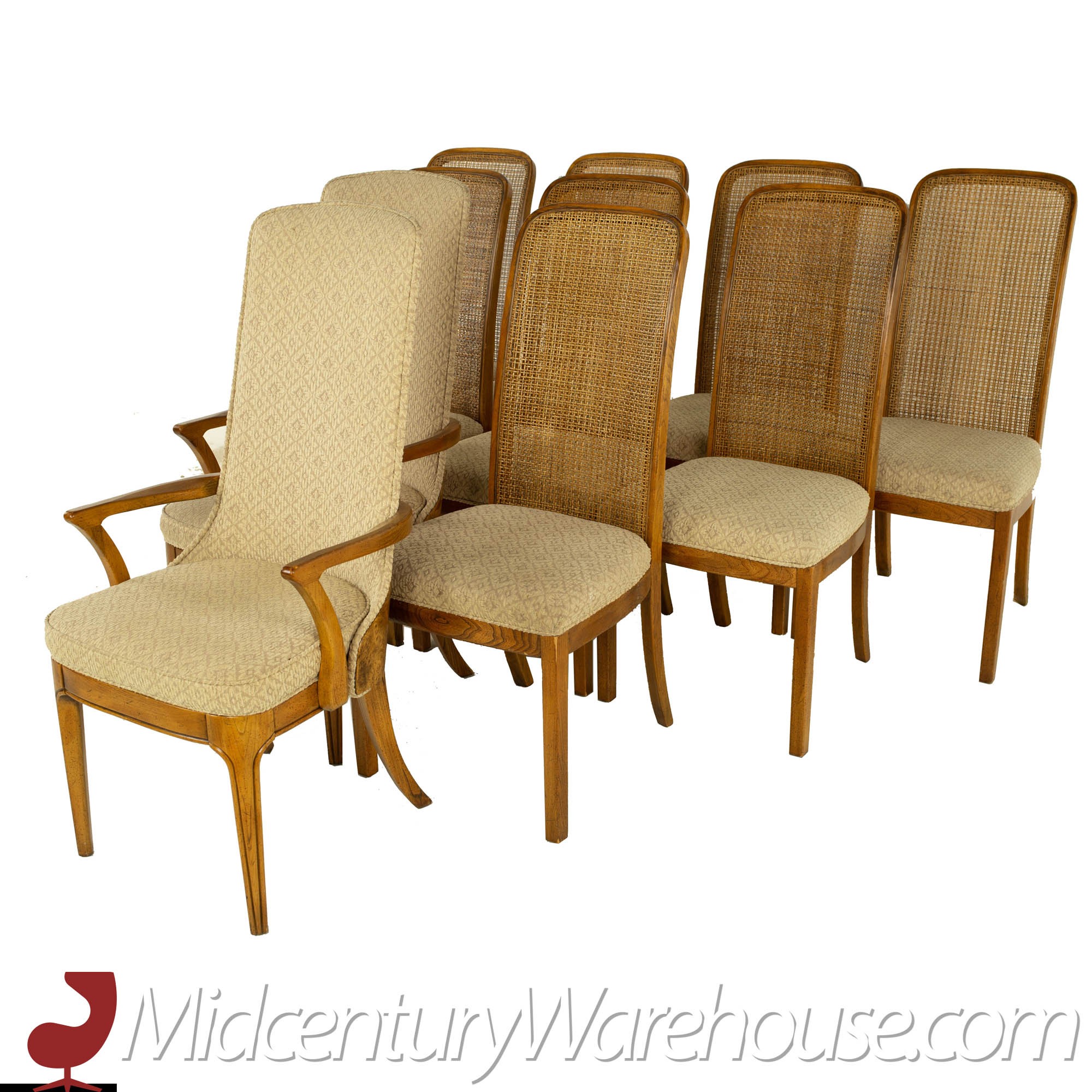 Hickory Manufacturing Company Mid Century Burlwood and Cane Dining Chairs - Set of 10