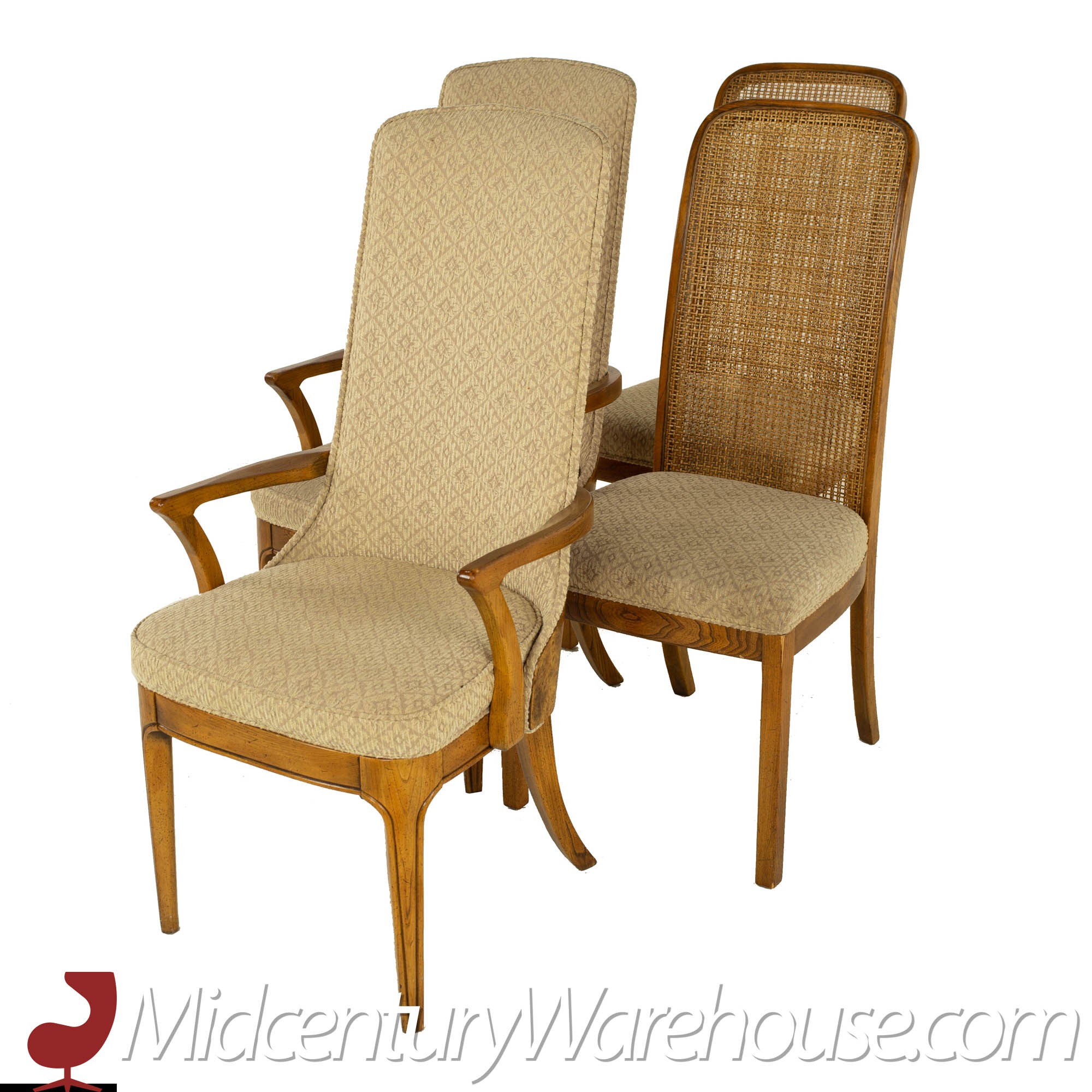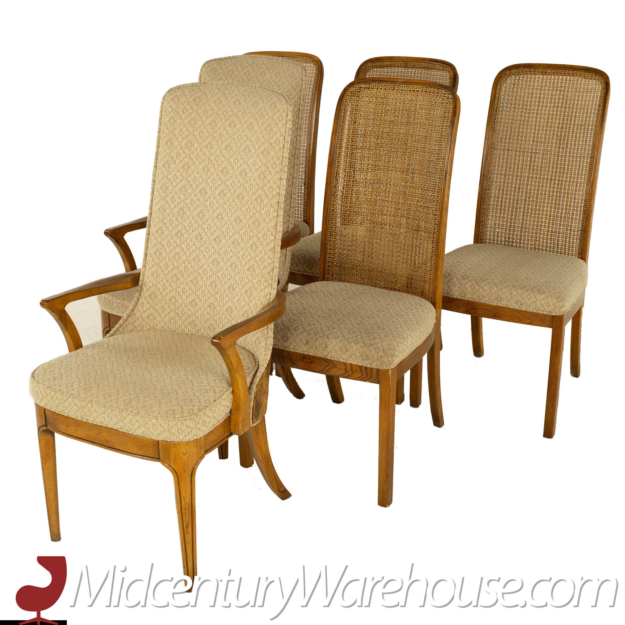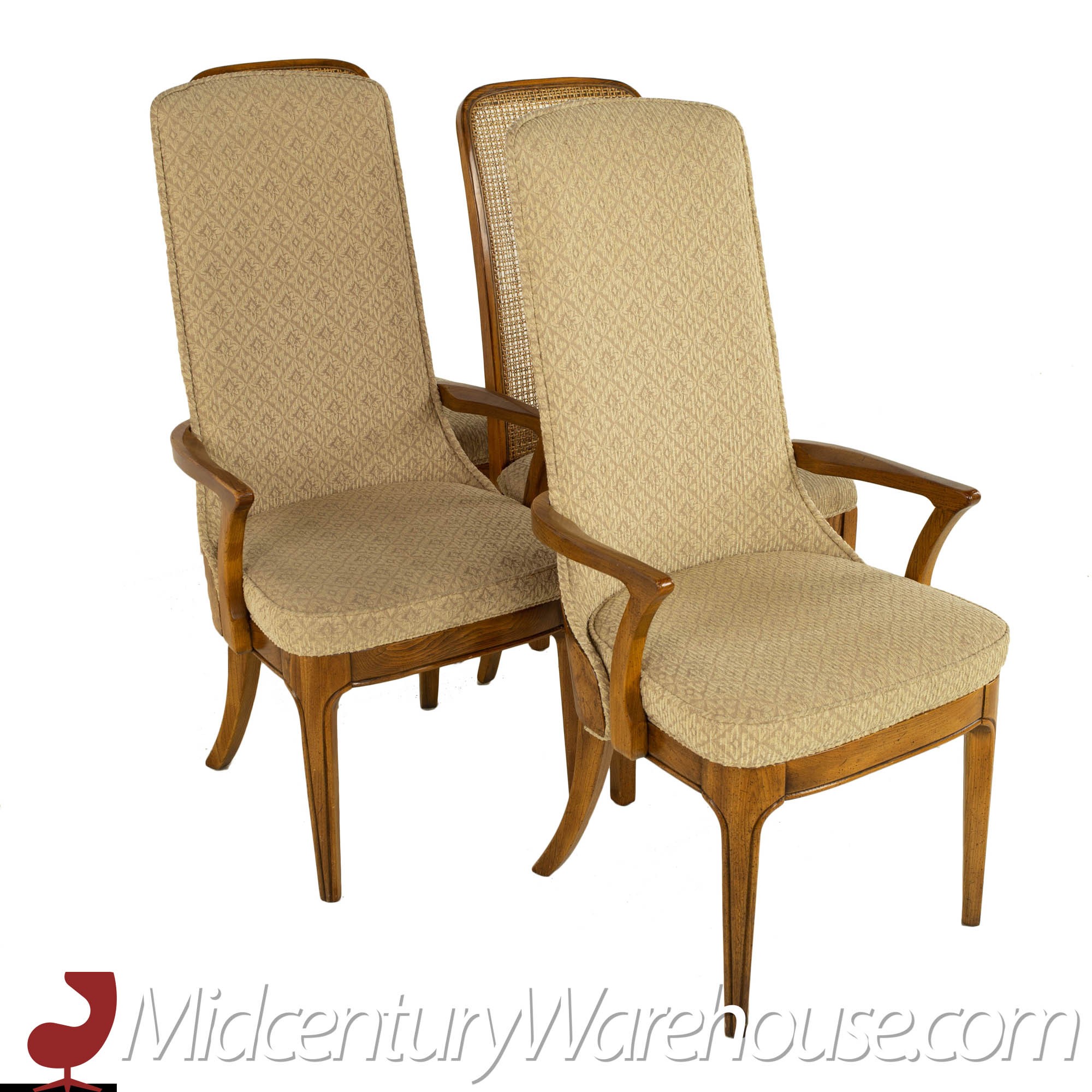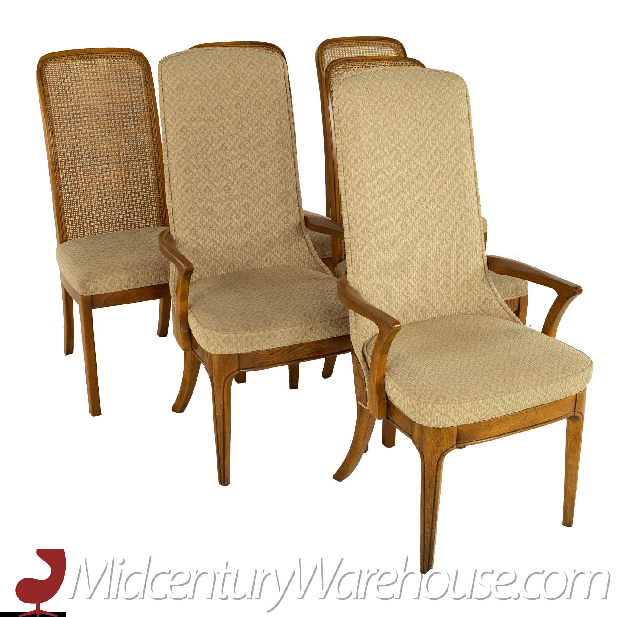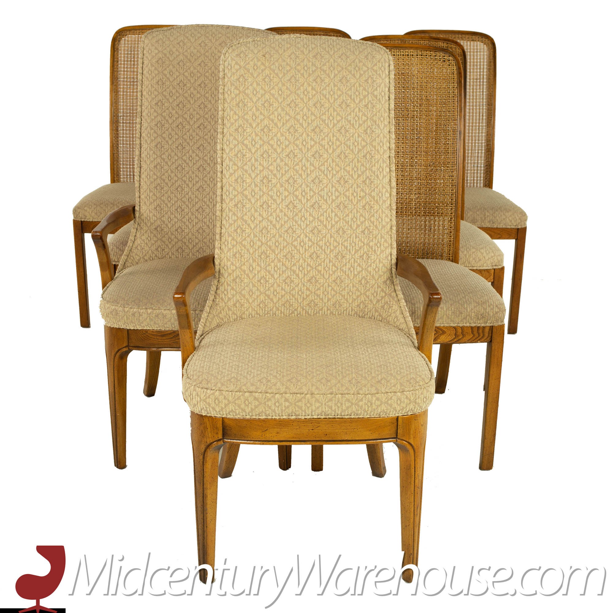 Hickory Manufacturing Company Mid Century Burlwood and Cane Dining Chairs - Set of 10