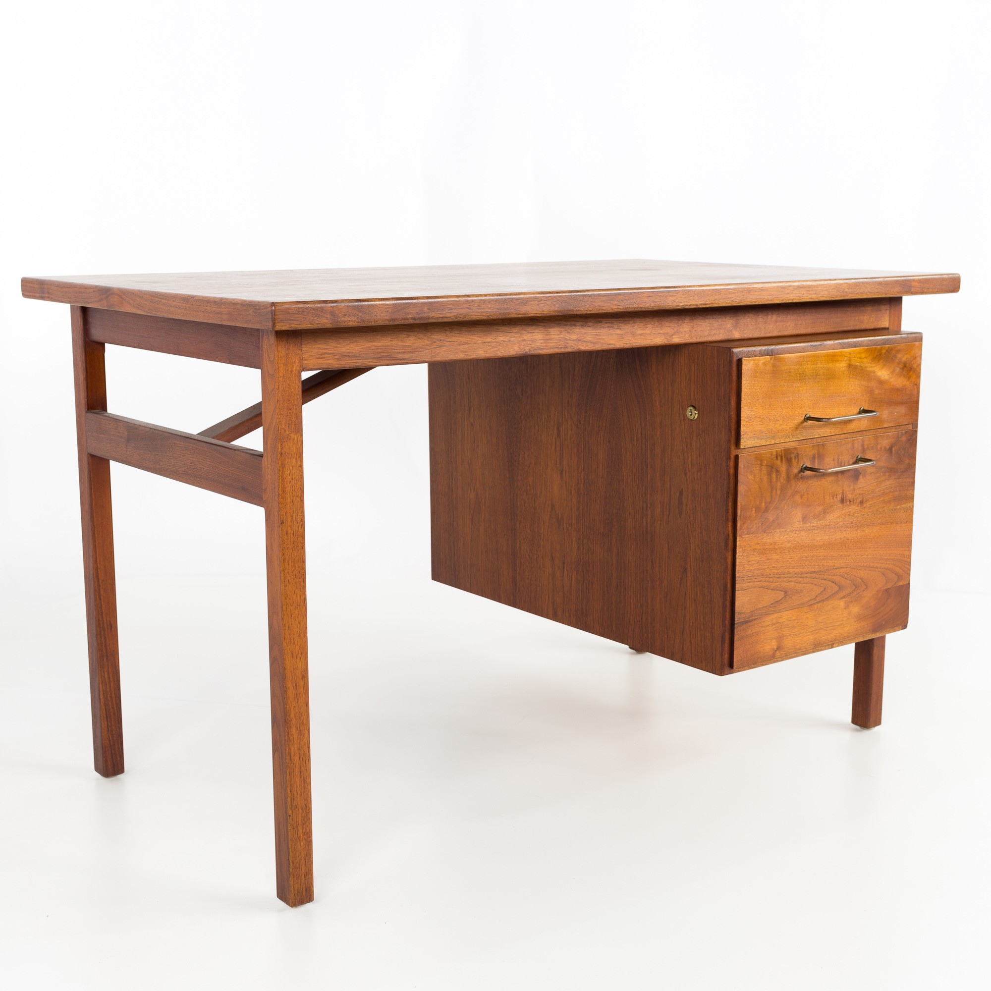 Jens Risom Heavy Duty Single Sided Mid Century Floating Walnut Desk