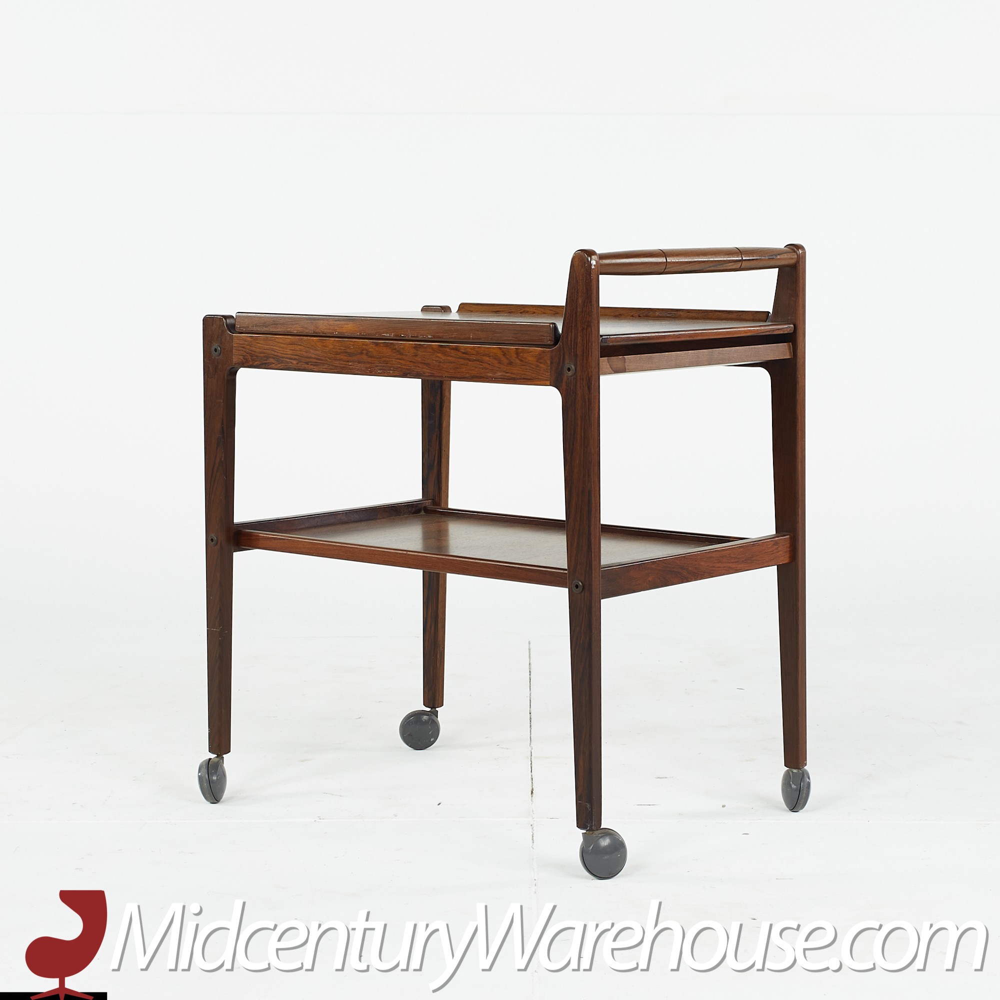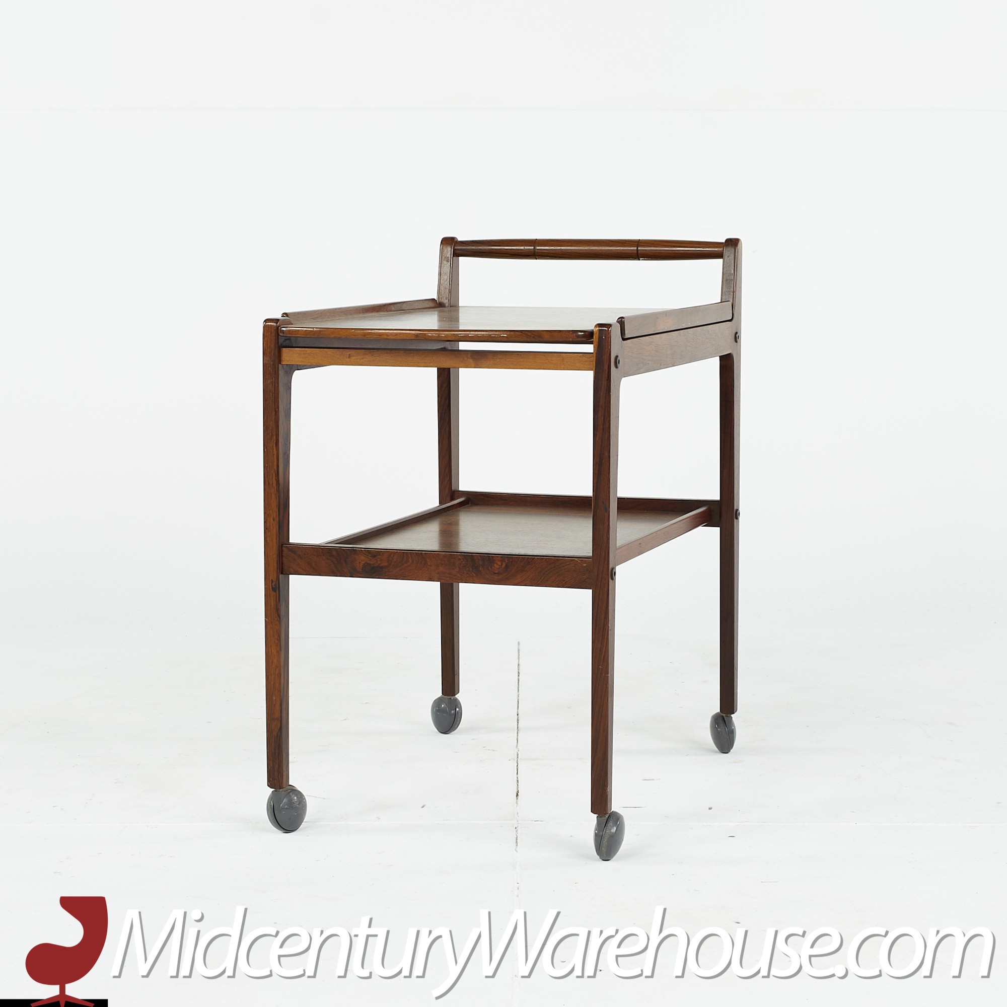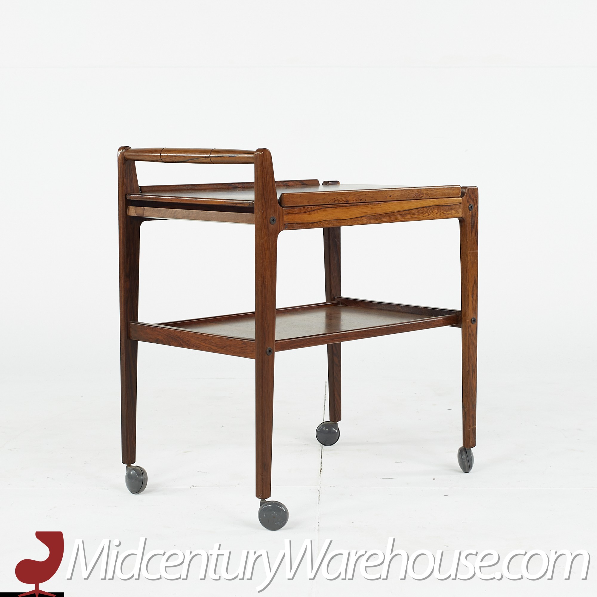 Johannes Andersen Style Mid Century Danish Rosewood Expanding Serving Bar Cart
