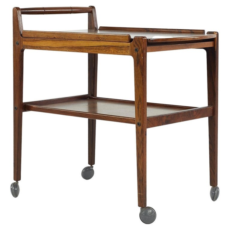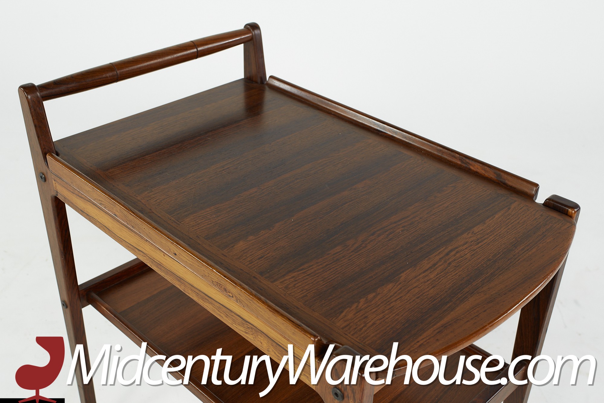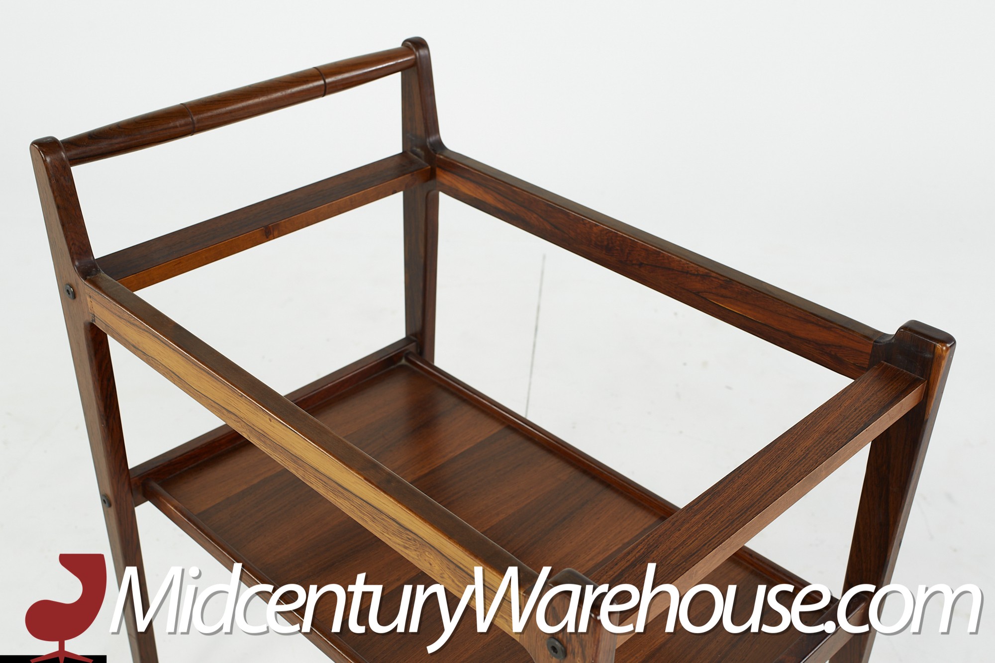 Johannes Andersen Style Mid Century Danish Rosewood Expanding Serving Bar Cart