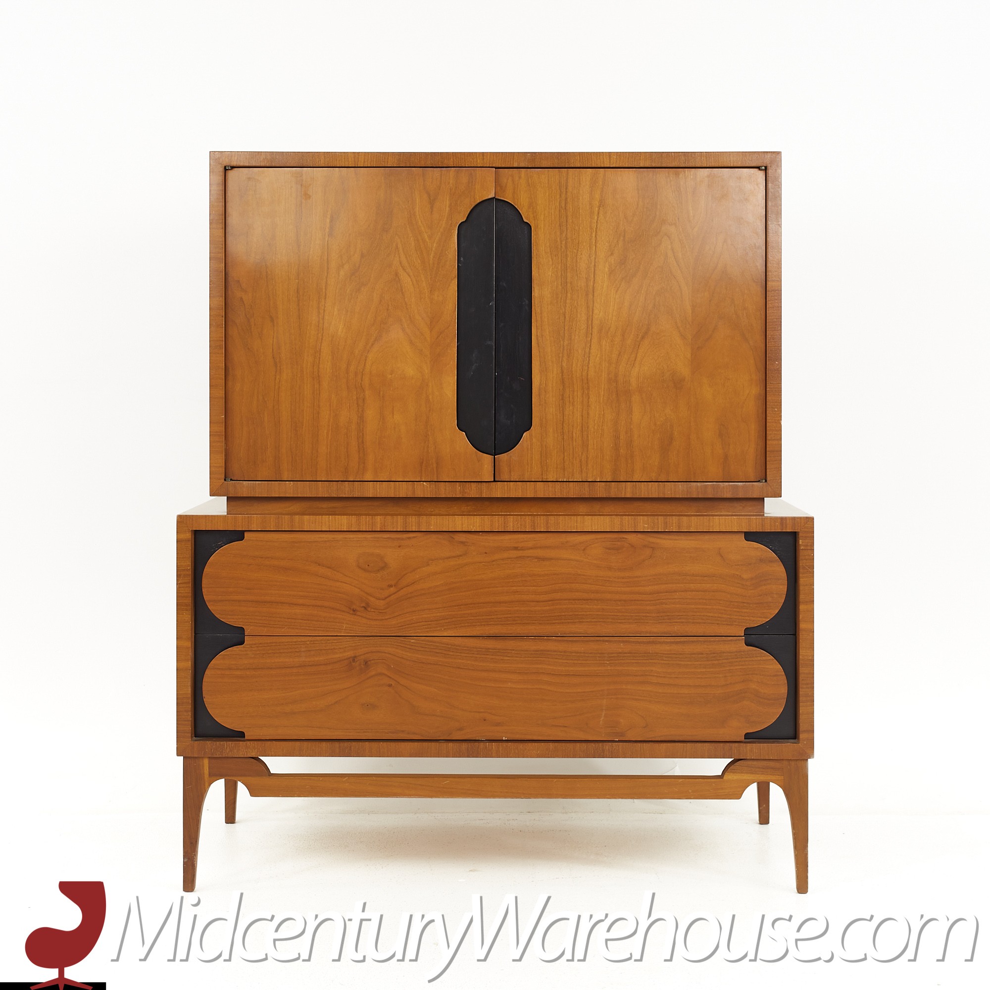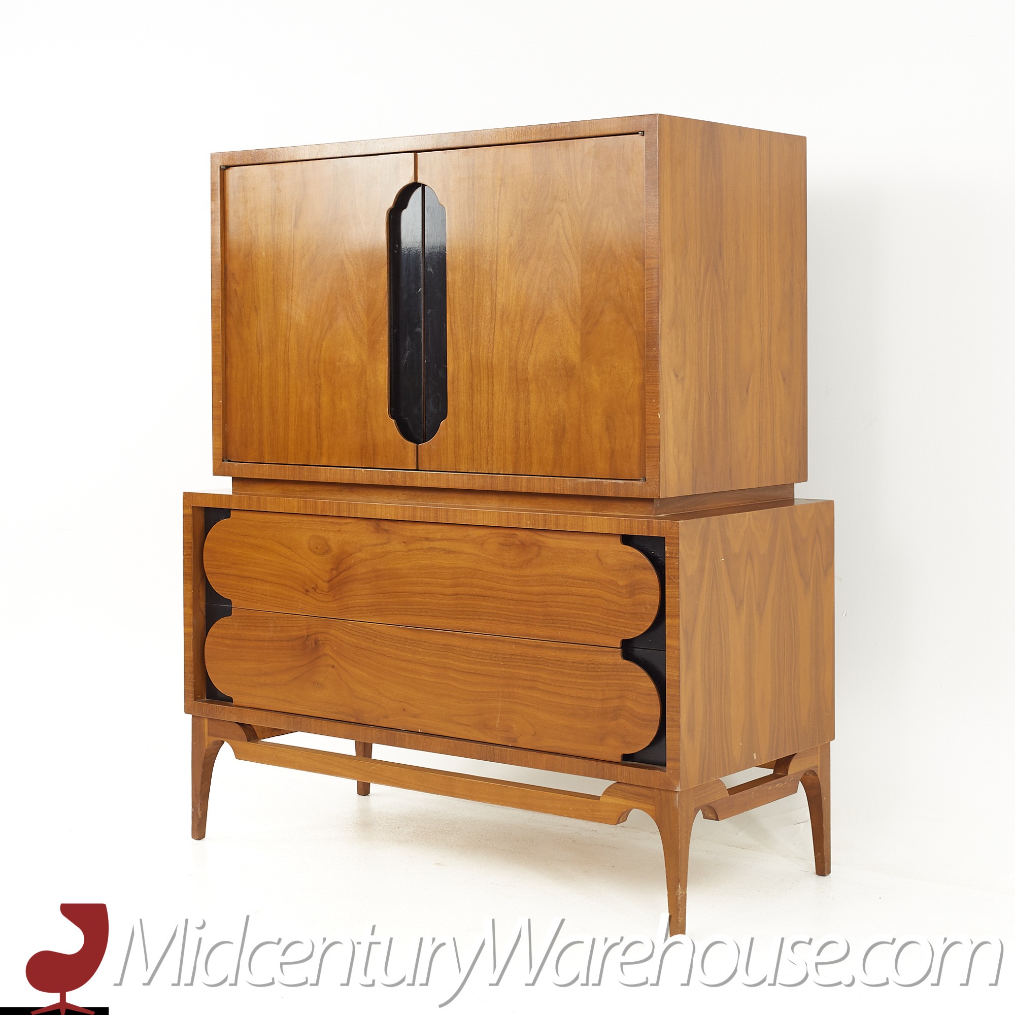 John Kapel for Glenn of California Style Mid Century Walnut and Ebony Highboy Dresser