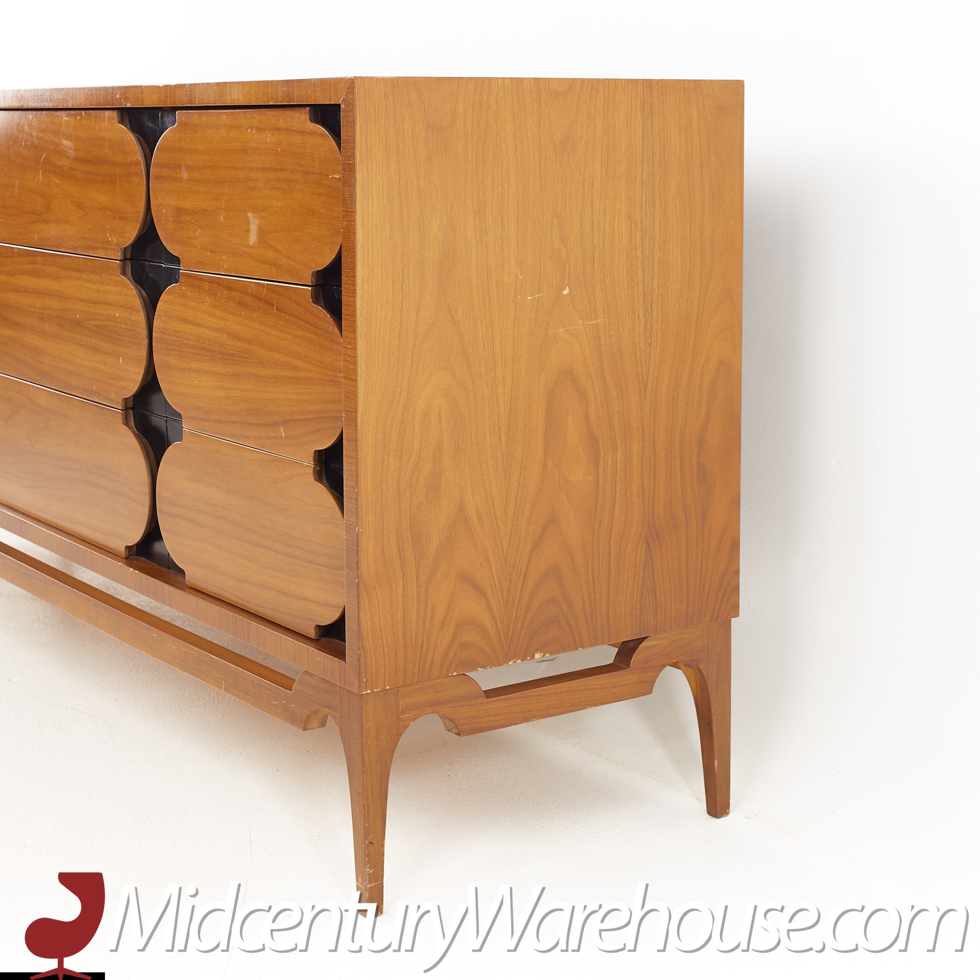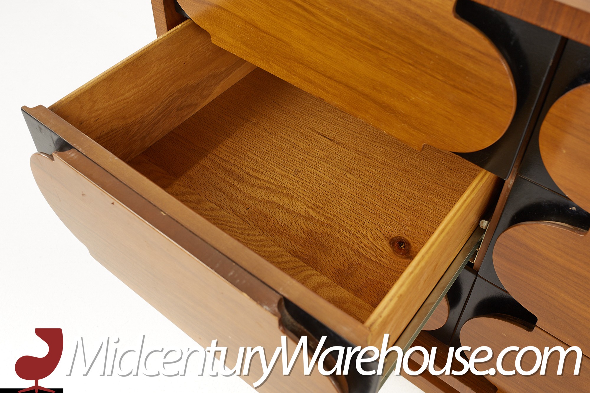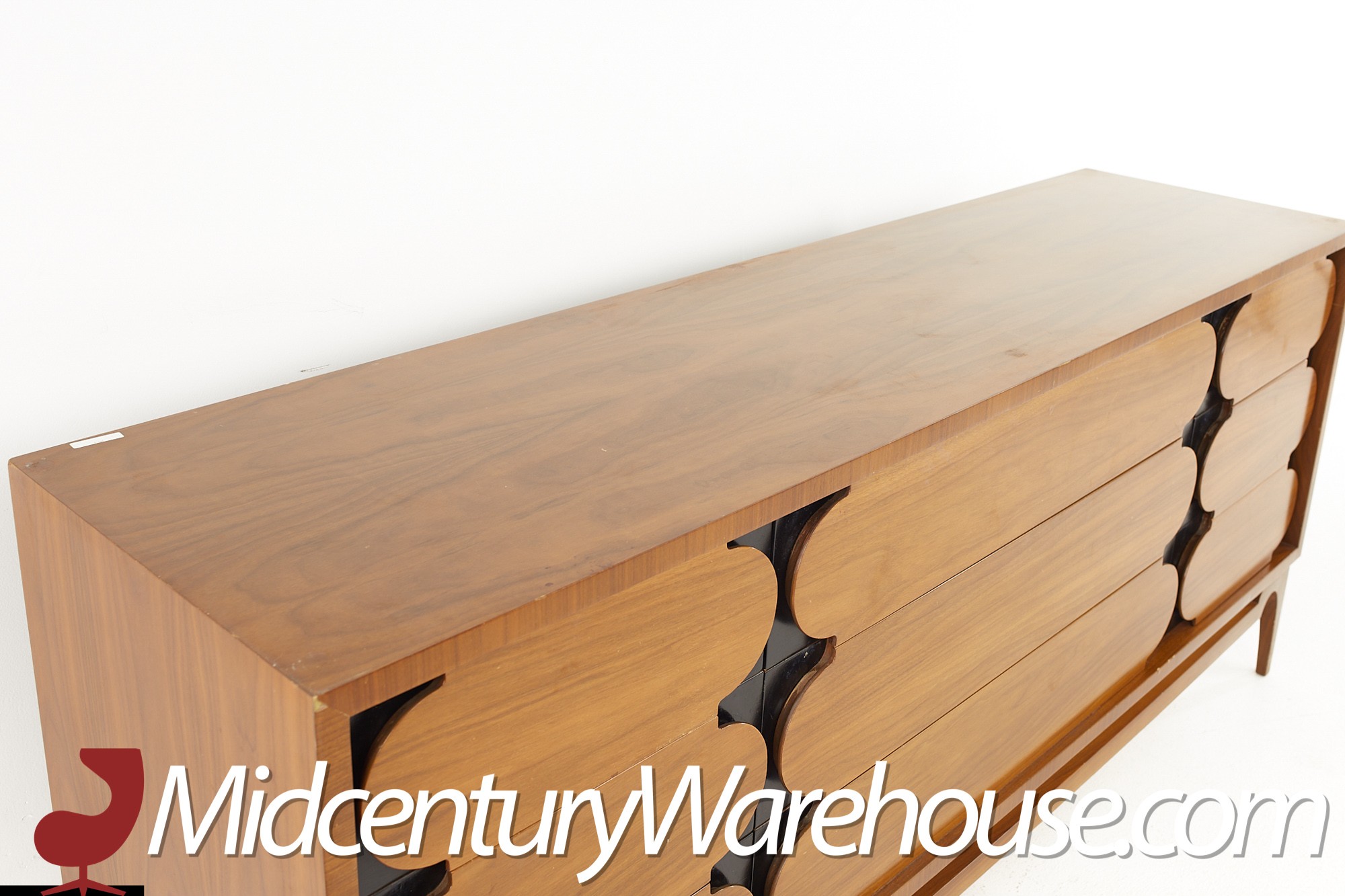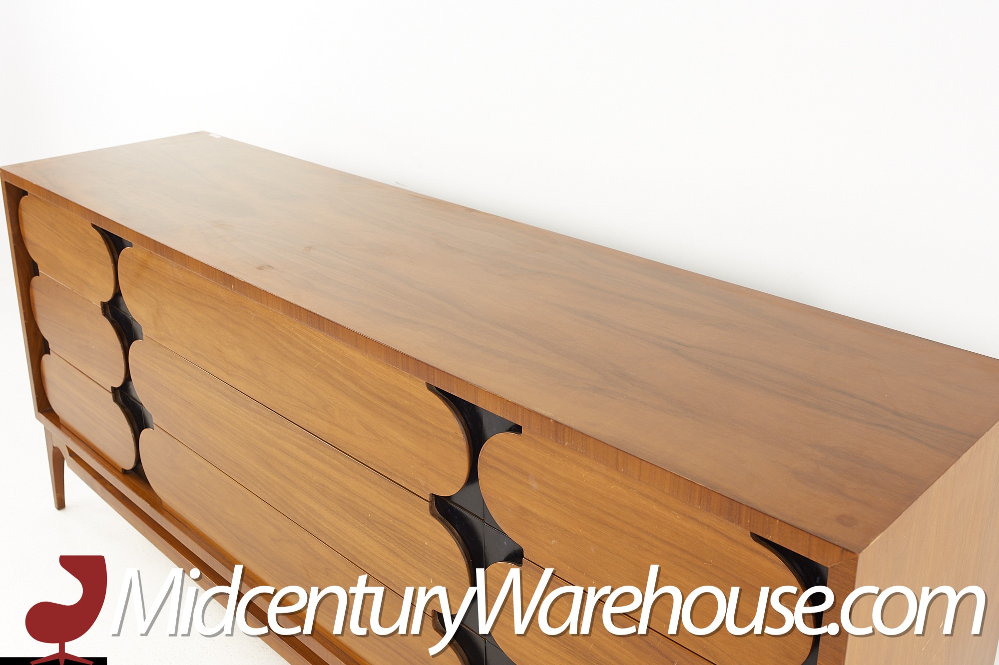 John Kapel for Glenn of California Style Mid Century Walnut and Ebony Lowboy Dresser