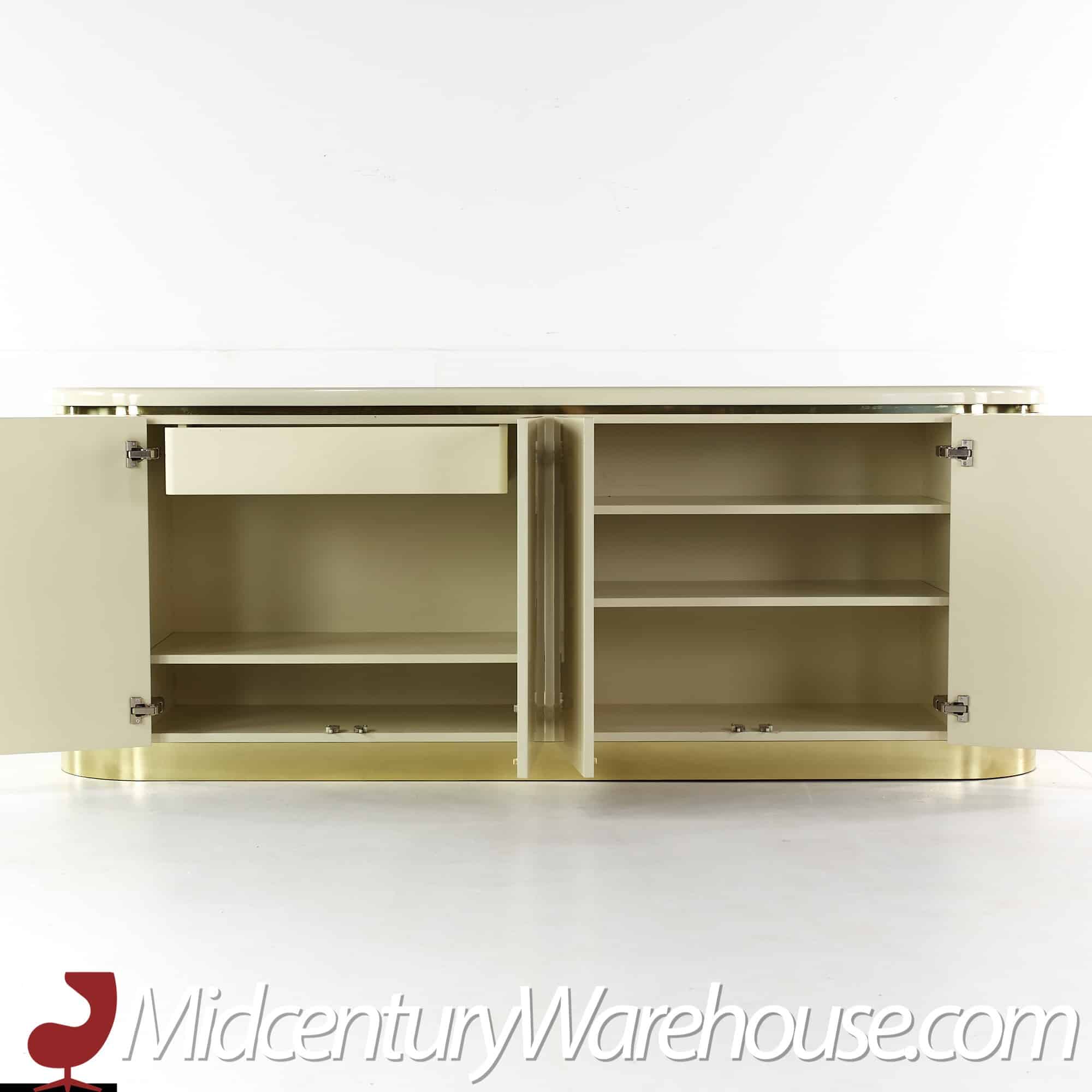 Karl Springer Style Mid Century Lacquer and Brass Credenza