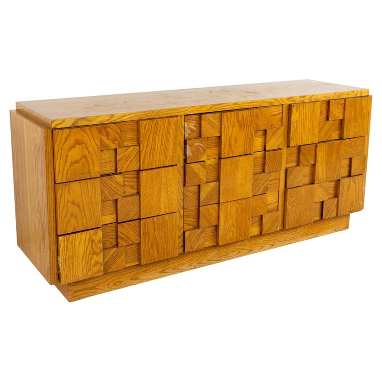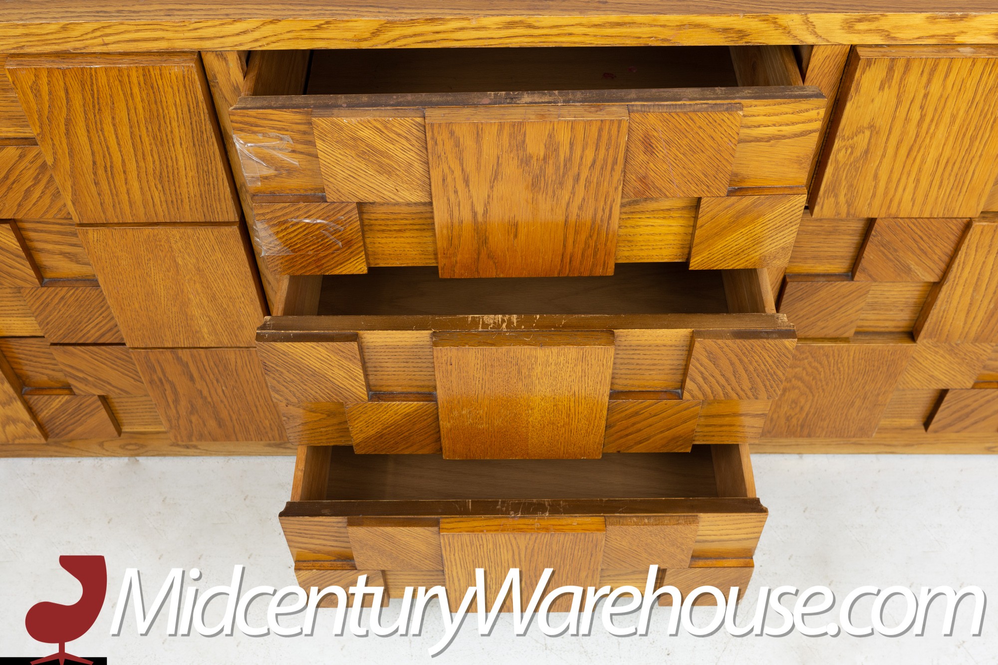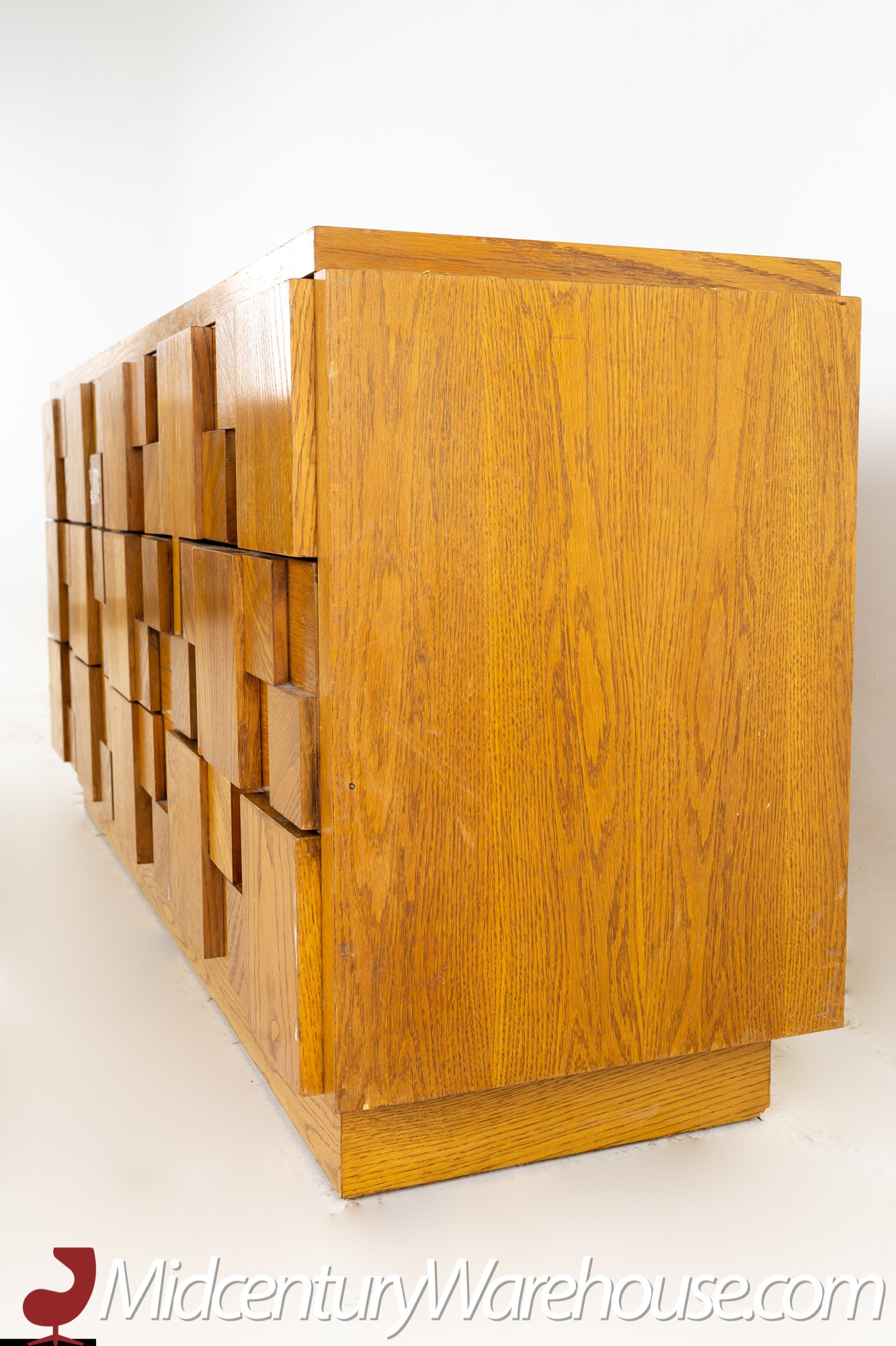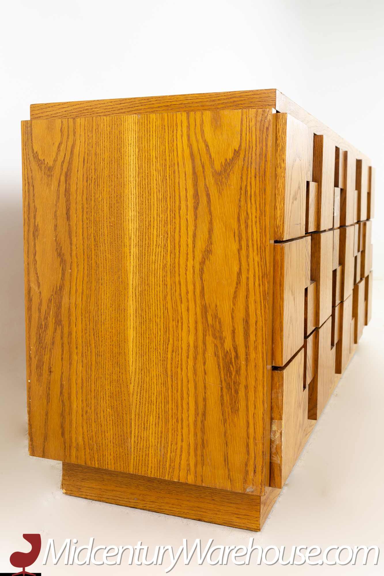 Lane Brutalist Mid Century Oak Lowboy Dresser