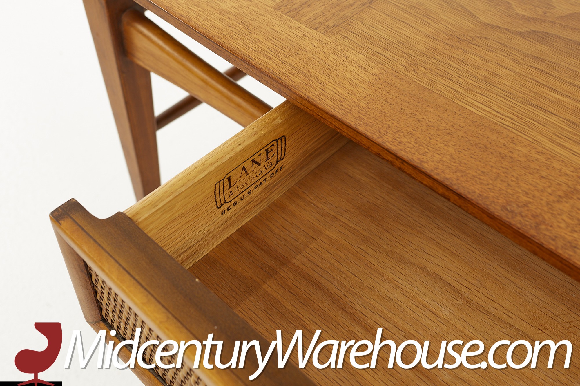 Lane Esteem Mid Century Walnut and Cane Front Inlaid Coffee Table