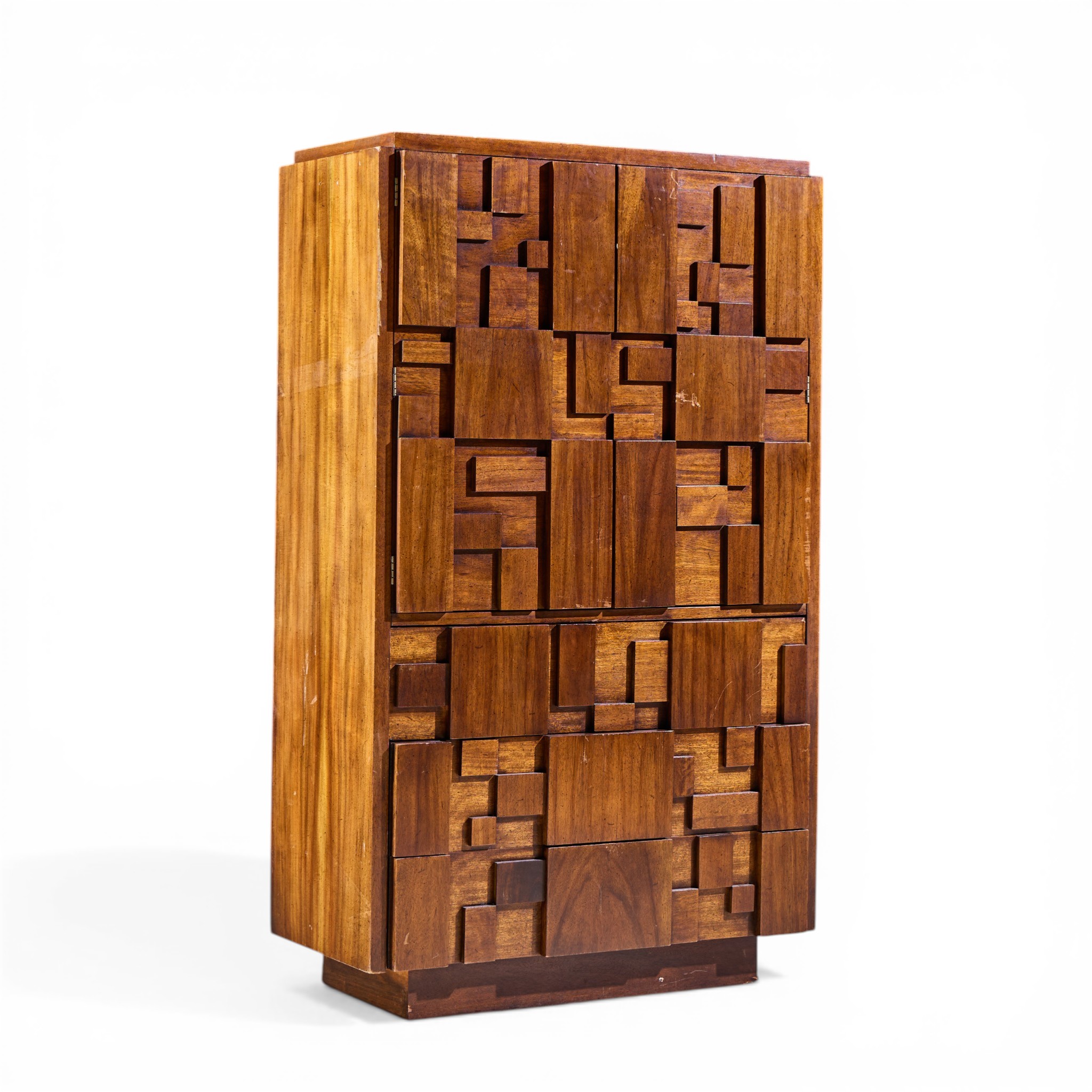 Lane Staccato Brutalist Mid Century Walnut Highboy Armoire Dresser