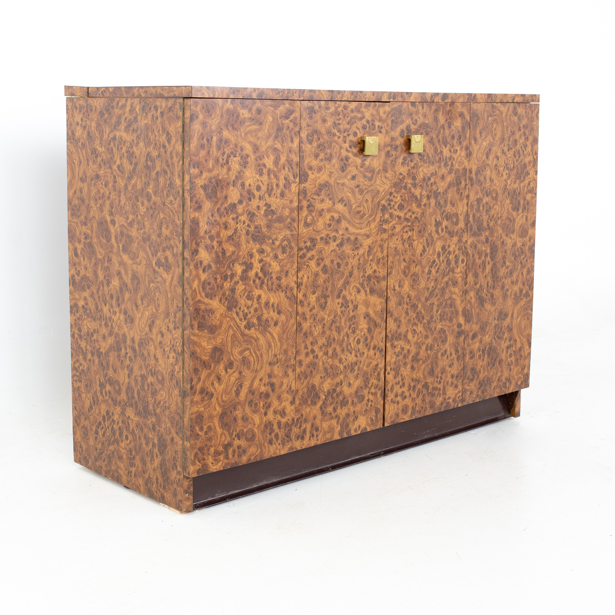 Mid Century Burlwood Laminate and Brass Bar Record Credenza