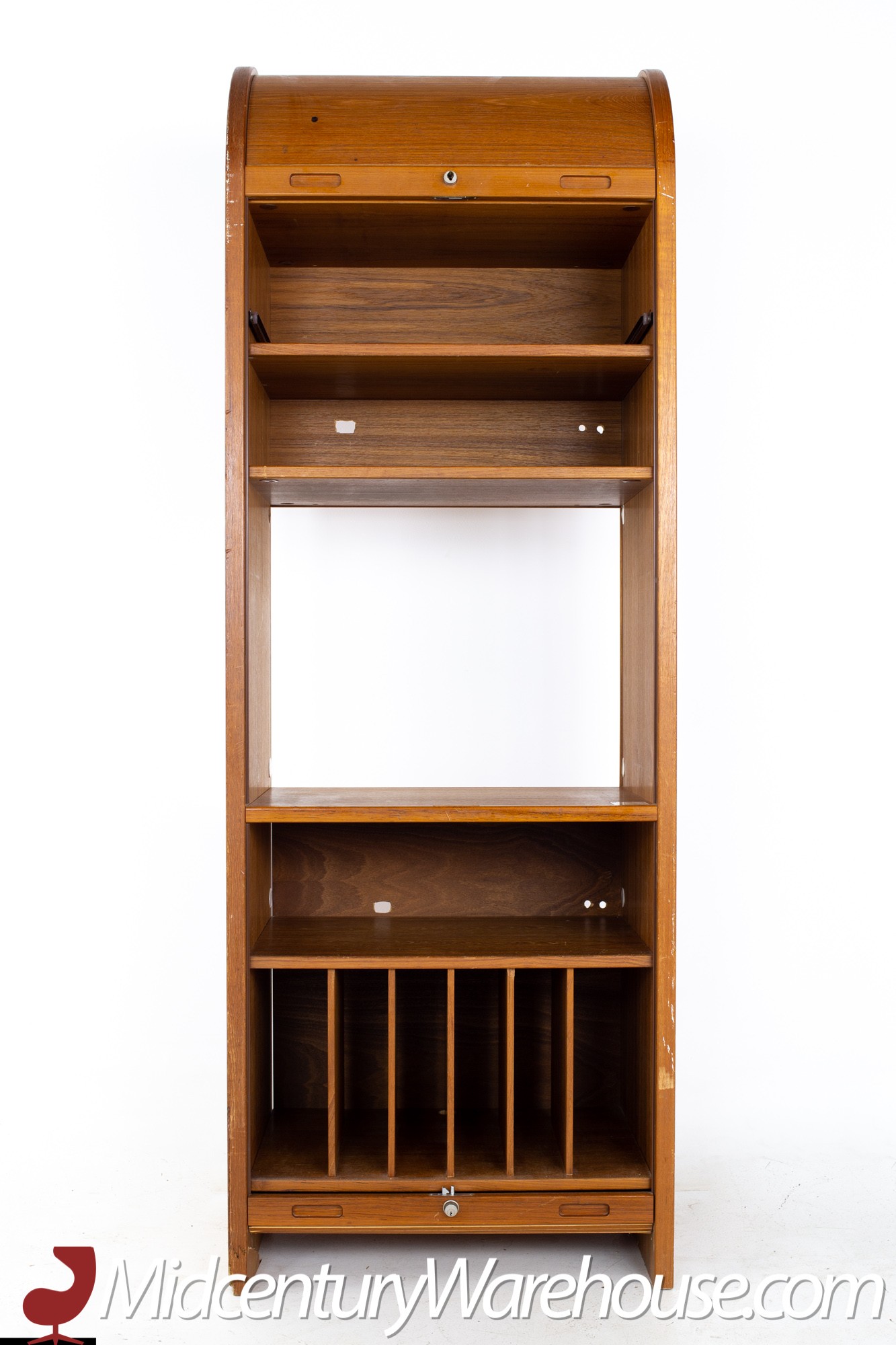 Mid Century Teak Tambour Door Upright Storage Credenza