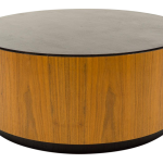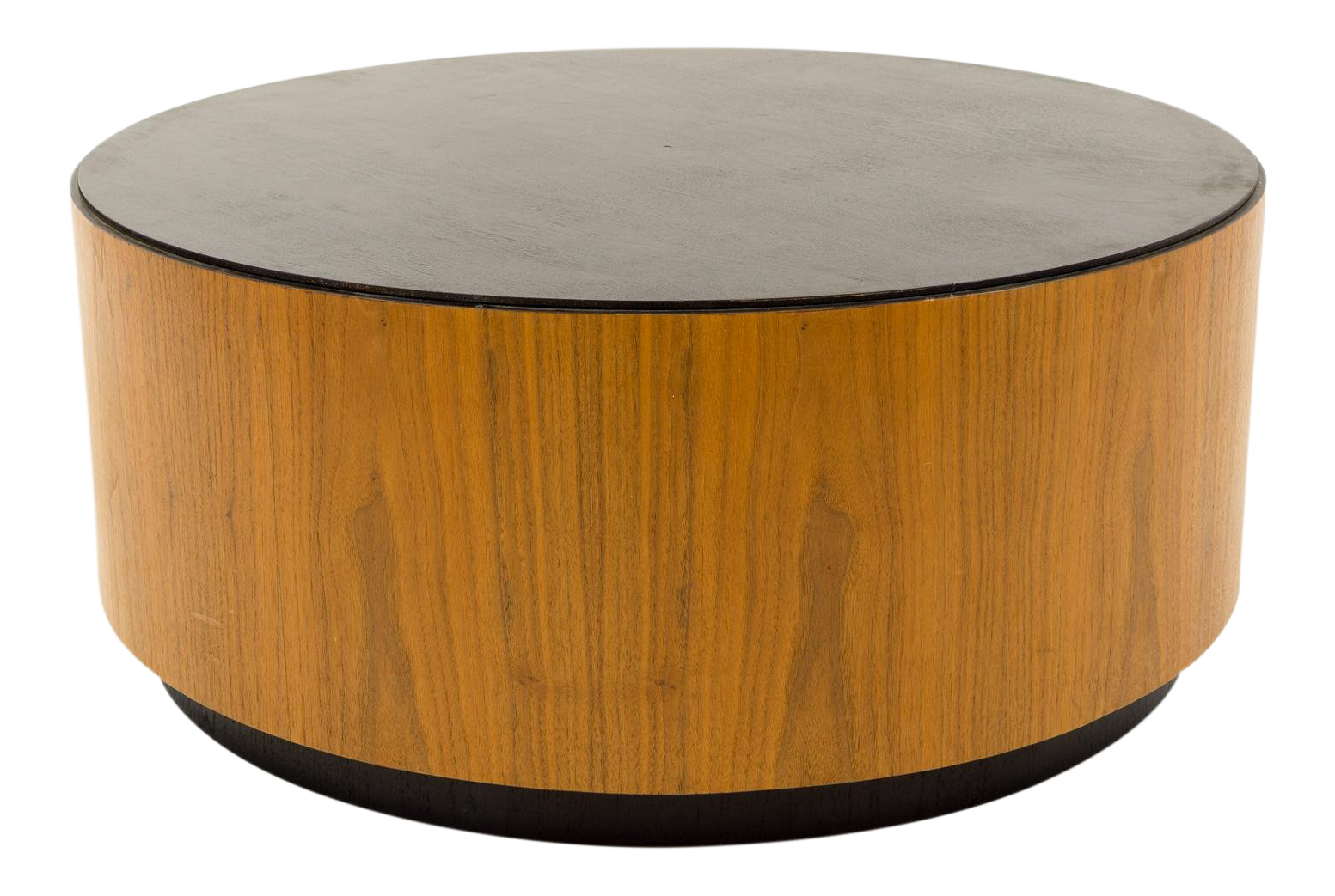 Mid Century Walnut Large Drum Barrel Round Coffee Table
