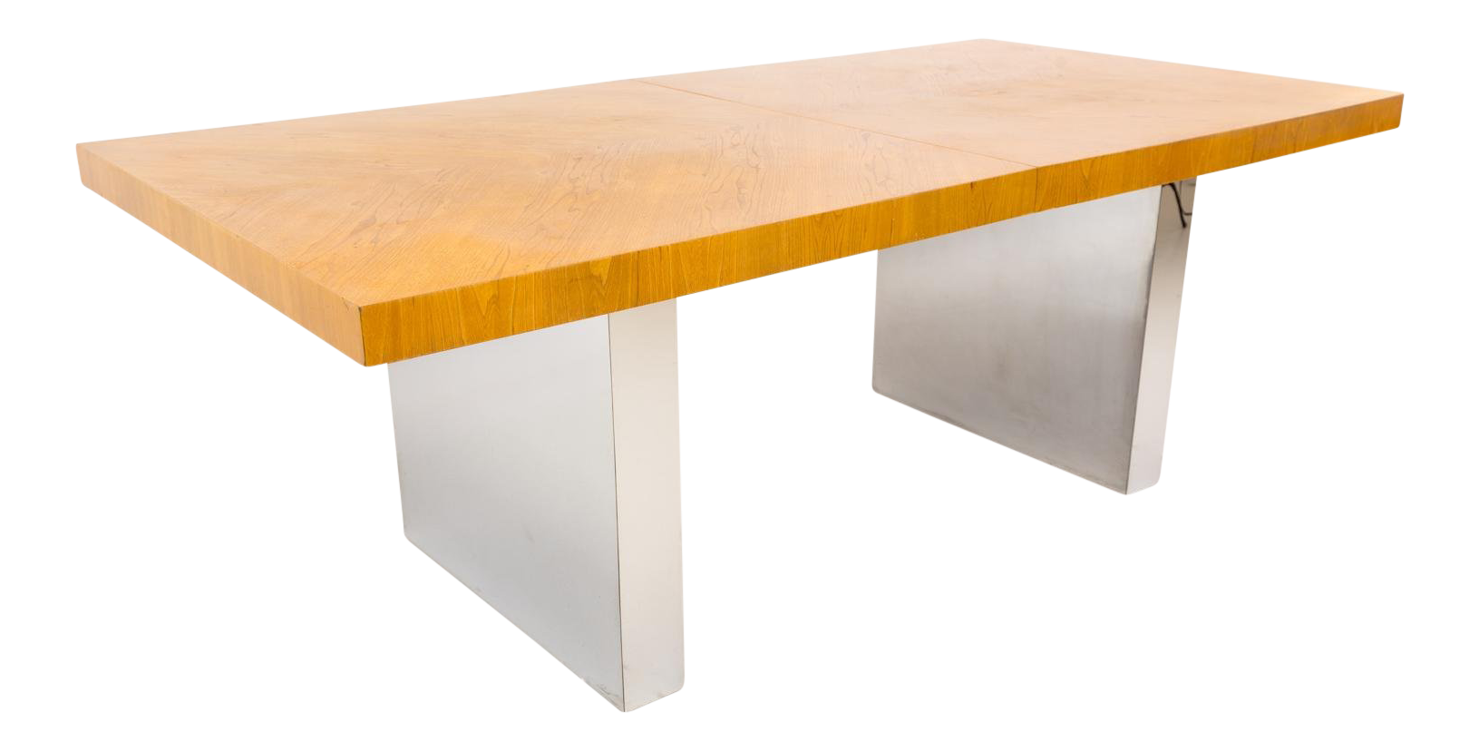 Milo Baughman for Thayer Coggin Extra Long Mid Century Modern Chrome Base Parquetry Dining Table
