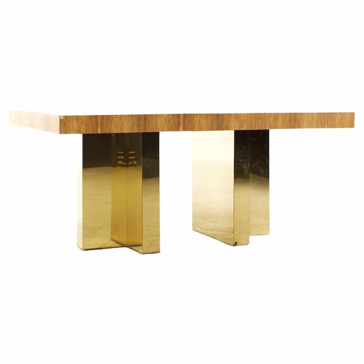 milo baughman for thayer coggin mid century brazilian rosewood and brass expanding dining table with 1 leaf