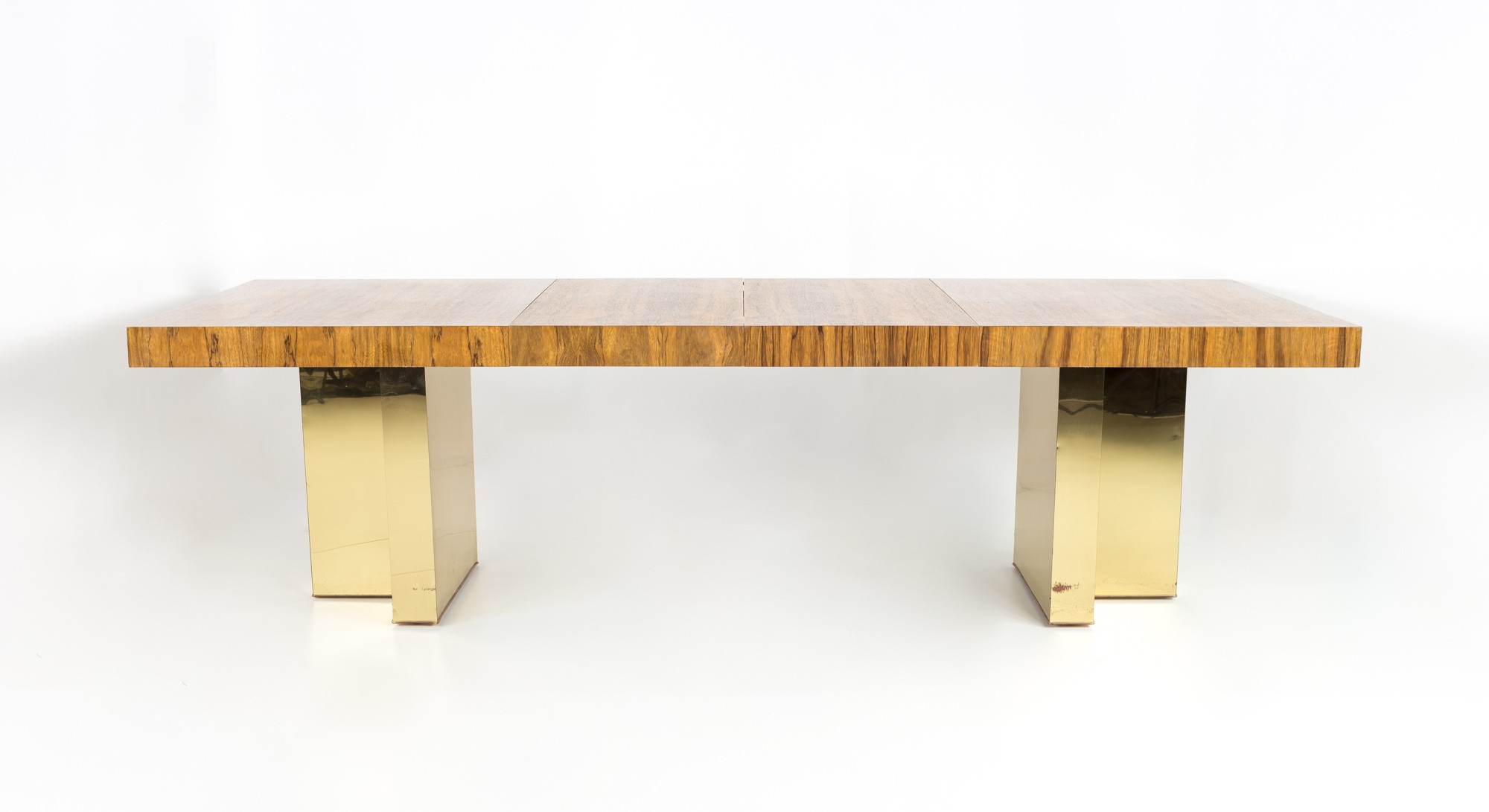 Milo Baughman for Thayer Coggin Mid Century Brazilian Rosewood and Brass Pedestal Dining Table