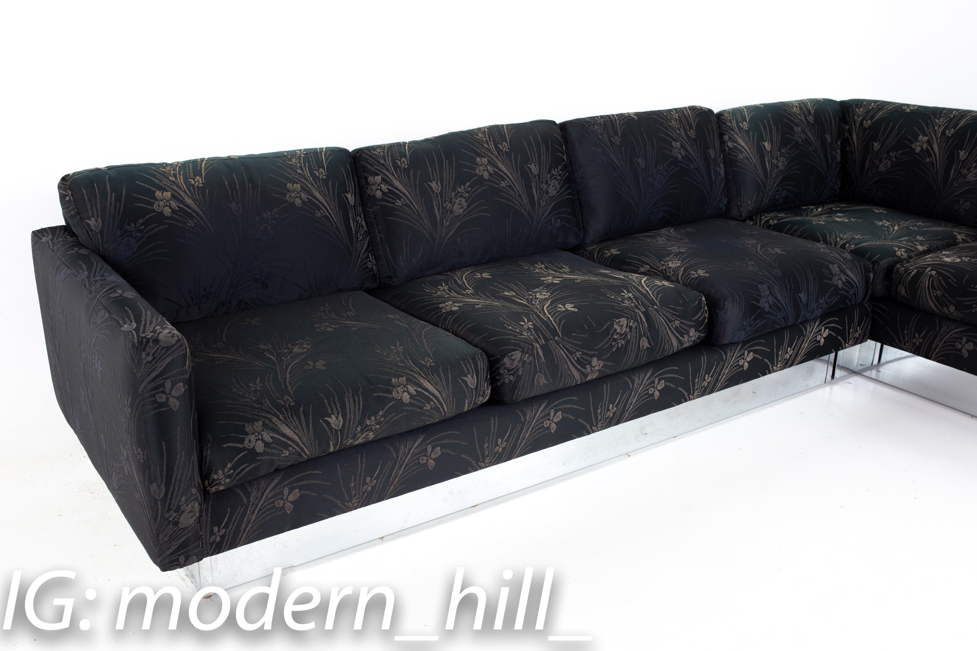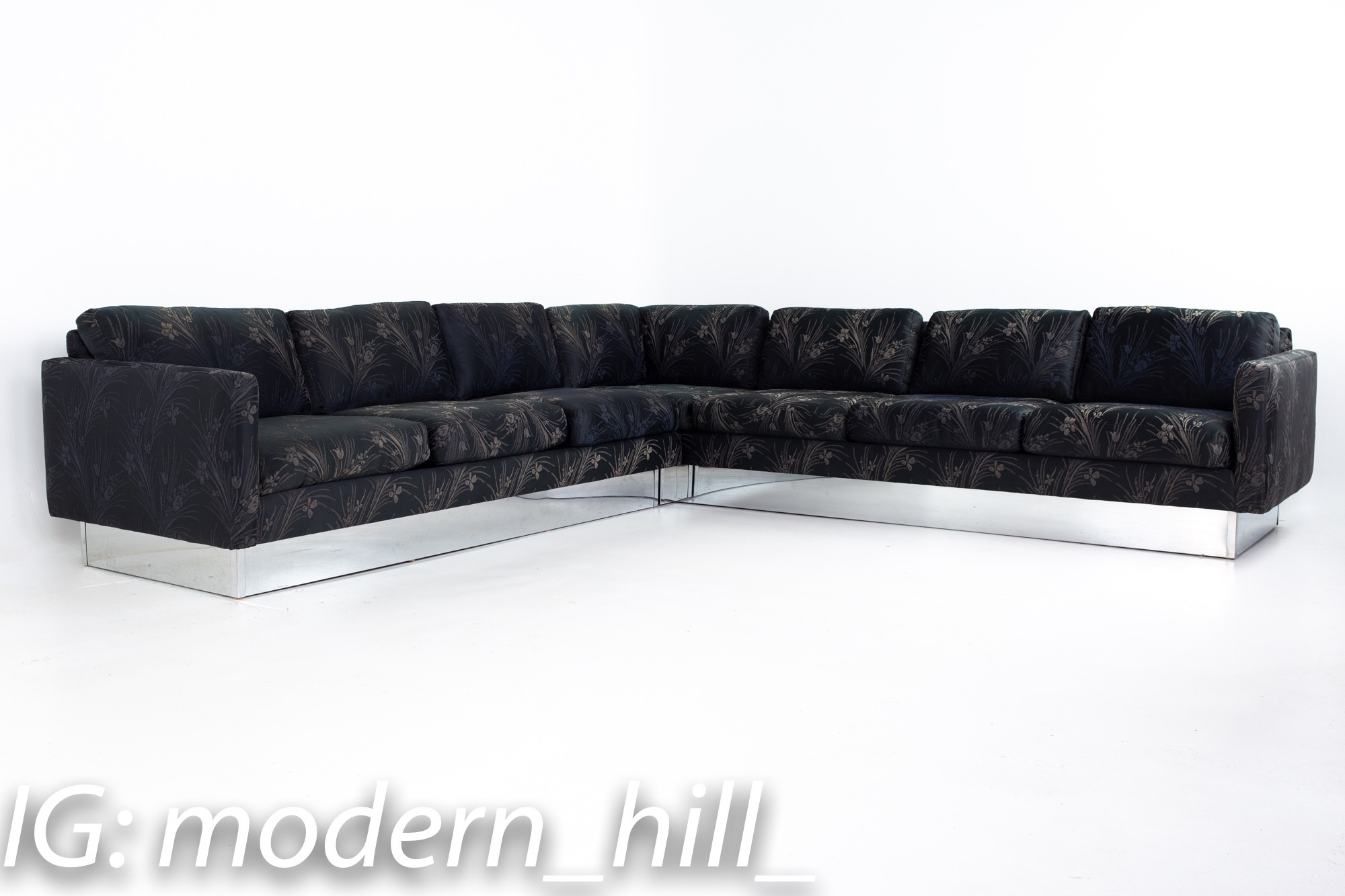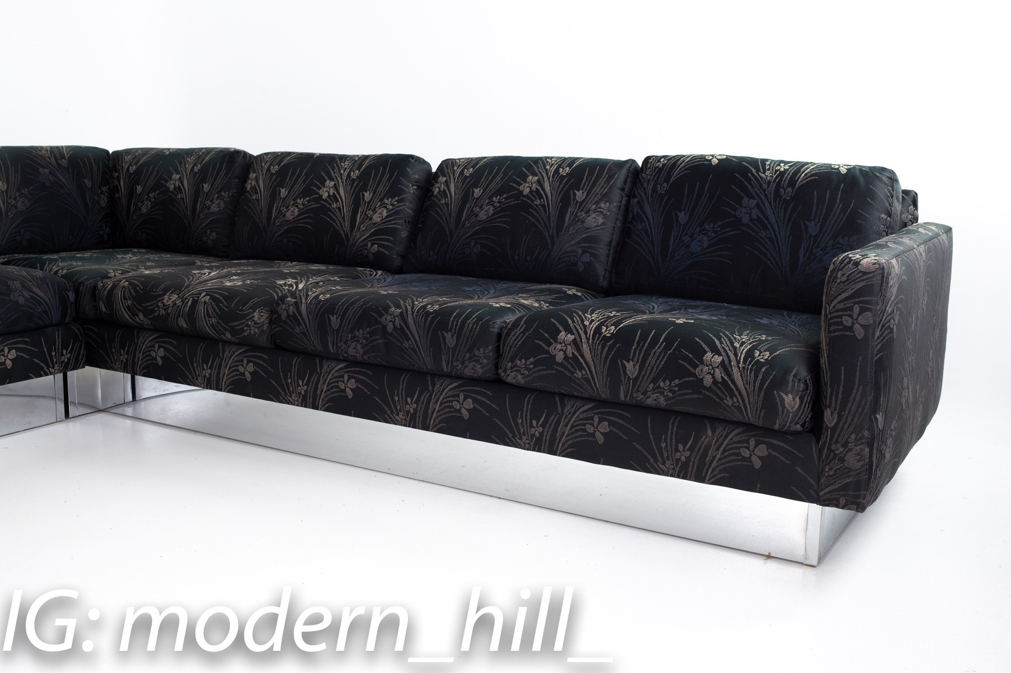 Milo Baughman Mid Century Chrome Base Sectional Sofa
