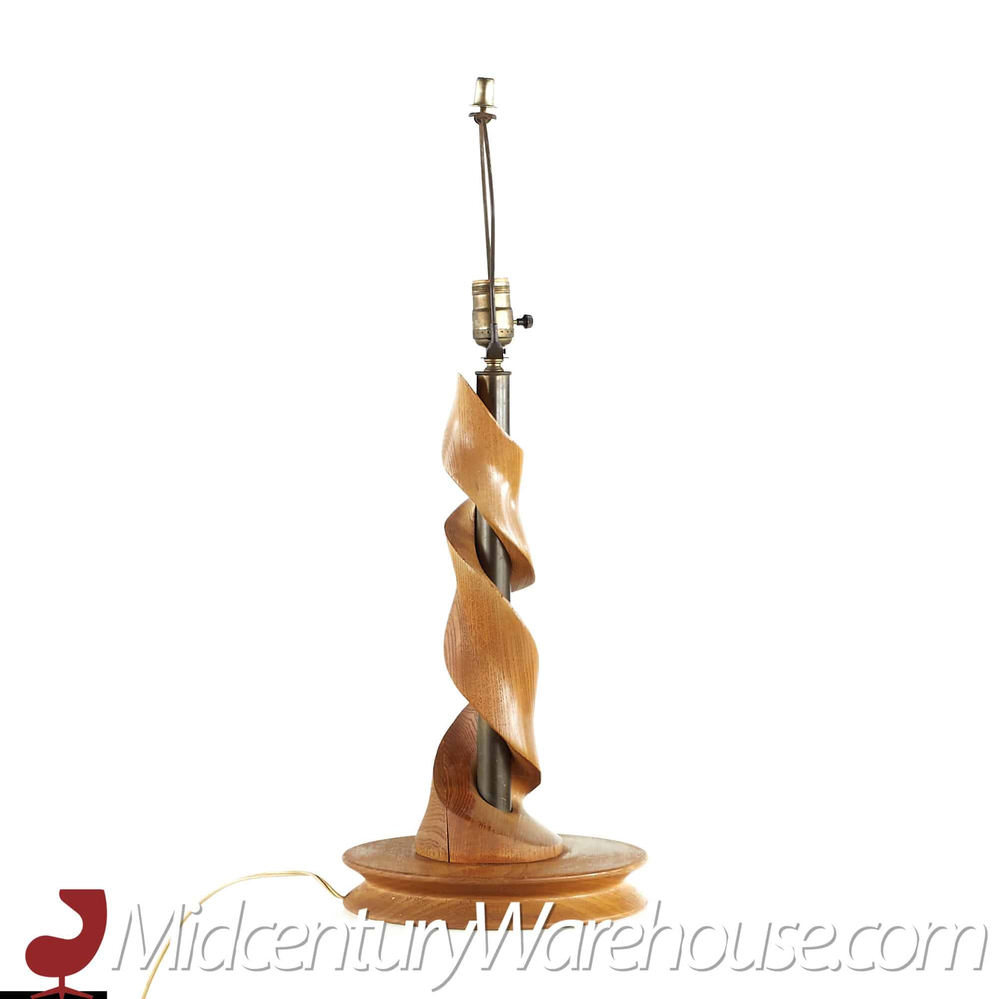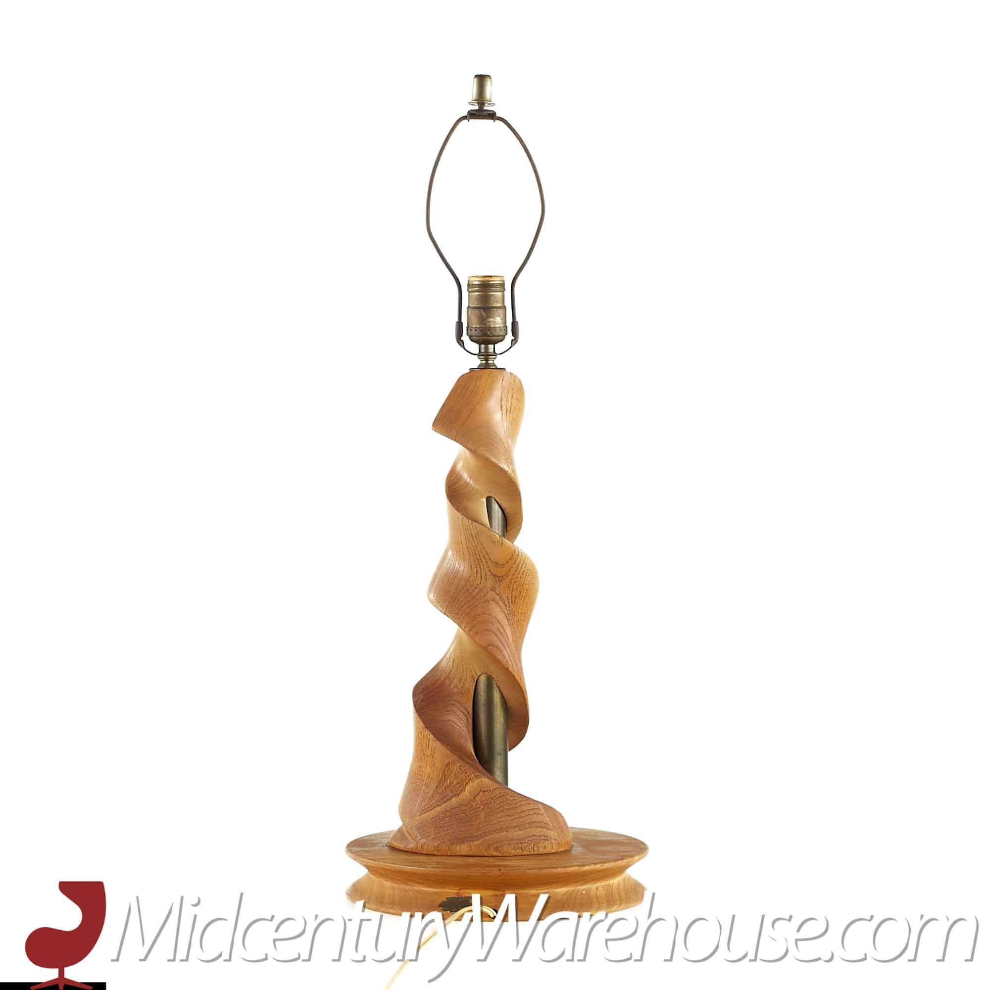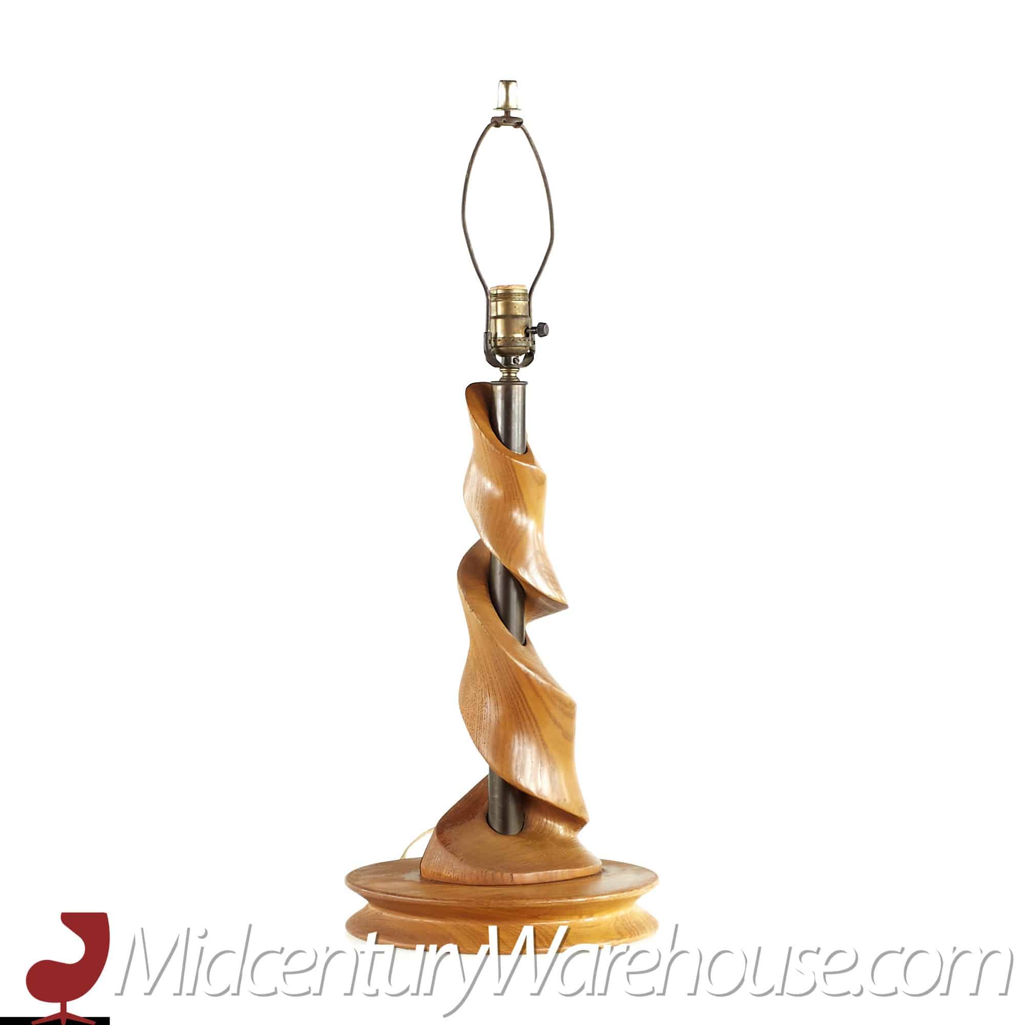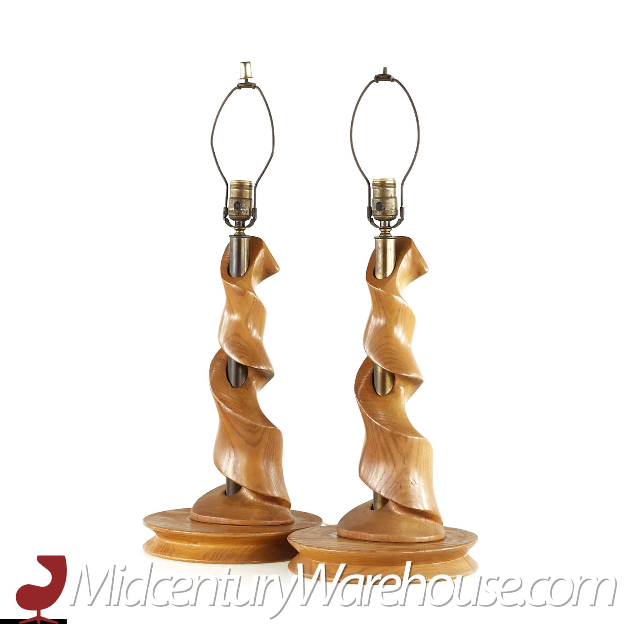 Modeline Style Sculptural Wood and Brass Lamps - Pair