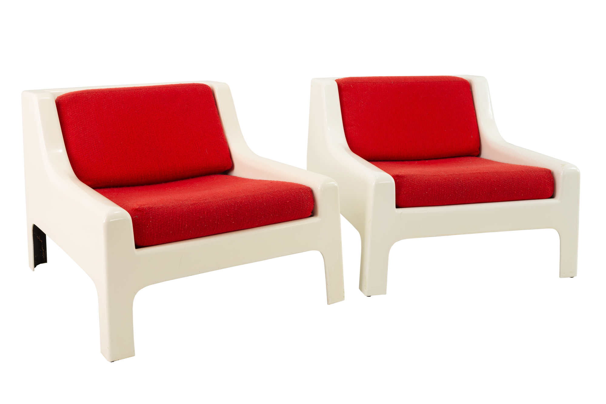 Moretti Mid Century White Fiberglass Lounge Chairs - Pair