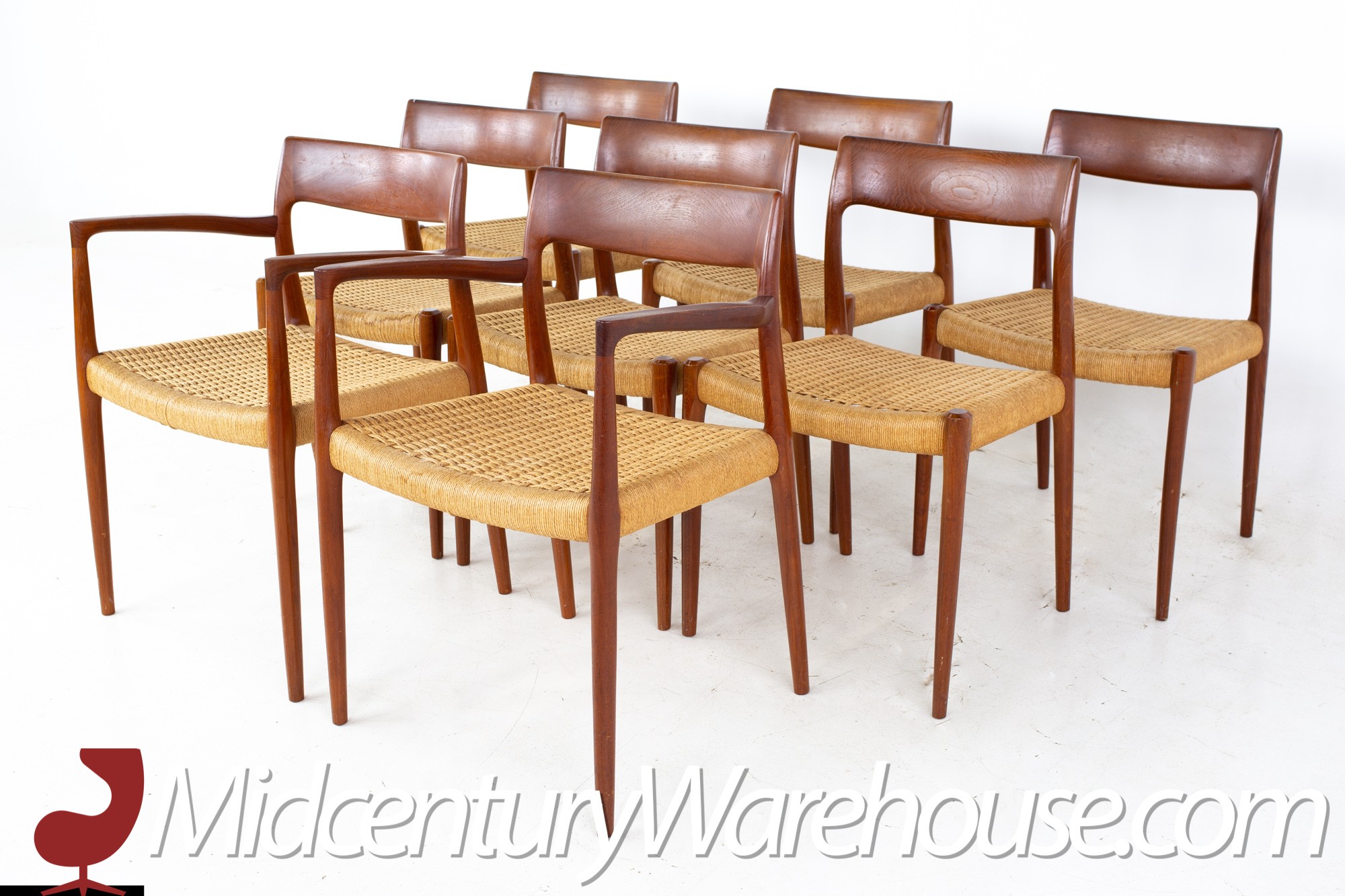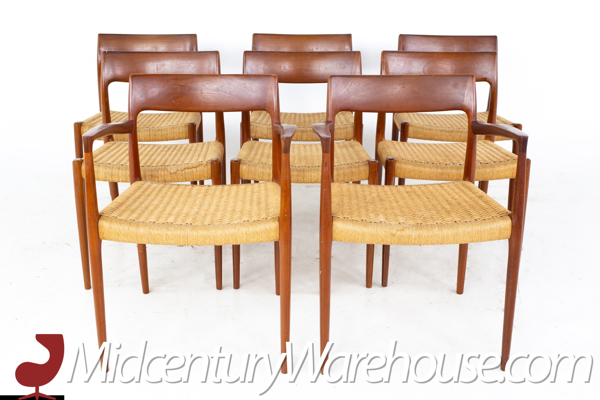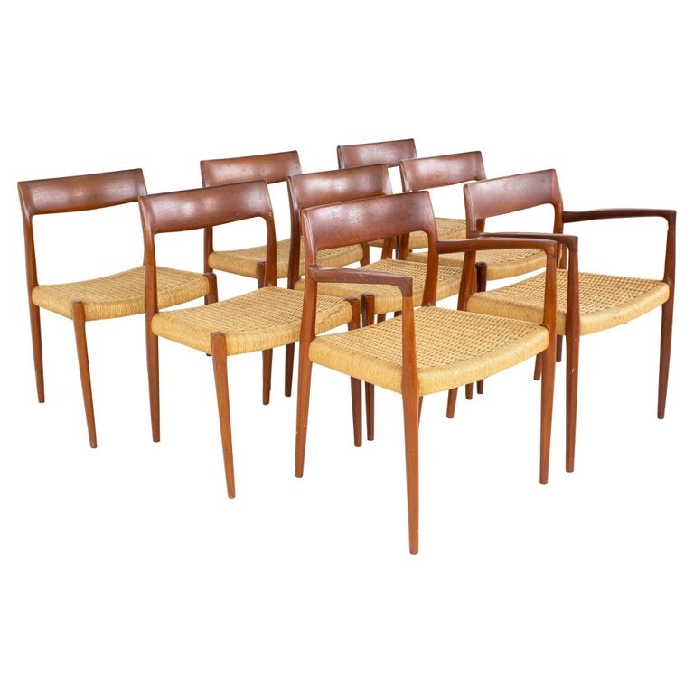 Niels Moller Model 77 Mid Century Teak Roped Dining Chairs - Set of 8