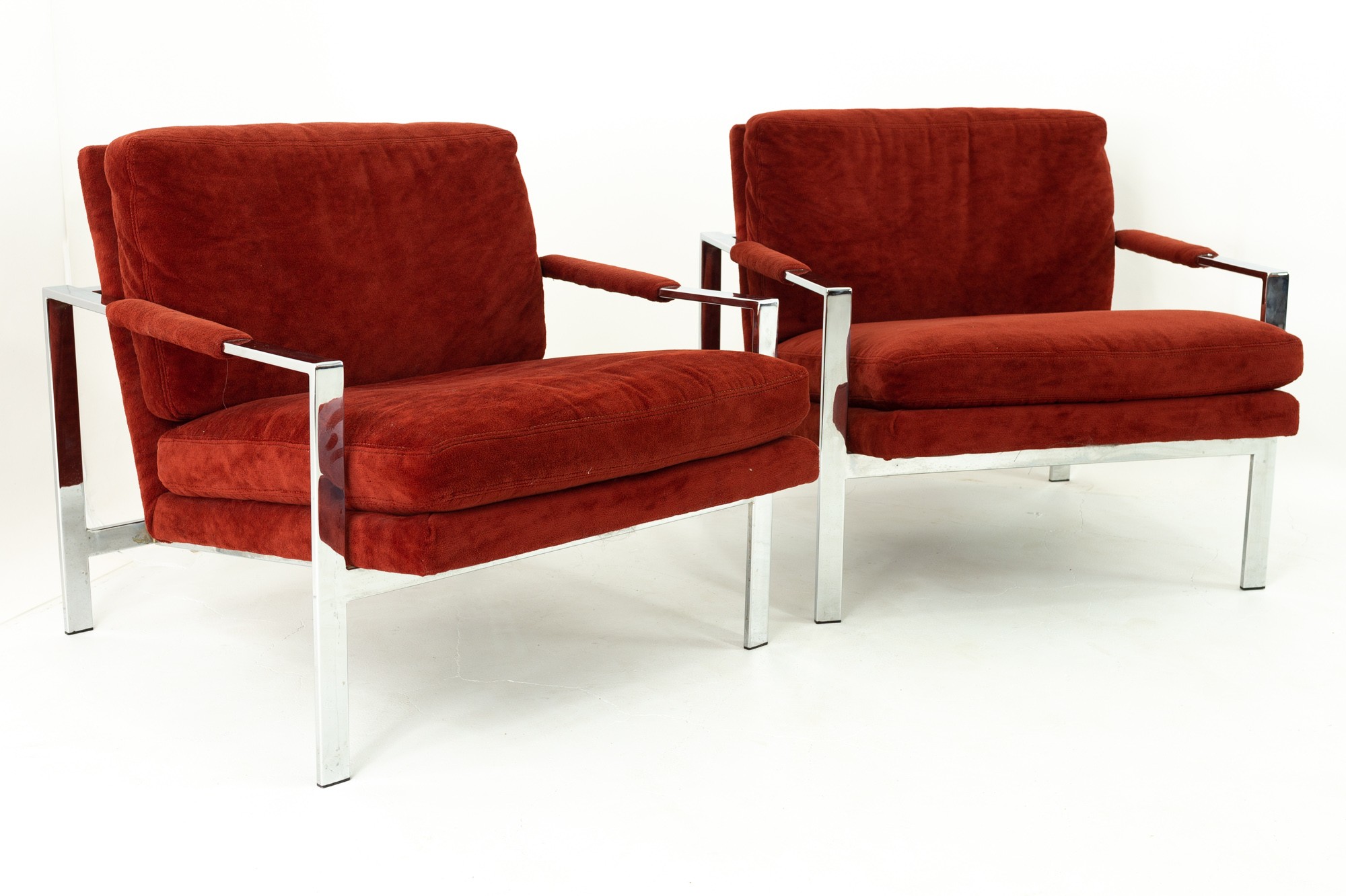Patrician Furniture Company Milo Baughman Style Mid Century Chrome Lounge Chairs - Pair