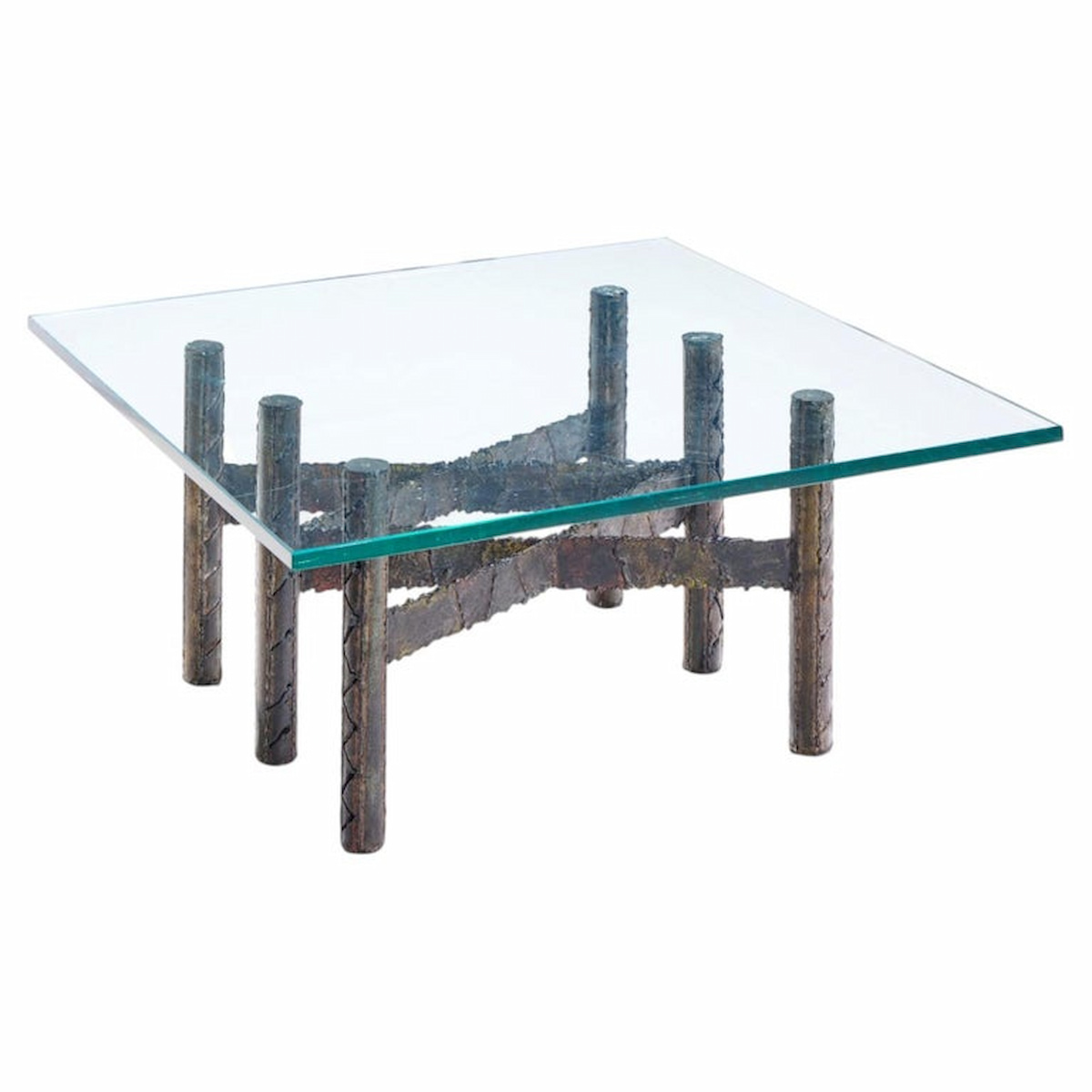 Paul Evans Brutalist Mid Century Patinated Steel and Bronze Coffee Table