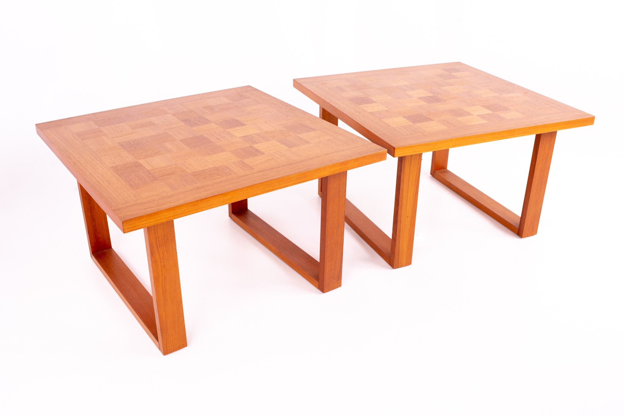 Poul Cadovius for Cado Danish Mid Century Teak Chess Board Side End Tables - Pair