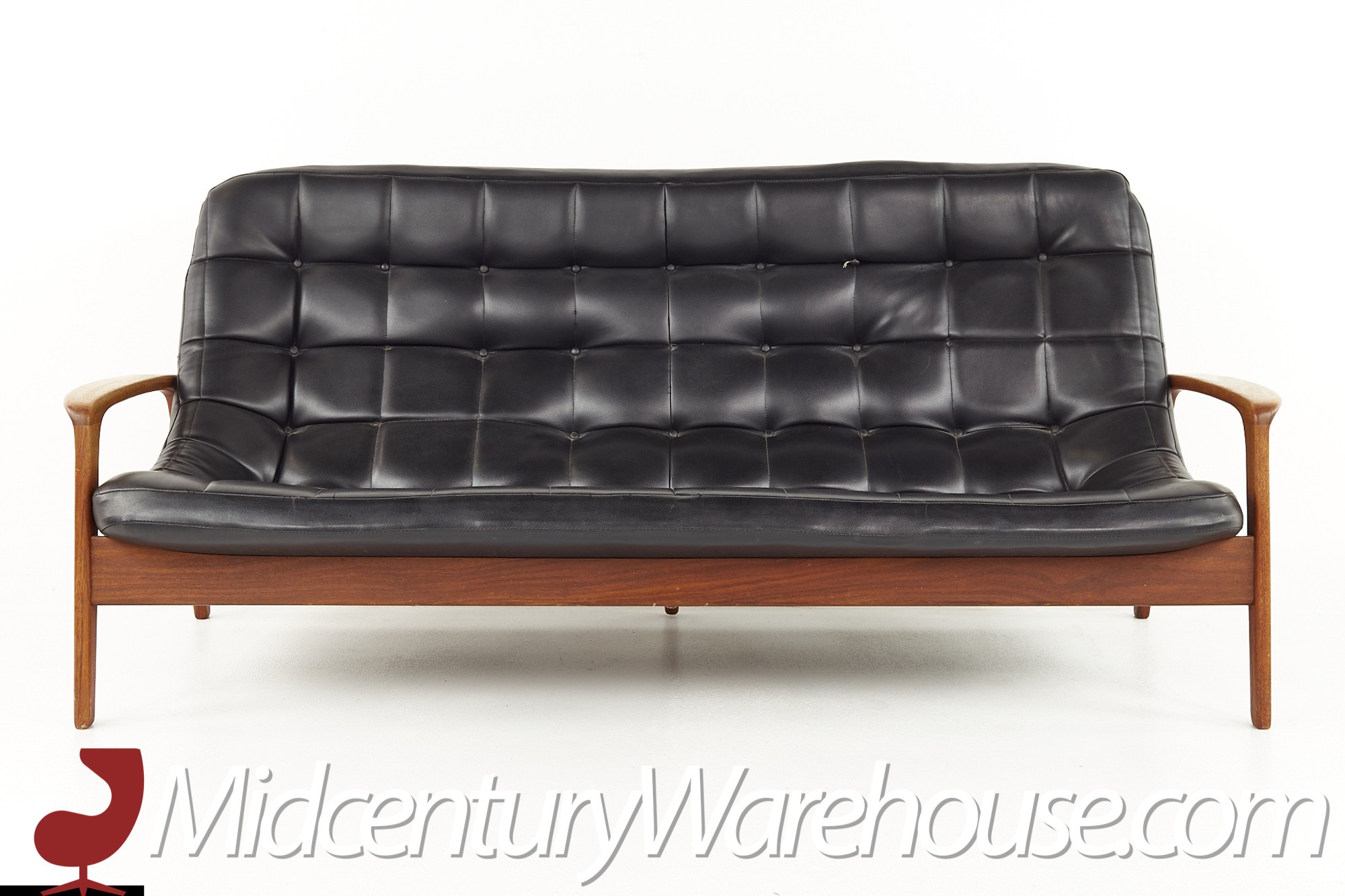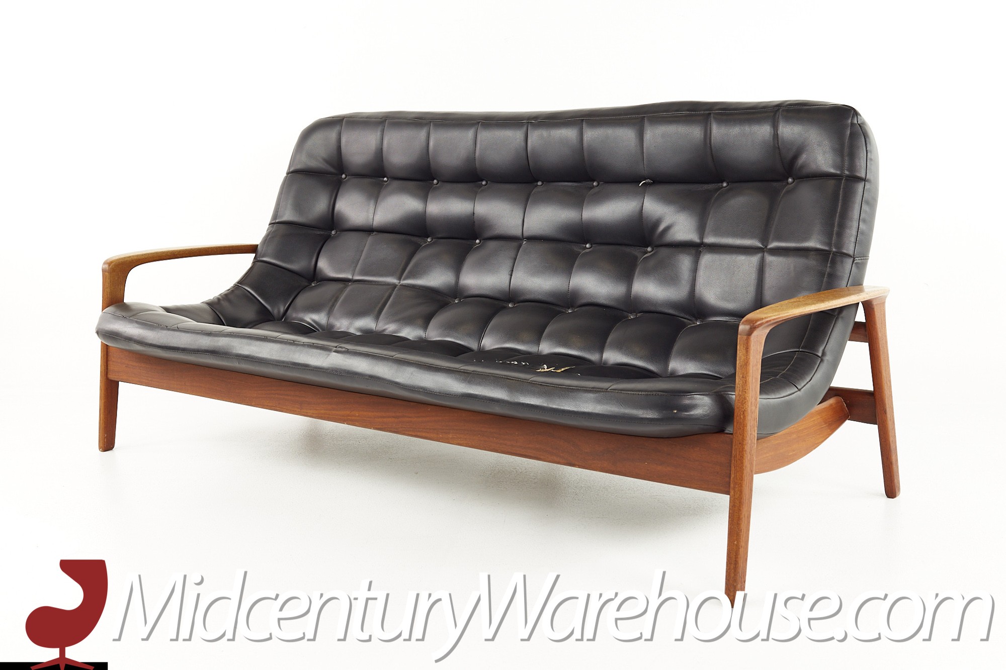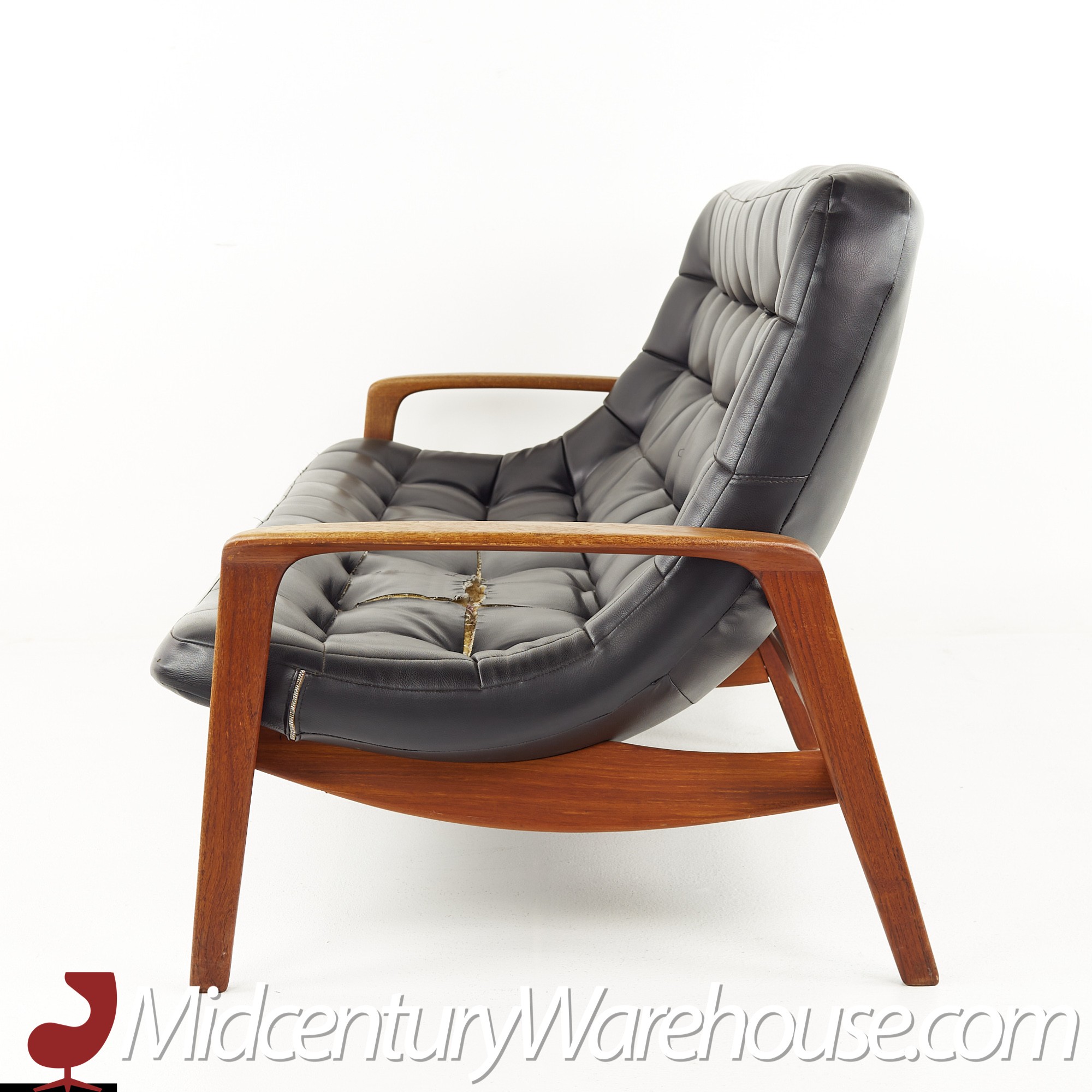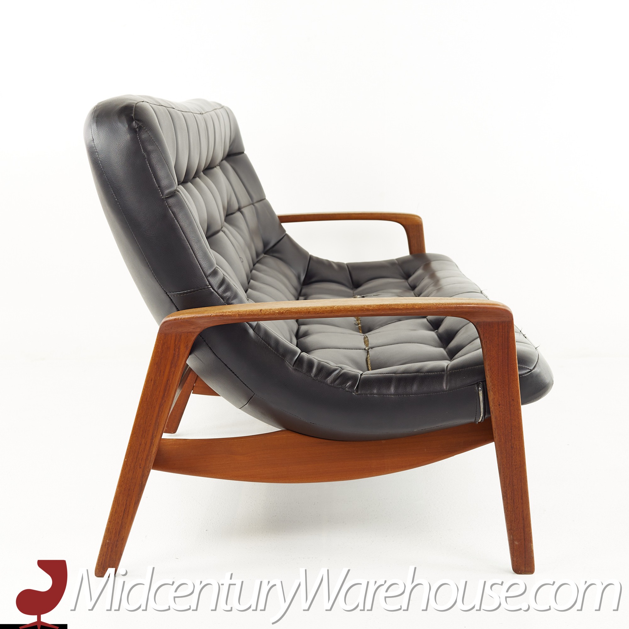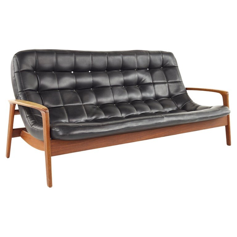 R Huber Mid Century Teak Tufted Scoop Sofa