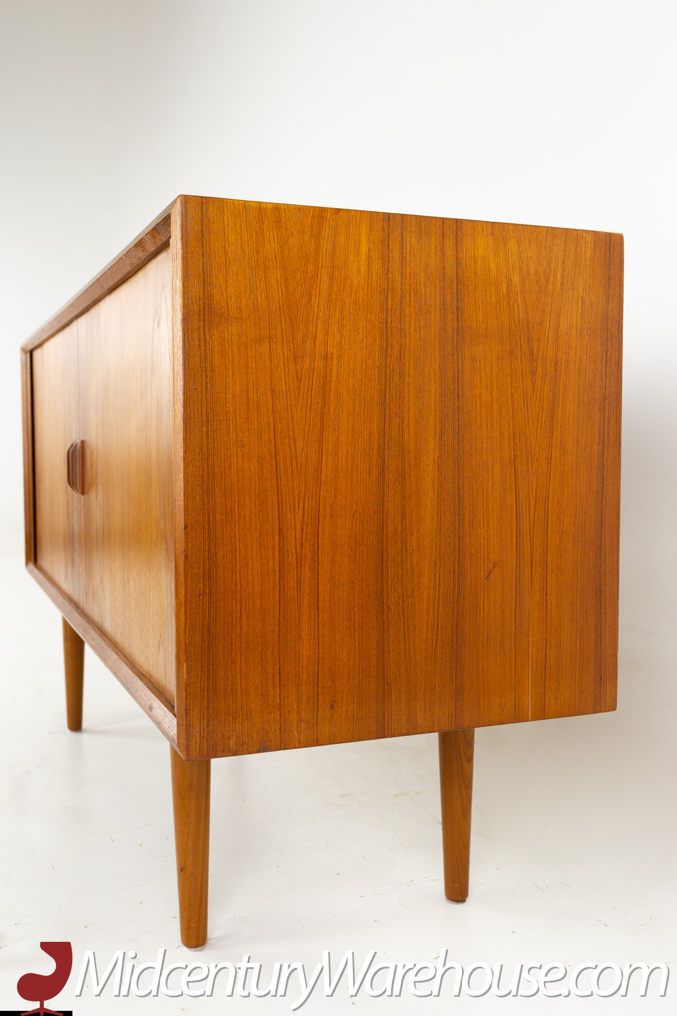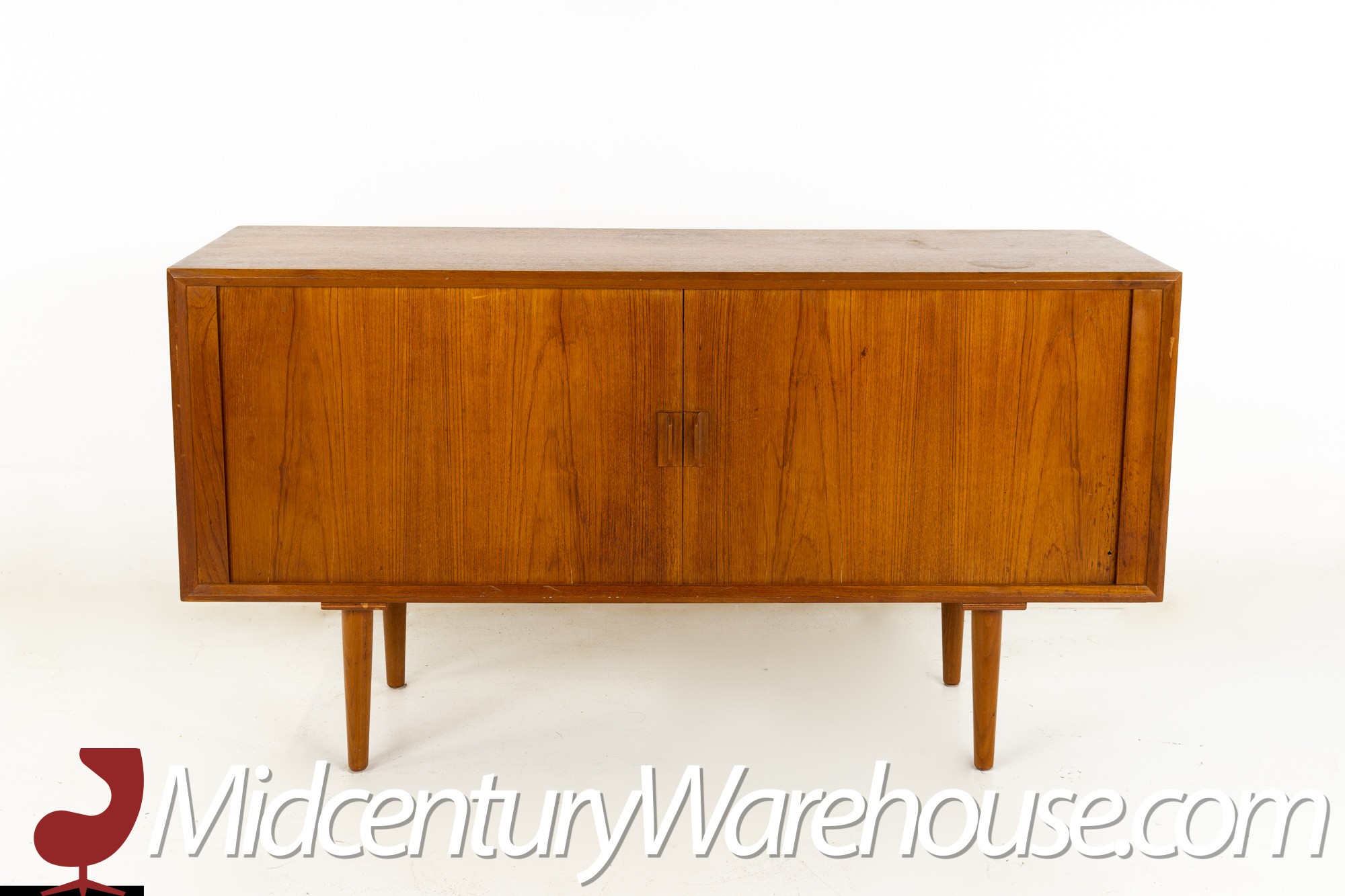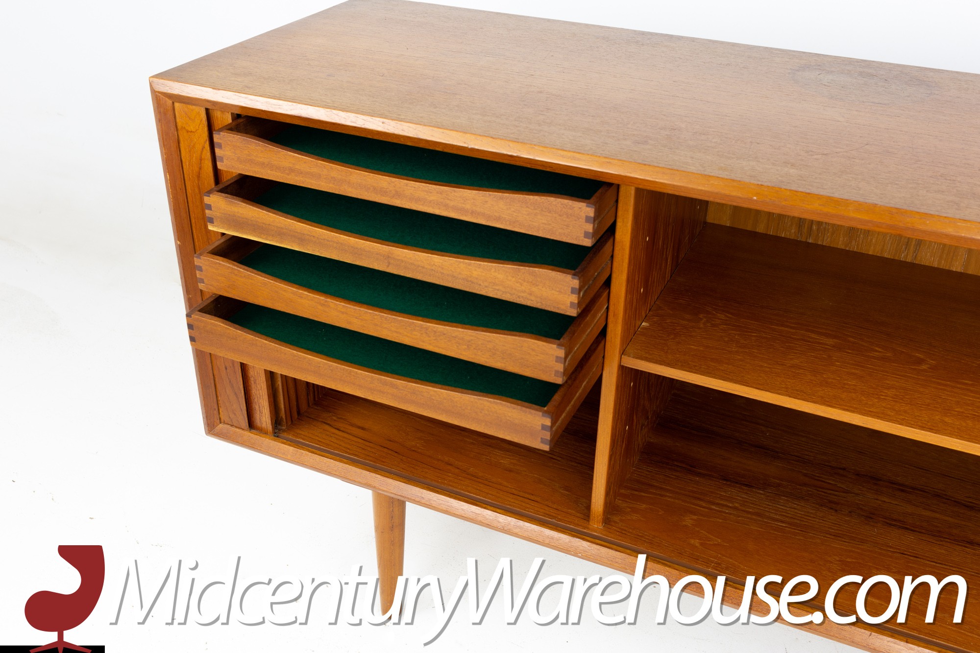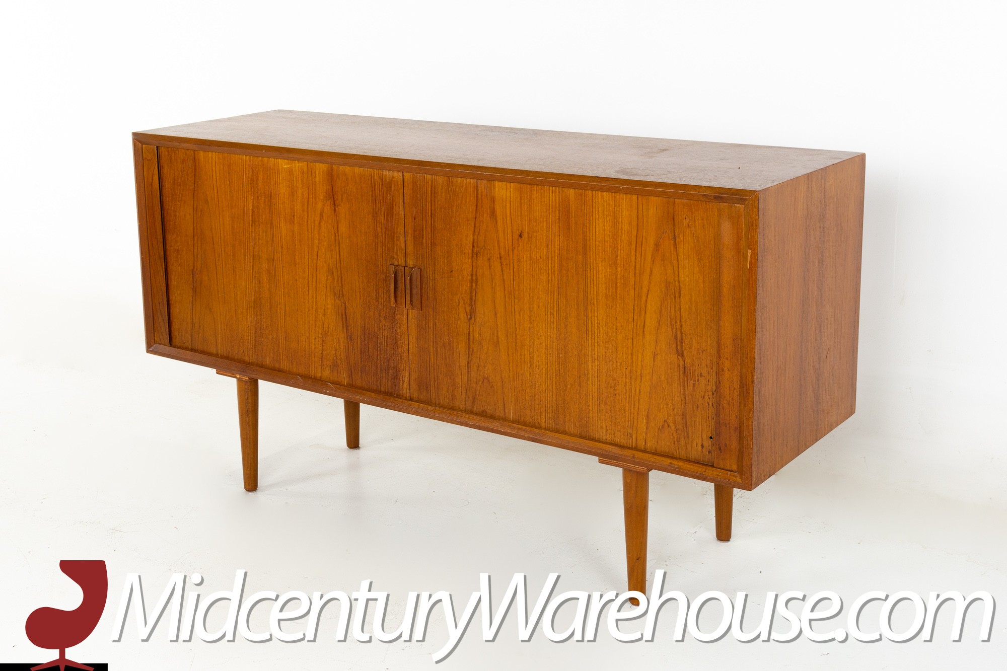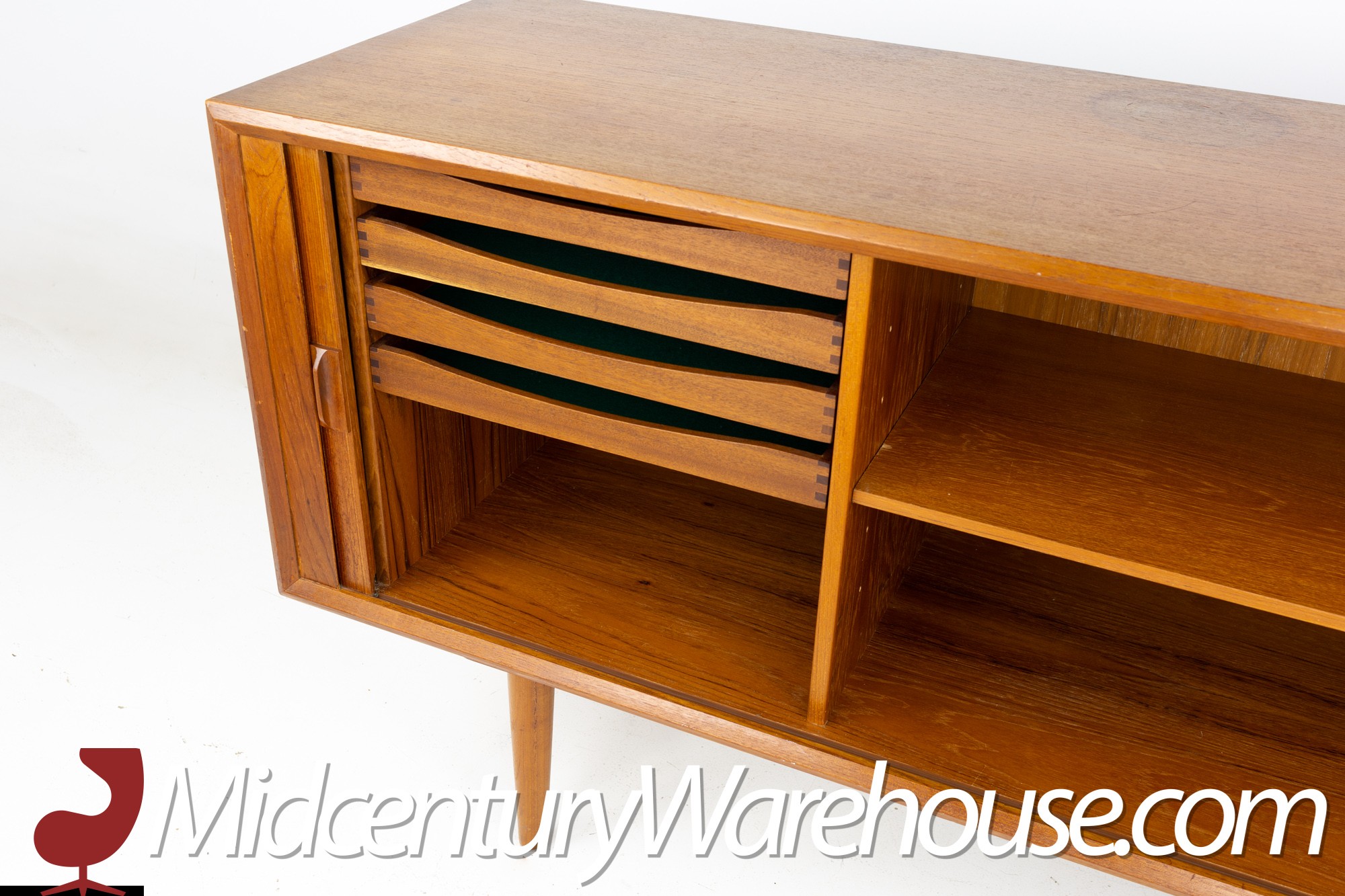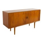 Svend Aage Larsen for Faarup Mobelfabrik Mid Century Danish Teak Tambour Door Petite Sideboard Credenza