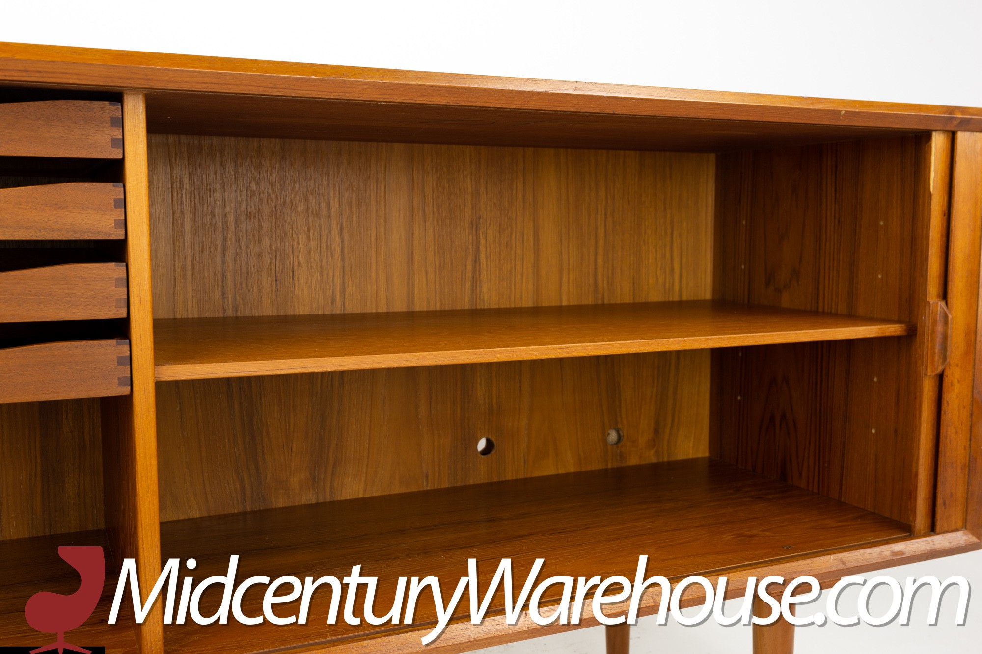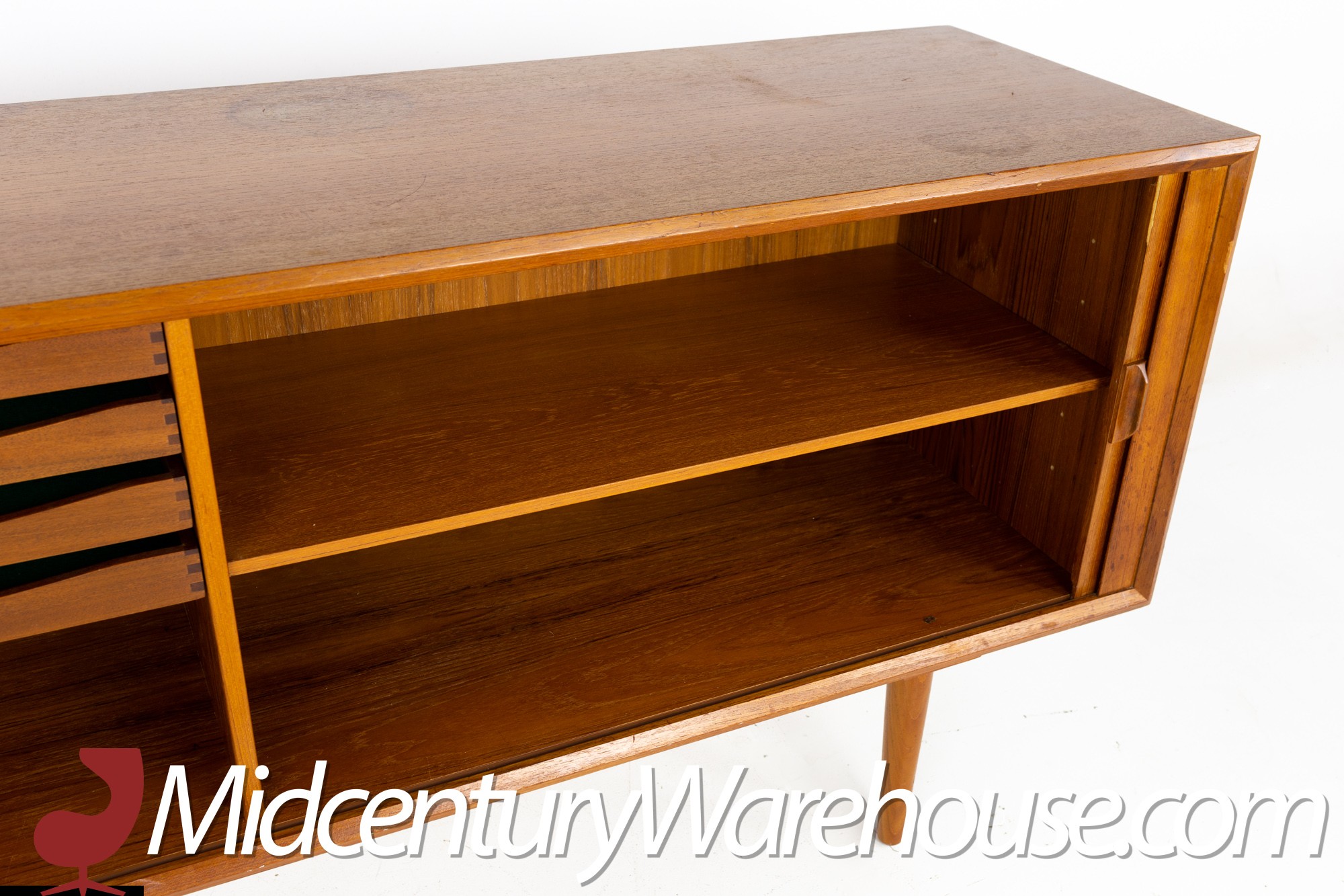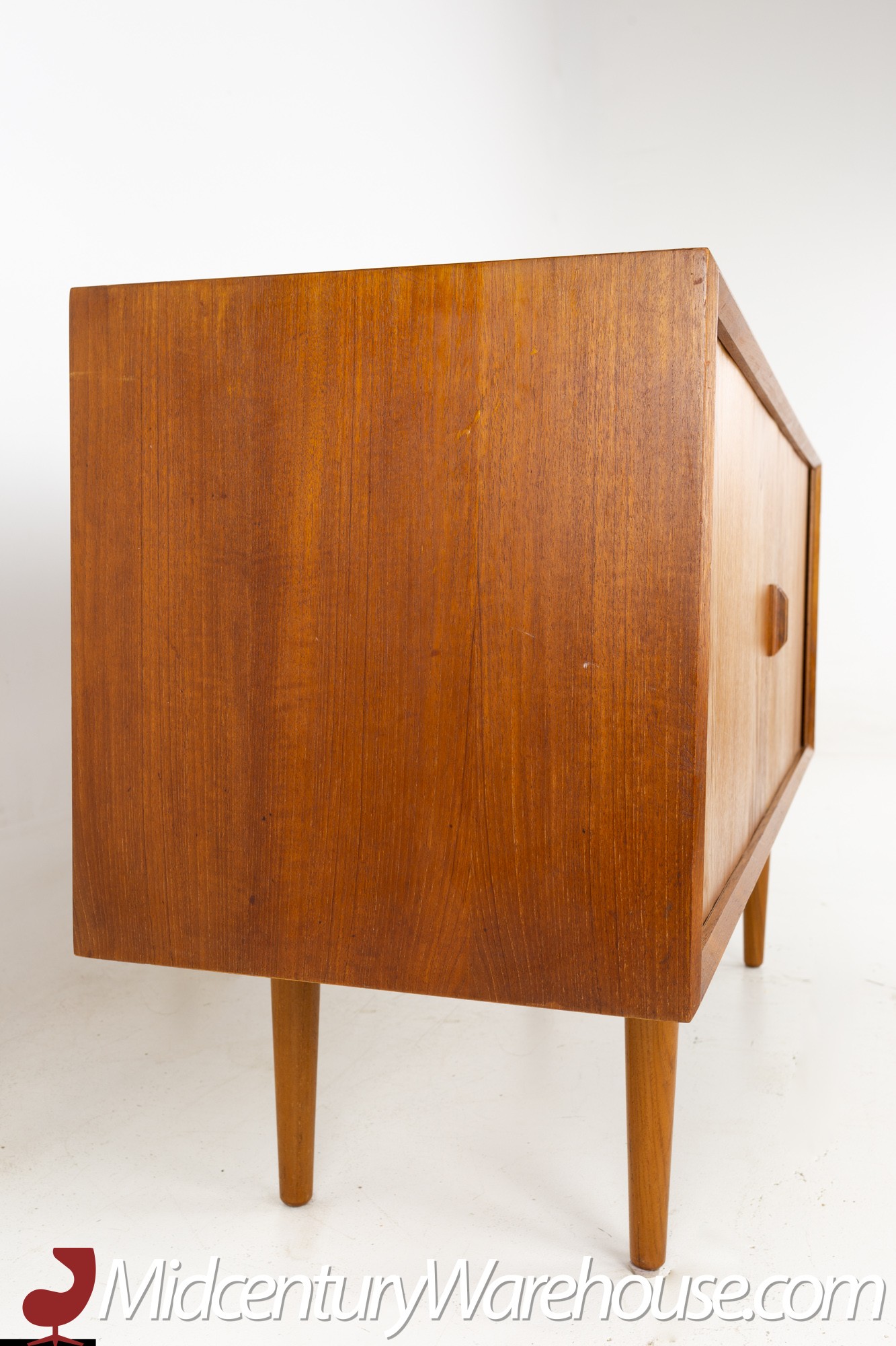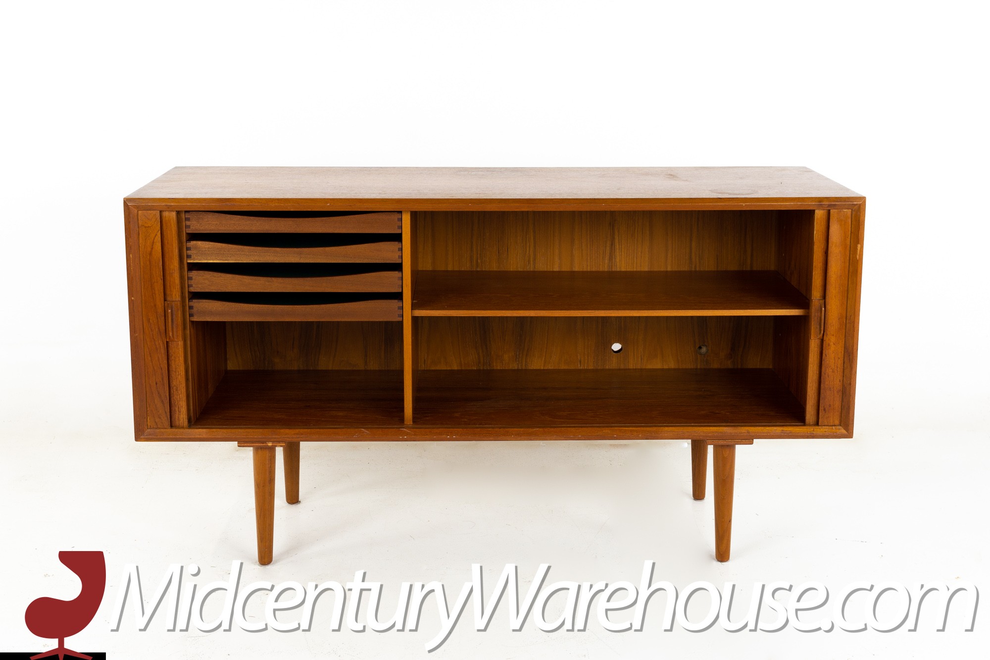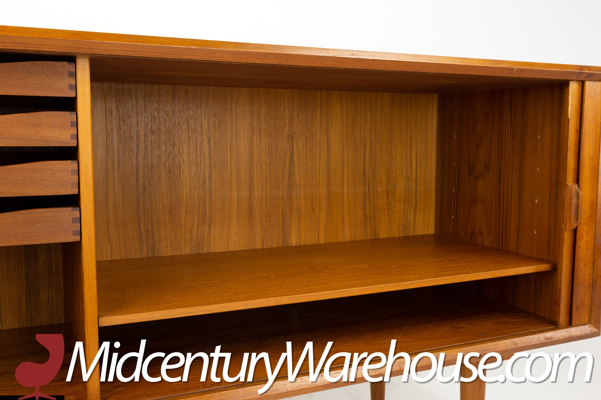Svend Aage Larsen for Faarup Mobelfabrik Mid Century Danish Teak Tambour Door Petite Sideboard Credenza