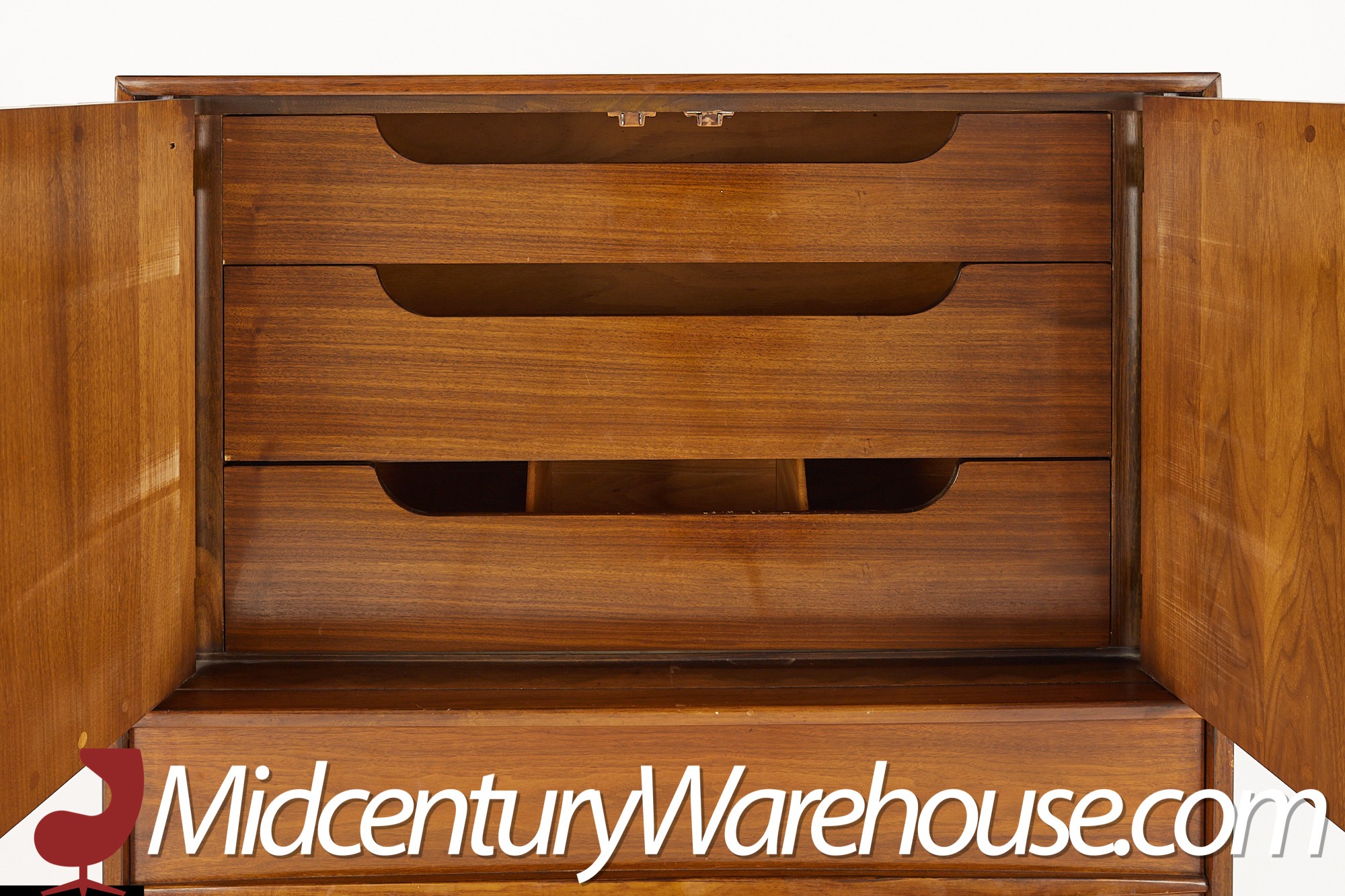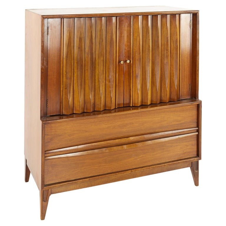 Thomasville Brutalist Mid Century Walnut Highboy Dresser