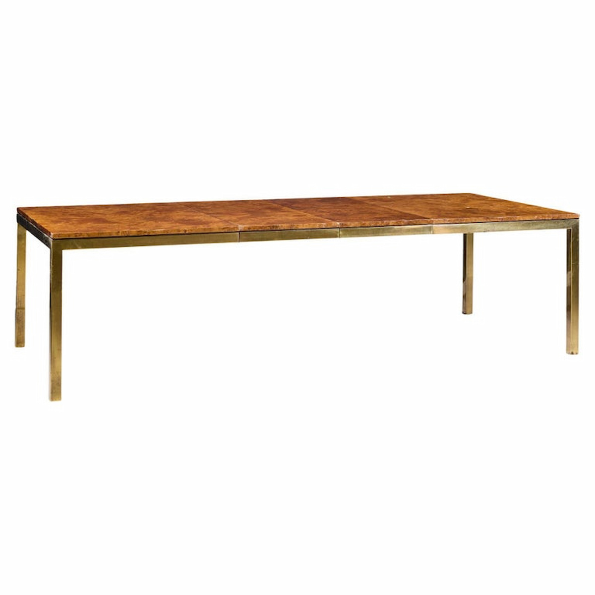 Tomlinson Mid Century Burlwood and Brass Expanding Dining Table with 2 Leaves