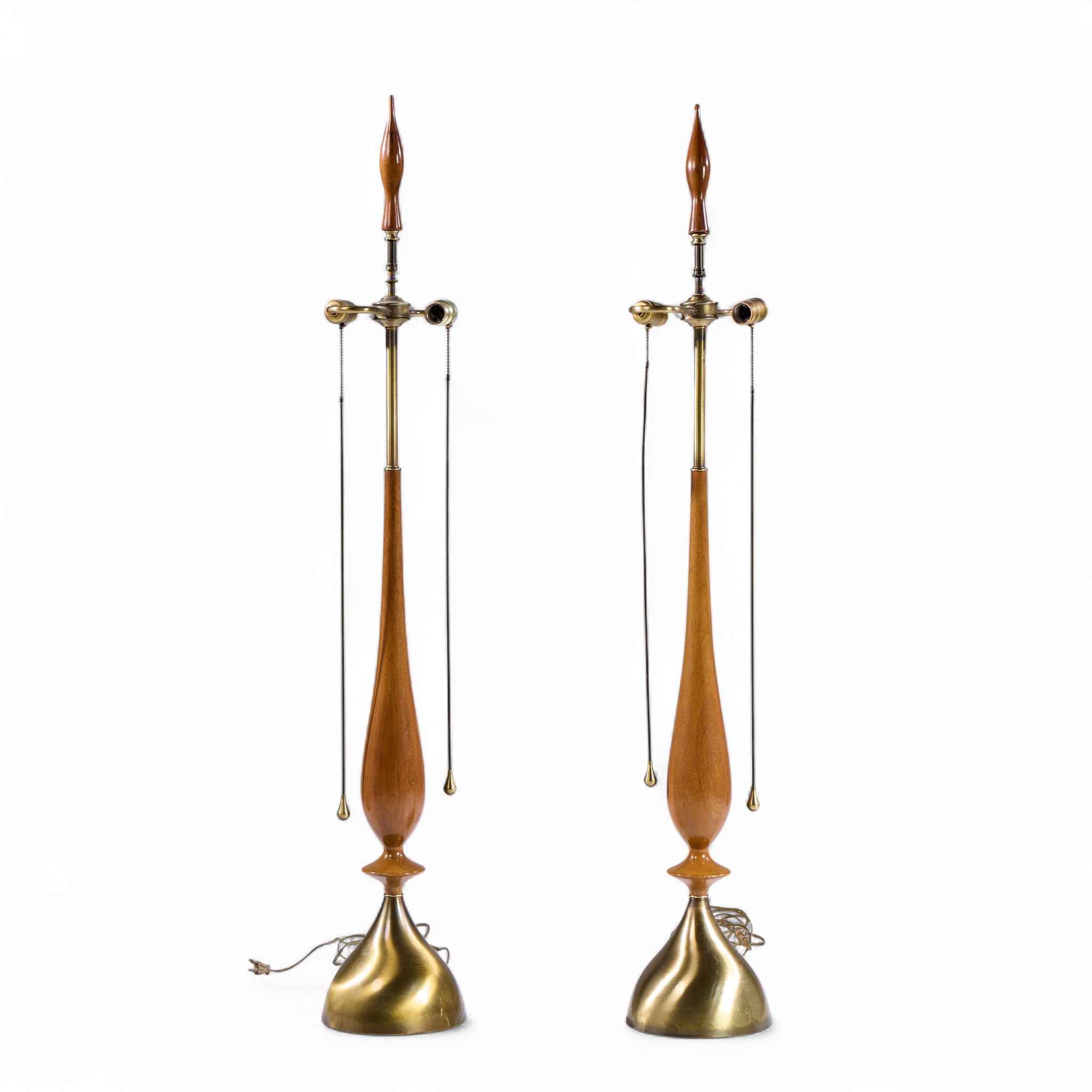 Tony Paul for Westwood Mid Century Walnut and Brass Lamps - Pair