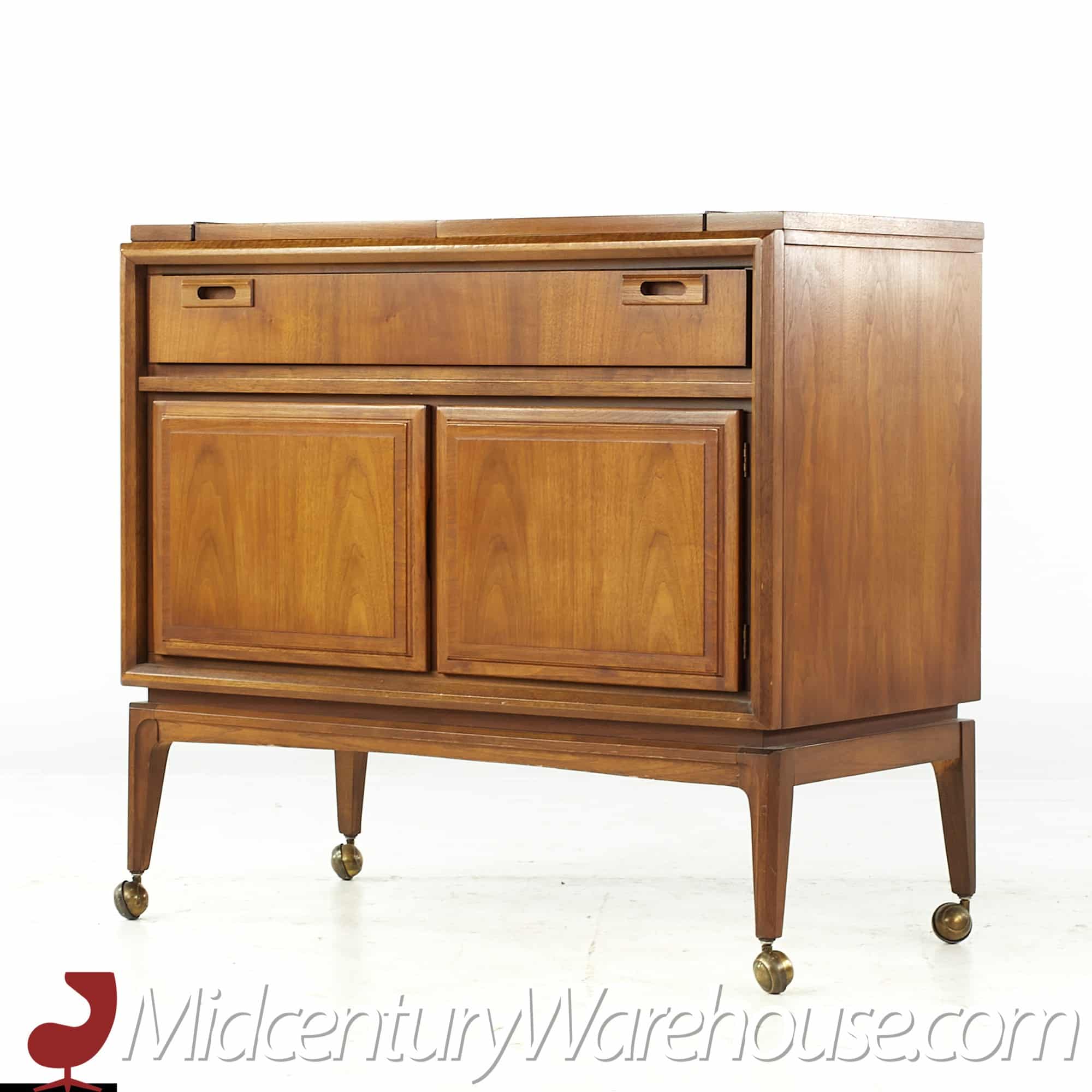 United Mid Century Walnut Server Bar Cart