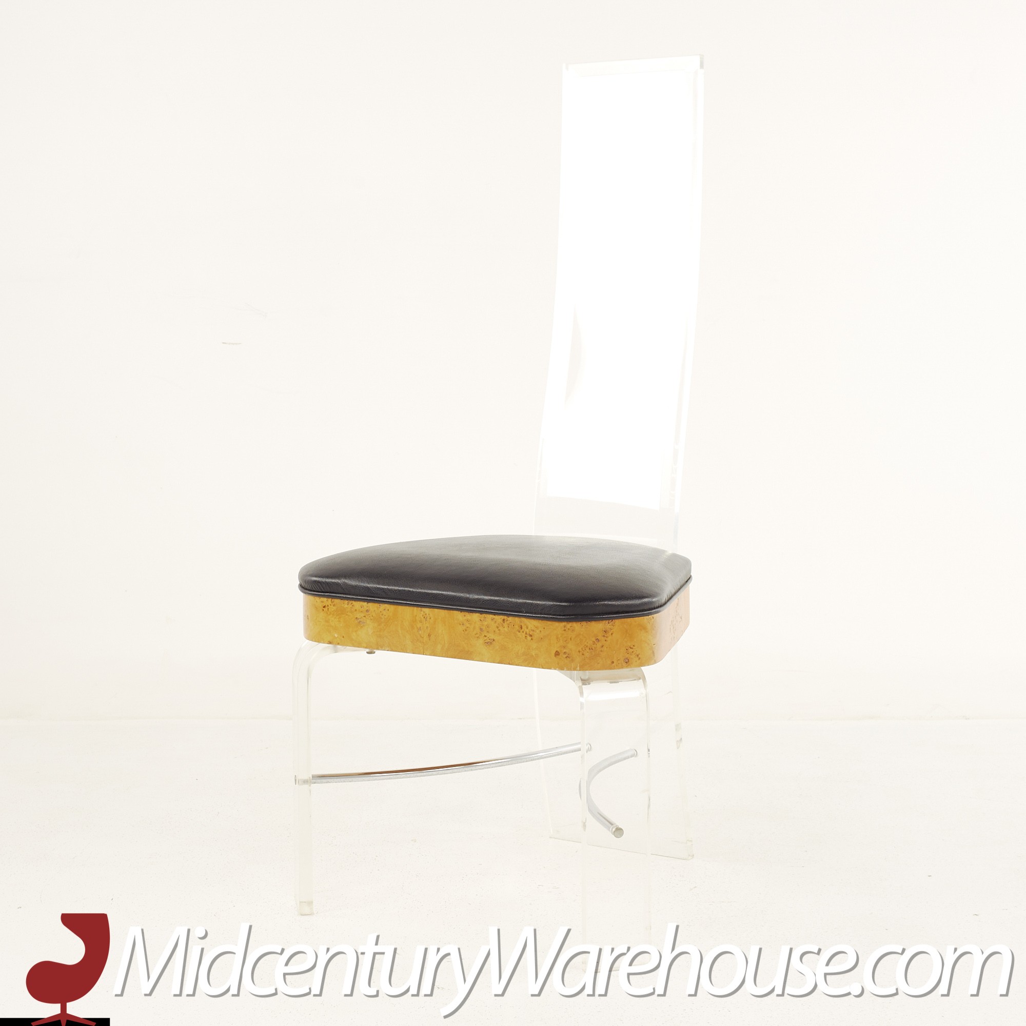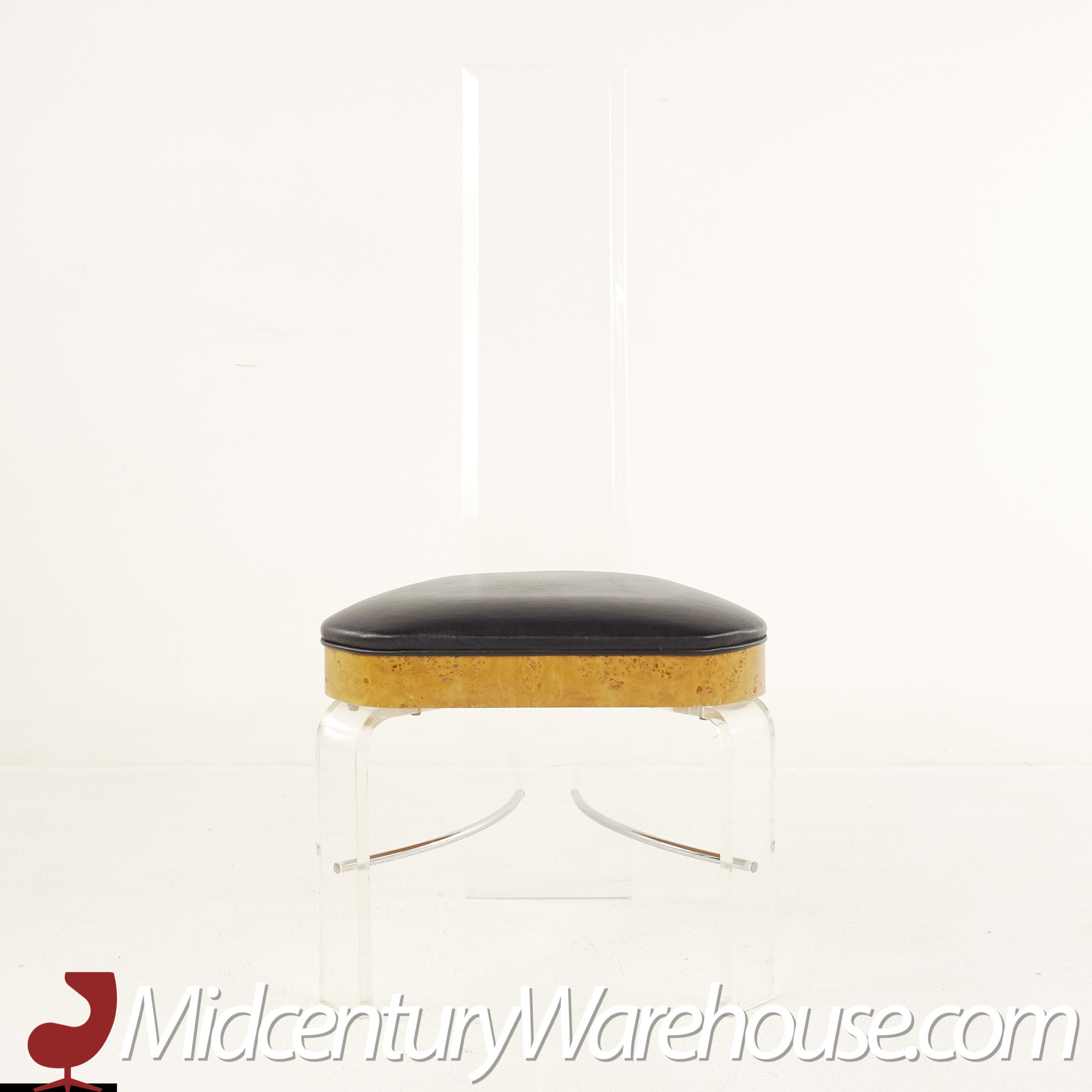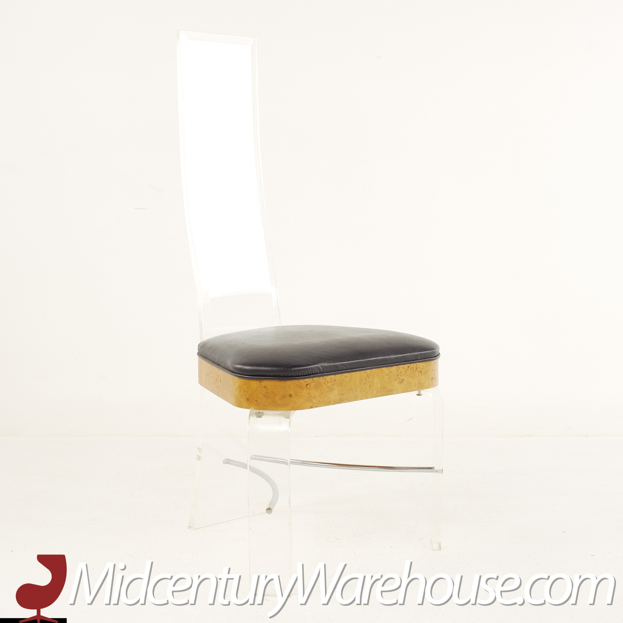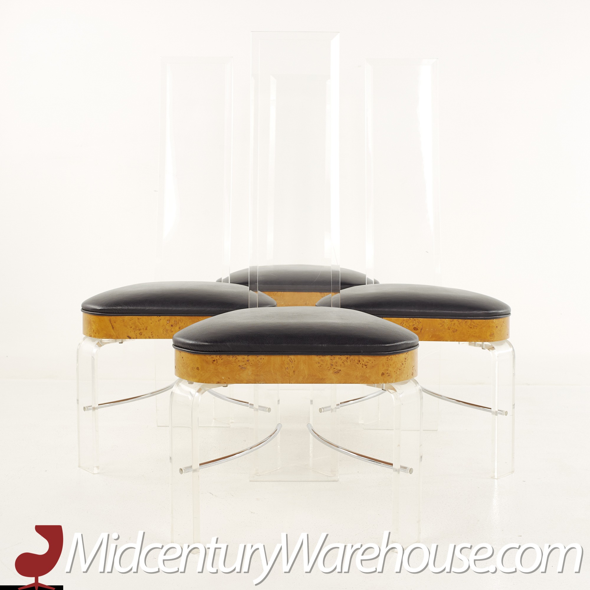 Vladimir Kagan Style Mid Century Burlwood and Lucite Dining Chairs - Set of 4